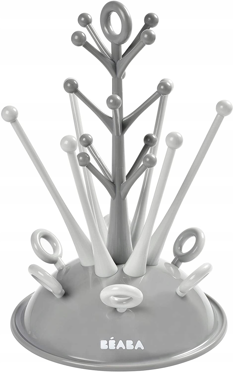 Практична, сучасна сушарка для пляшок та інші аксесуари для годування французької марки Beaba. підходить до всіх моделей пляшок, доступних на ринку. Він має дизайнерський зовнішній вигляд - на сірої основи є сірі вкладки з закругленими кінчиками - загалом 6 пляшок і 18 добавок підійдуть до них, такі як пустушки, горіхи, кришки тощо