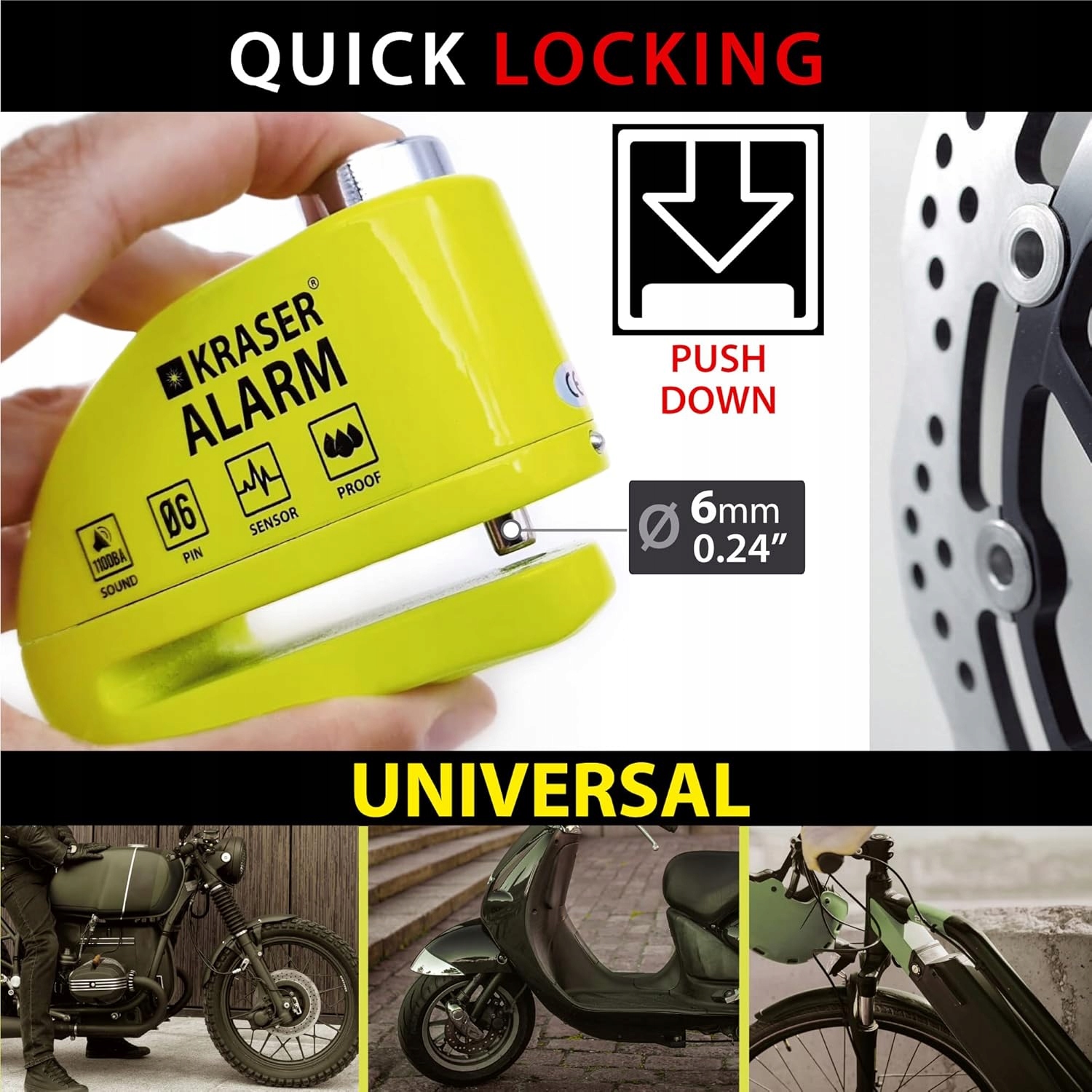 Прості у використанні та неприємності -безумовно: Чи є у вас достатньо складних систем безпеки, активація яких триває вічно? Це блокування на мотоциклі з замками тривоги просто натиснувши замок. Szekla 6 мм підходить до всіх гальмівних дисків мотоциклів, скутерів та електричних велосипедів.