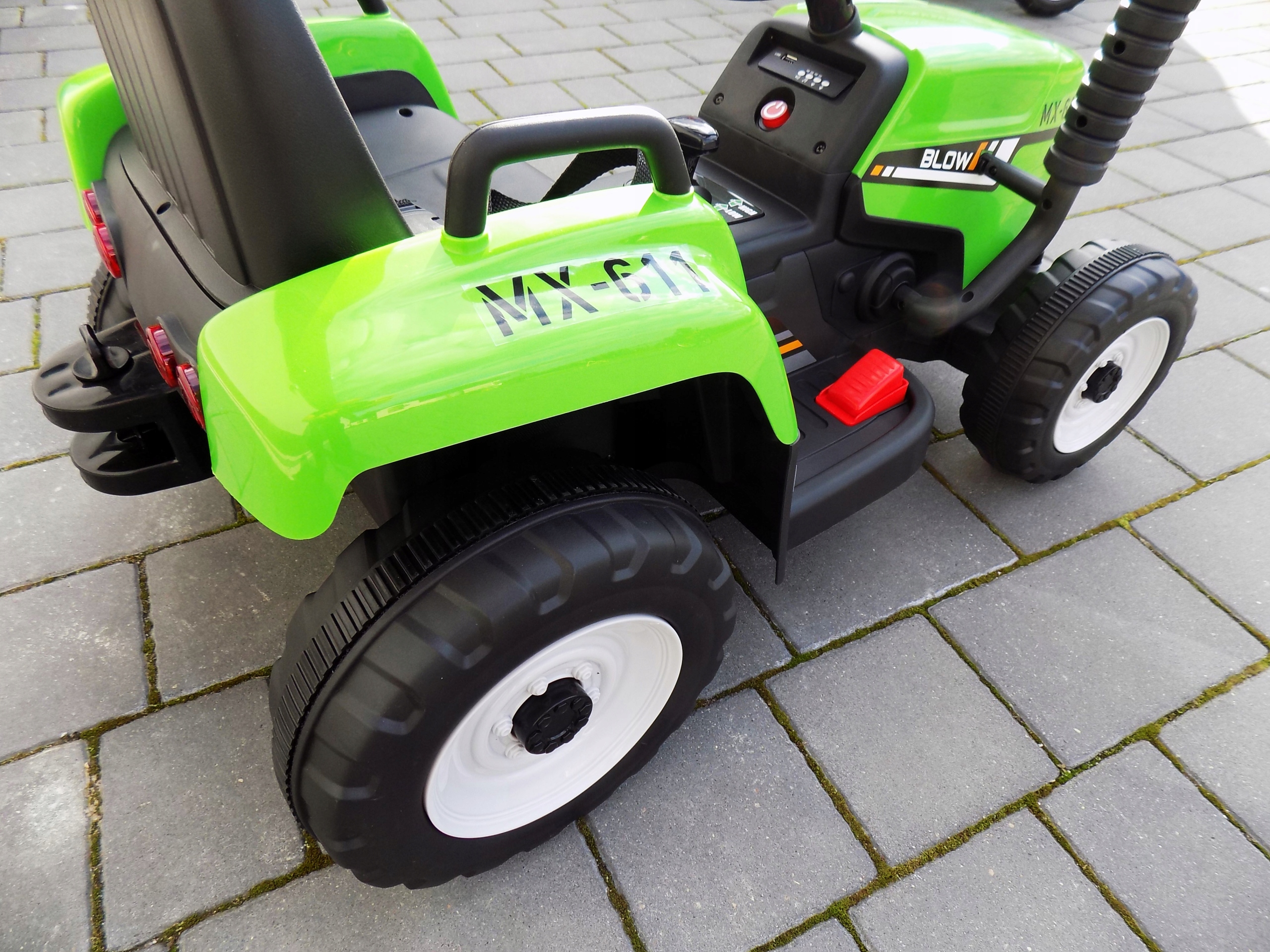 Акумуляторний трактор із знімним причепом — чудовий вибір у подарунок. Він працює від двох потужних електродвигунів, що живляться від акумулятора 12V4.5Ah. Автомобіль оснащено звуковими ефектами, що активуються кнопками, USB-портом для флешки, регулятором гучності та світлодіодним освітленням. Є 3 швидкості руху вперед і назад. Уроки безпечного водіння забезпечують найновіший пульт дистанційного керування 2.4G, що дає батькам повний контроль над автомобілем.