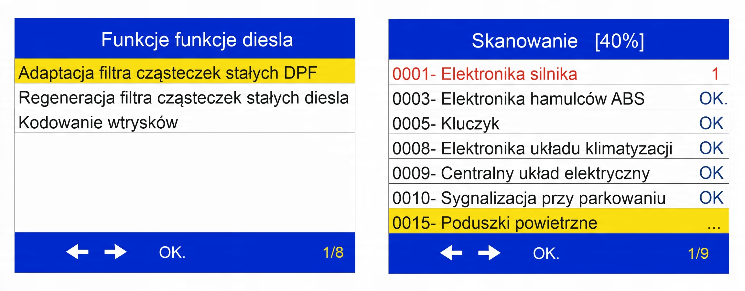 Тестер — це автономний пристрій, оснащений кольоровим дисплеєм, міцним корпусом і швидким процесором ARM. Він живиться безпосередньо від діагностичного роз’єму автомобіля та має повне ПОЛЬСЬКЕ меню (включно з повними польськими описами кодів несправностей).