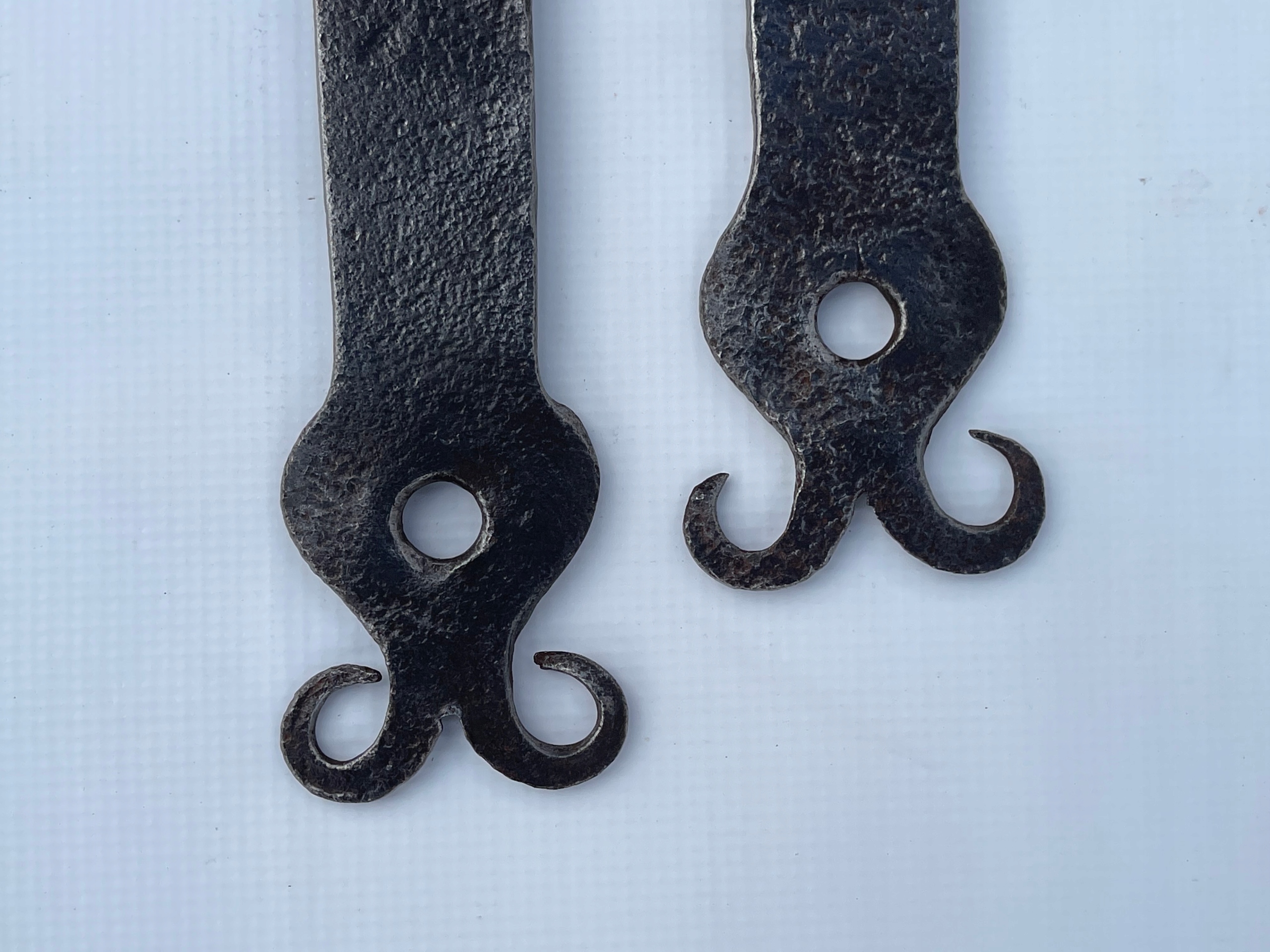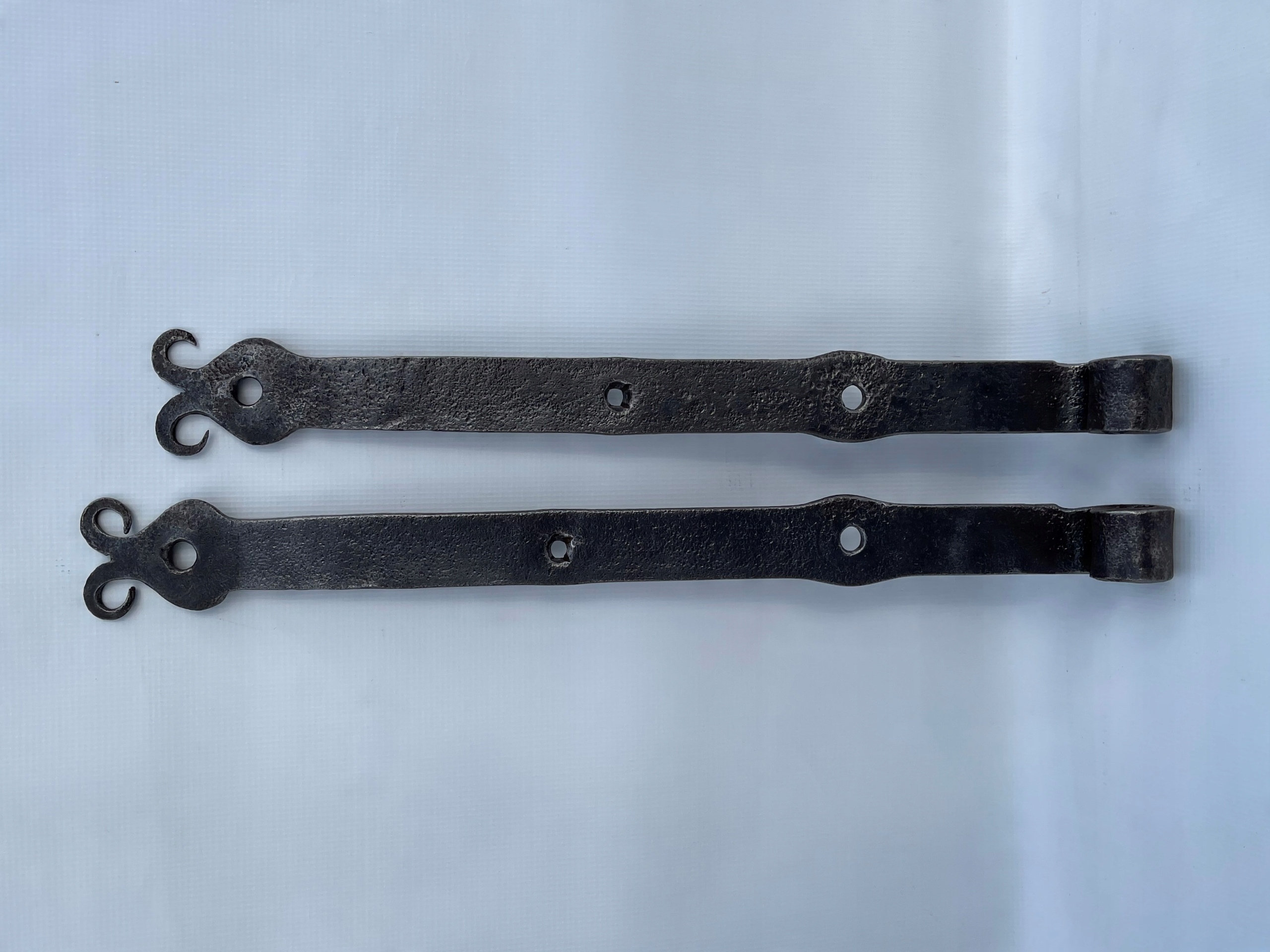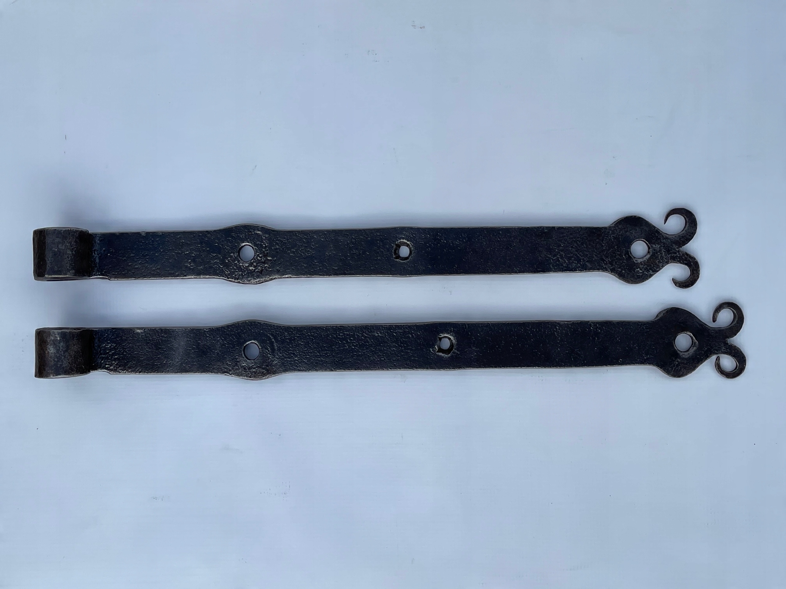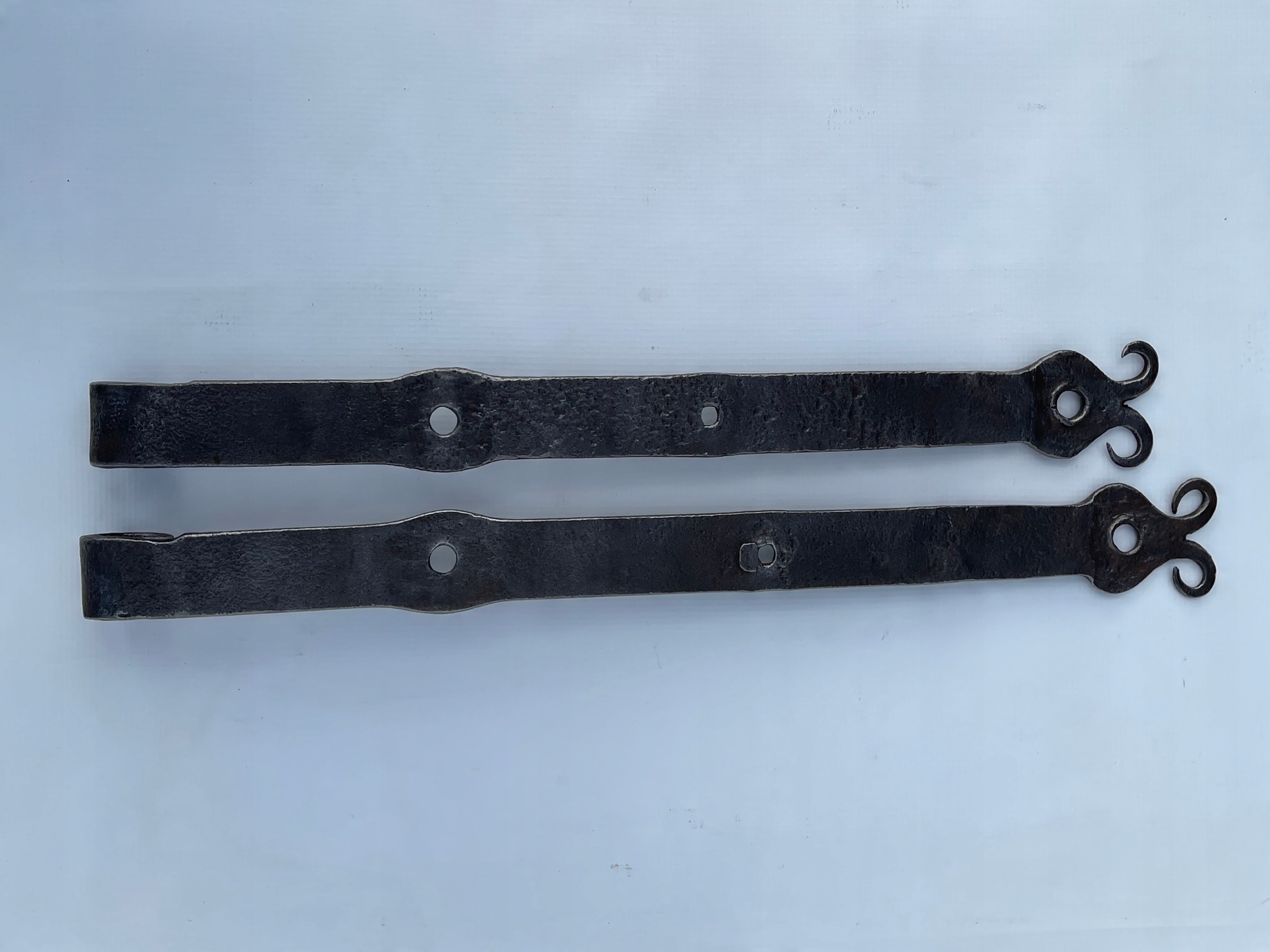 Предметом продажу є комплект петель. Стара ковальська робота. Цікавий візерунок. Дуже гарно загнуті на кінцях. Виготовлений з товстого шматка сталі, приблизно 10 мм. Багато з тих, що виготовляються сьогодні, збережуться.