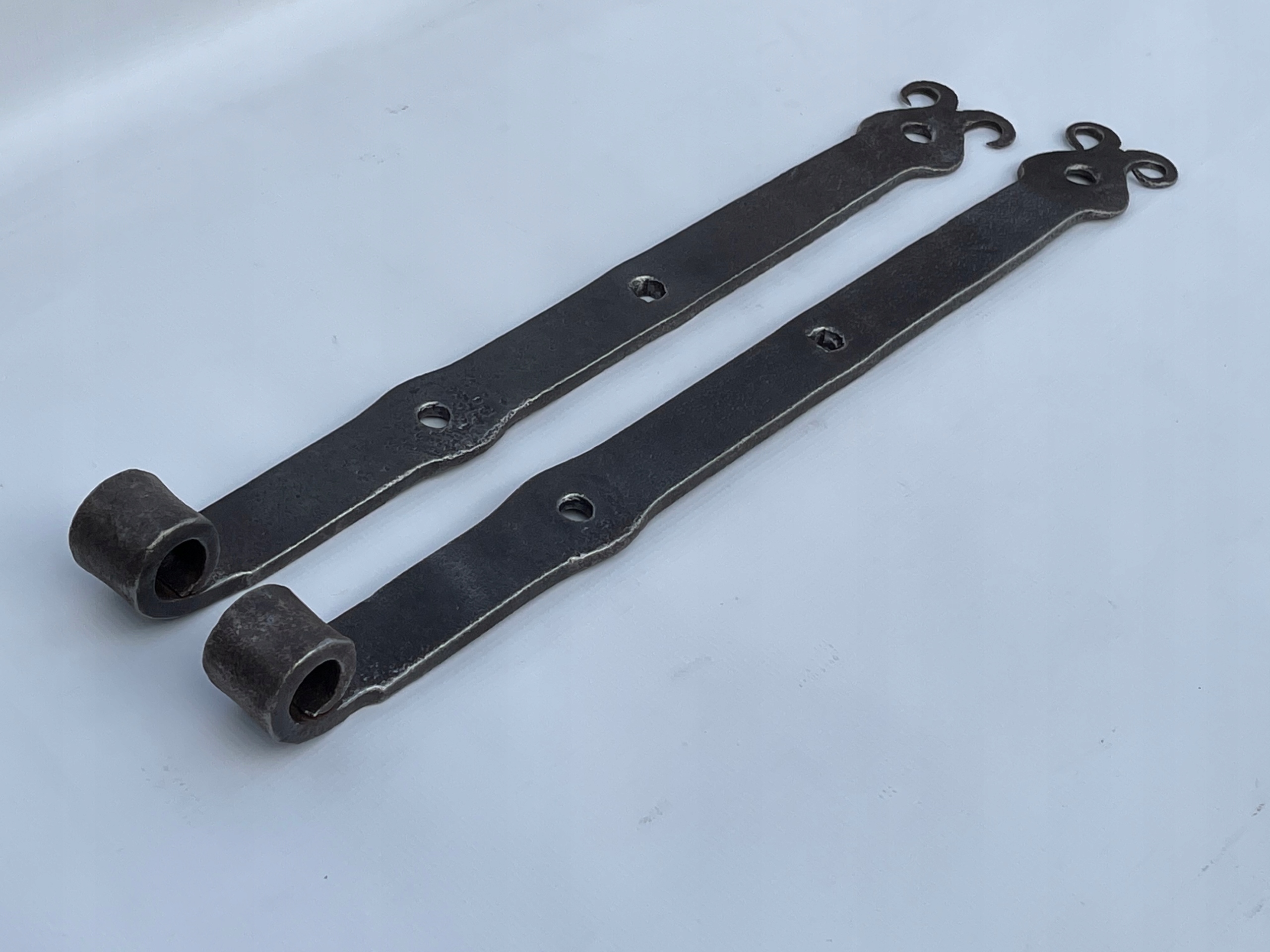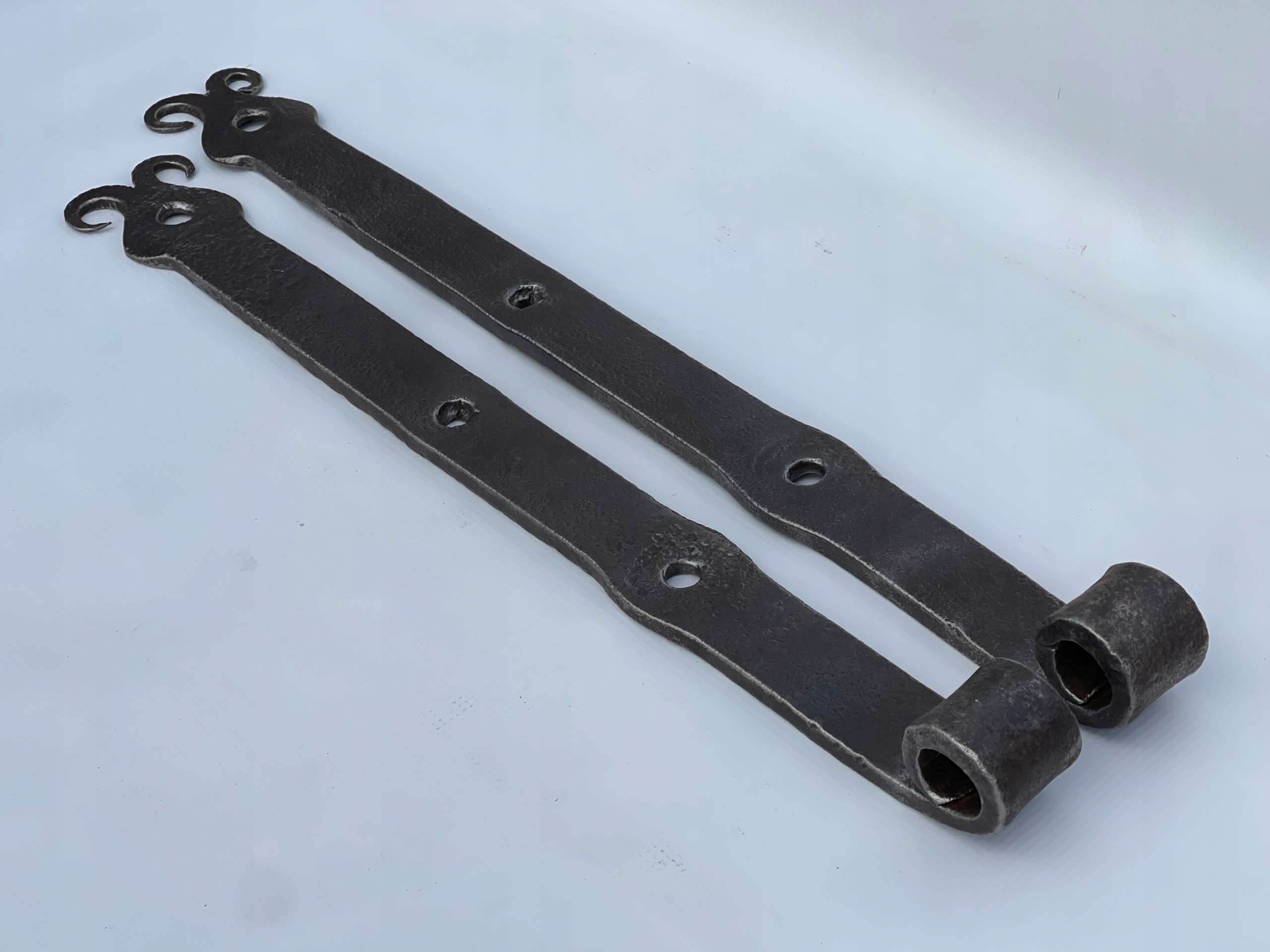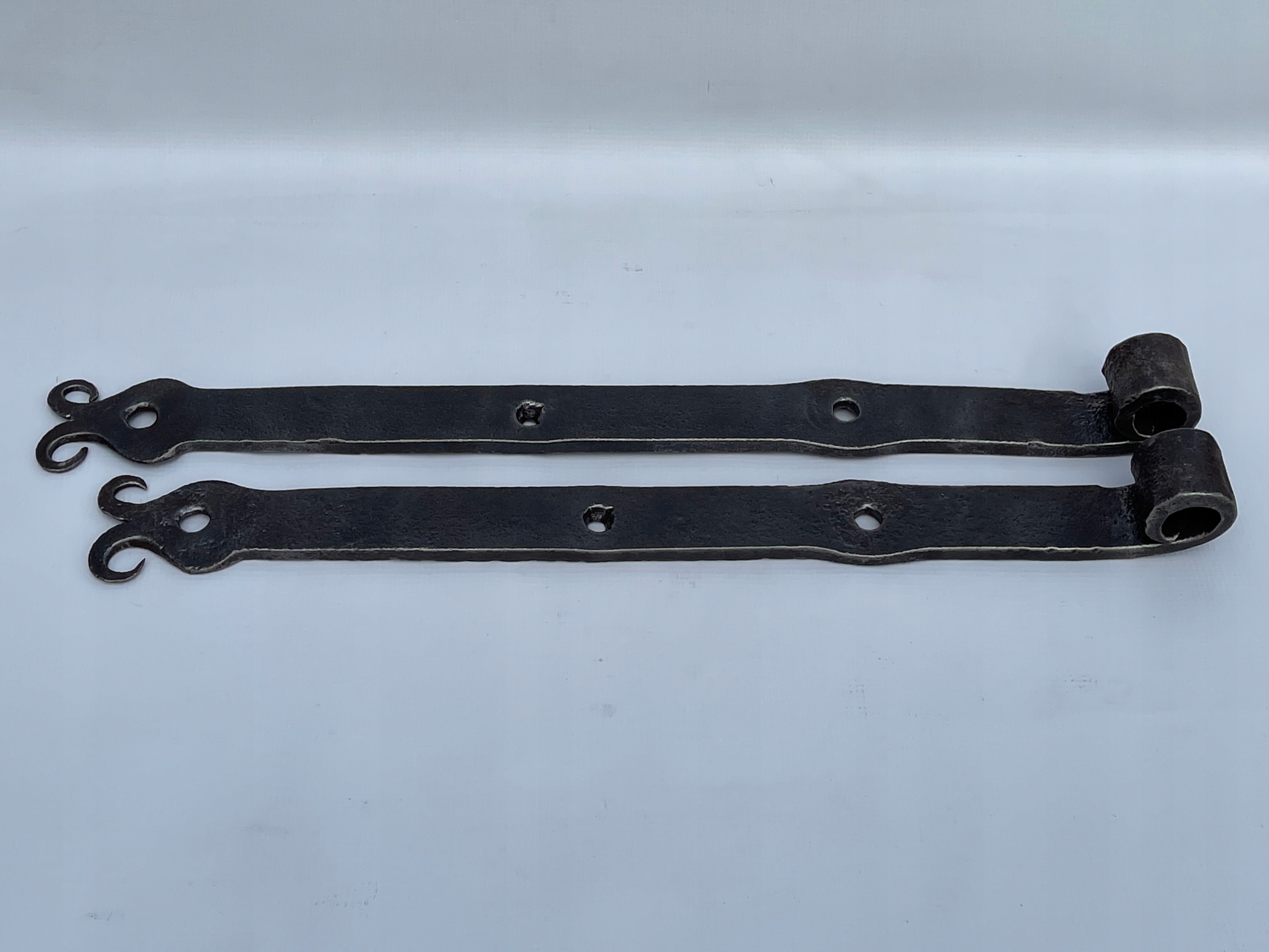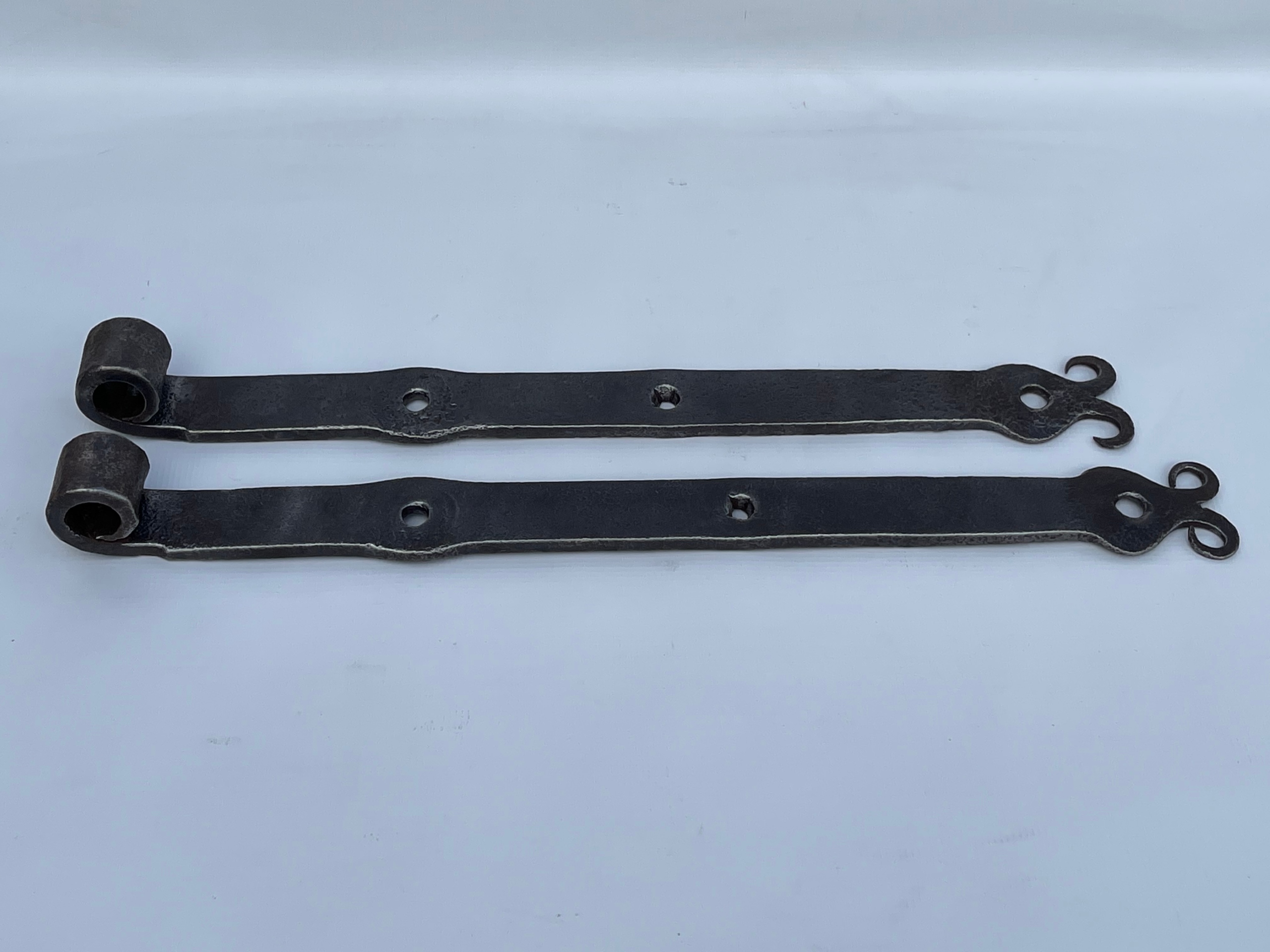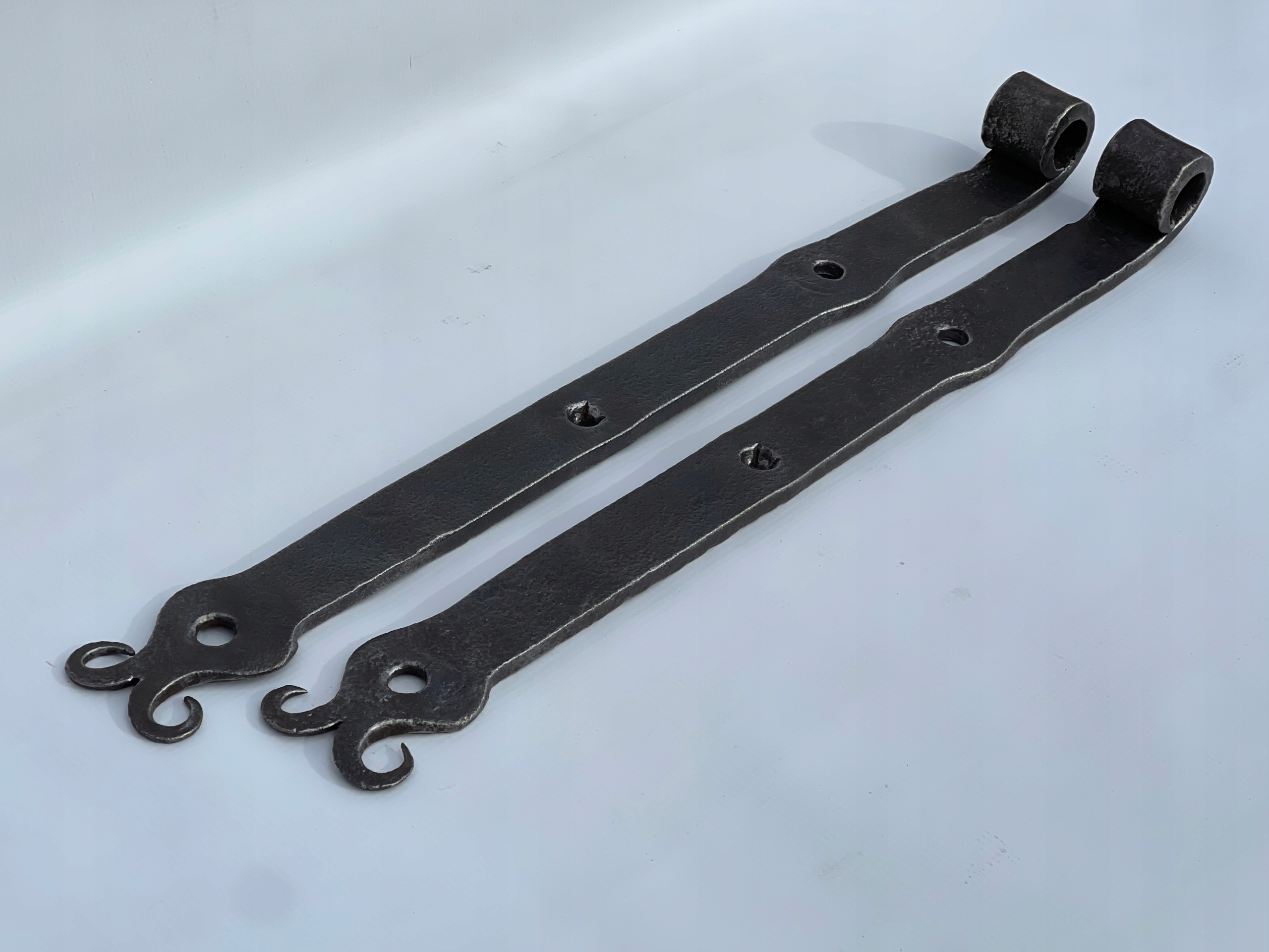 Предметом продажу є комплект петель. Стара ковальська робота. Цікавий візерунок. Дуже гарно загнуті на кінцях. Виготовлений з товстого шматка сталі, приблизно 10 мм. Багато з тих, що виготовляються сьогодні, збережуться.