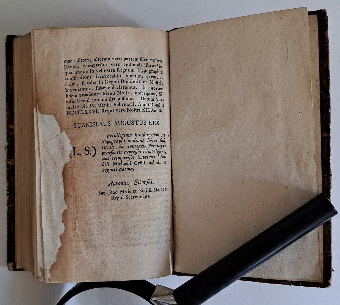 Рік видання: у Варшаві 1776 р. Видавець Міхал Ґроель.