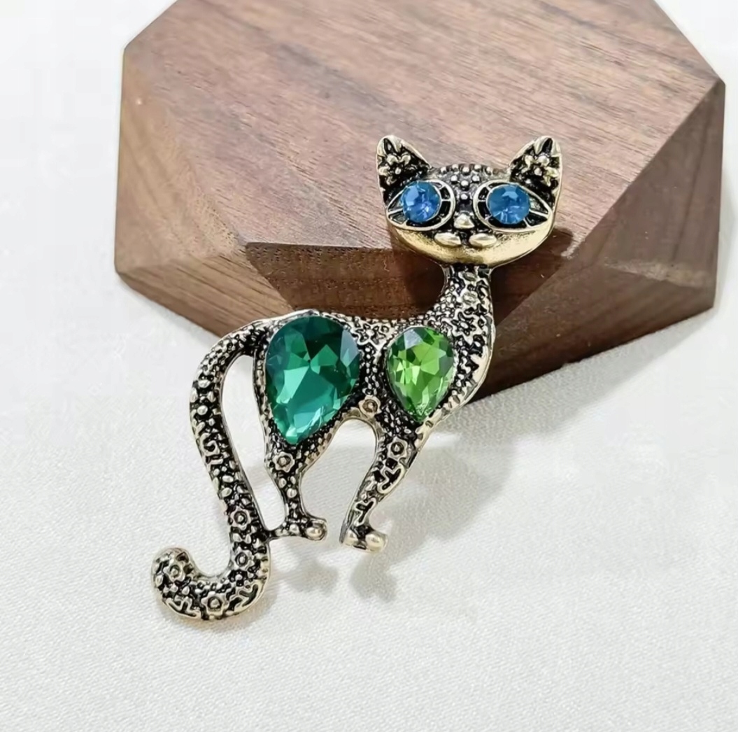Красива, елегантна емальована брошка - Котик Кошеня Вінтаж