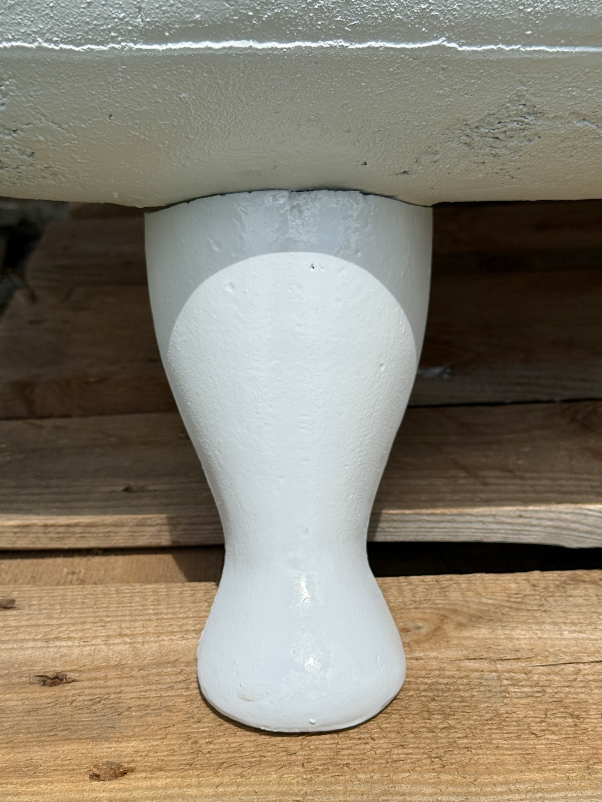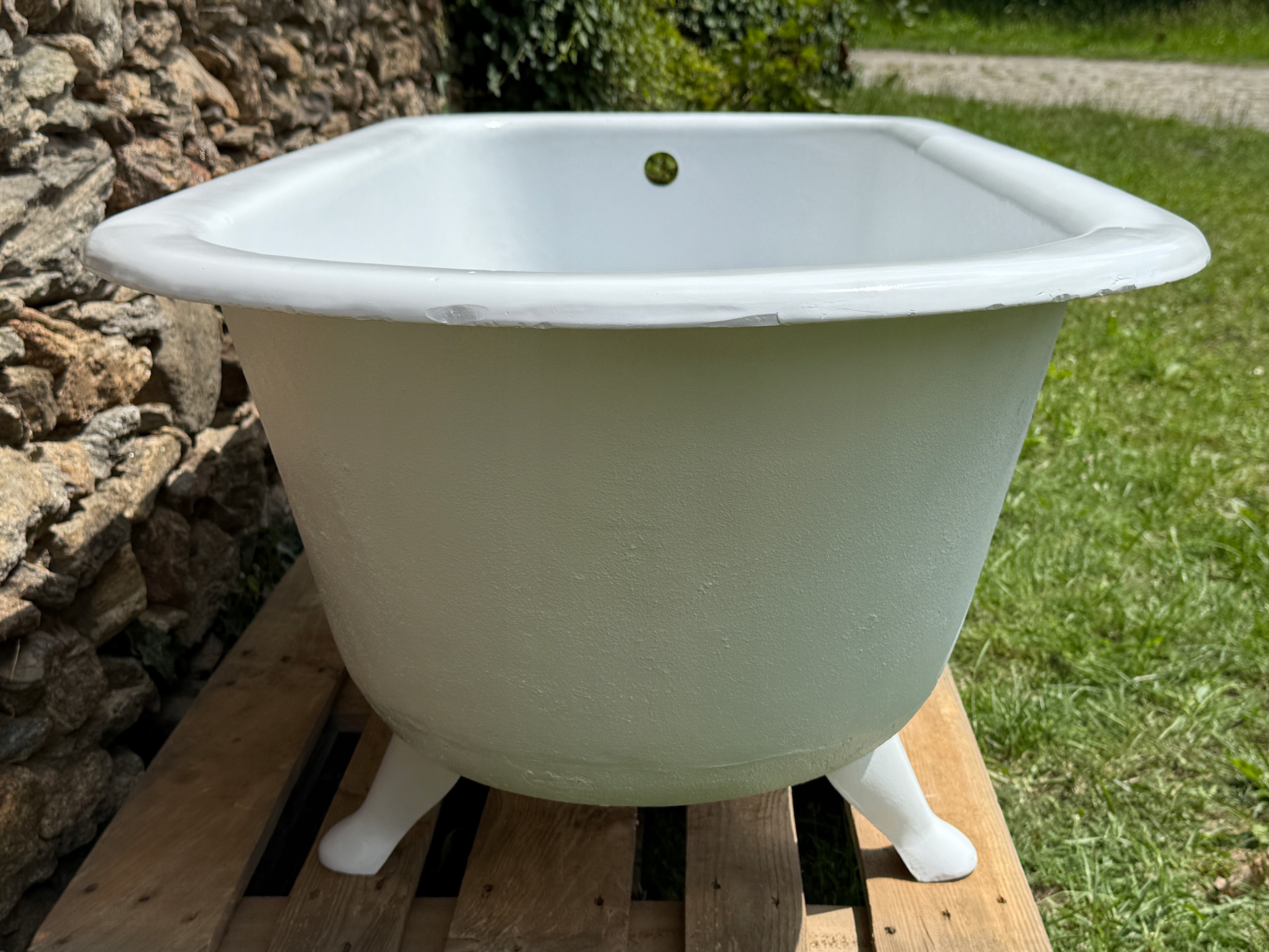 ванна була очищена від старої фарби (осушена зовні) і захищена від корозії. Умова - все, щільно без тріщин - як на знімках. Ретельно перевіряється перед покупкою. Ноги накручені, щоб ви могли виправити їх положення відносно підлоги. Гвинти в ногах для нових також були замінені, немає проблем із відключенням або поворотом. Приваблива ціна, нова ванна такого типу коштує від кількох до декількох тисяч. Злоті. Якщо ви шукаєте щось оригінальне, аукціон призначений для вас.