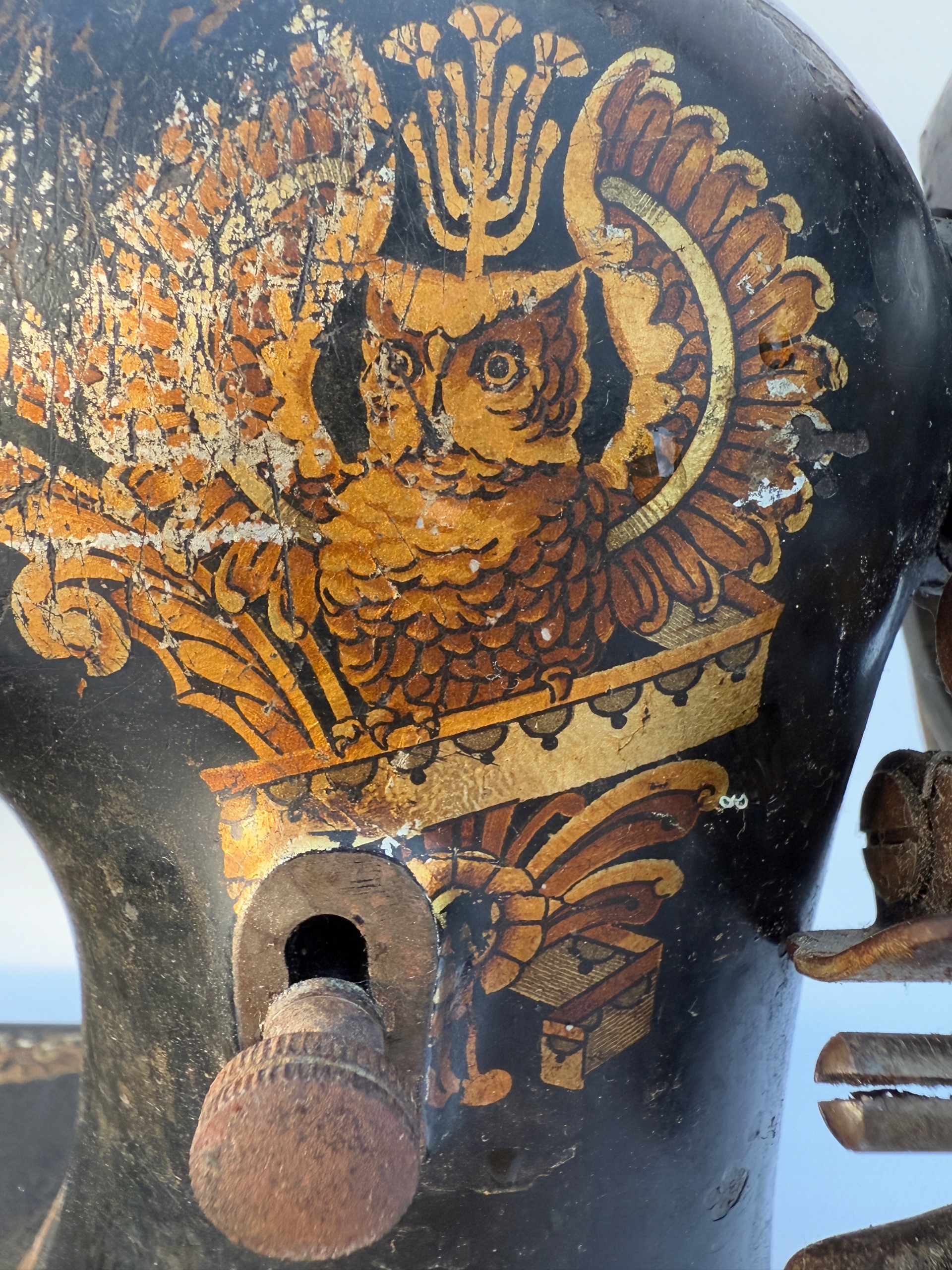КРАСИВА, СТАРА ШВЕЙНА МАШИНКА SINGER КВІТИ - ПРИКРАШЕНА 1895р. - СОВА