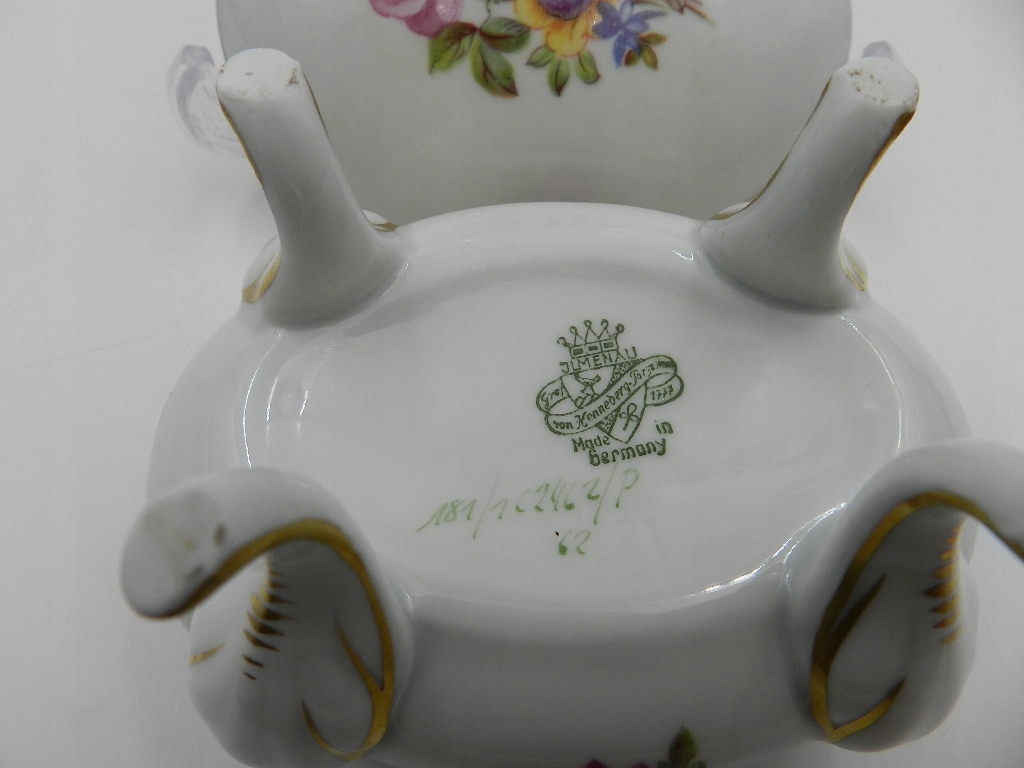 Високоякісна білосніжна порцеляна яйцевидної форми на надзвичайно гарно сформованих ніжках, прикрашених золотом.