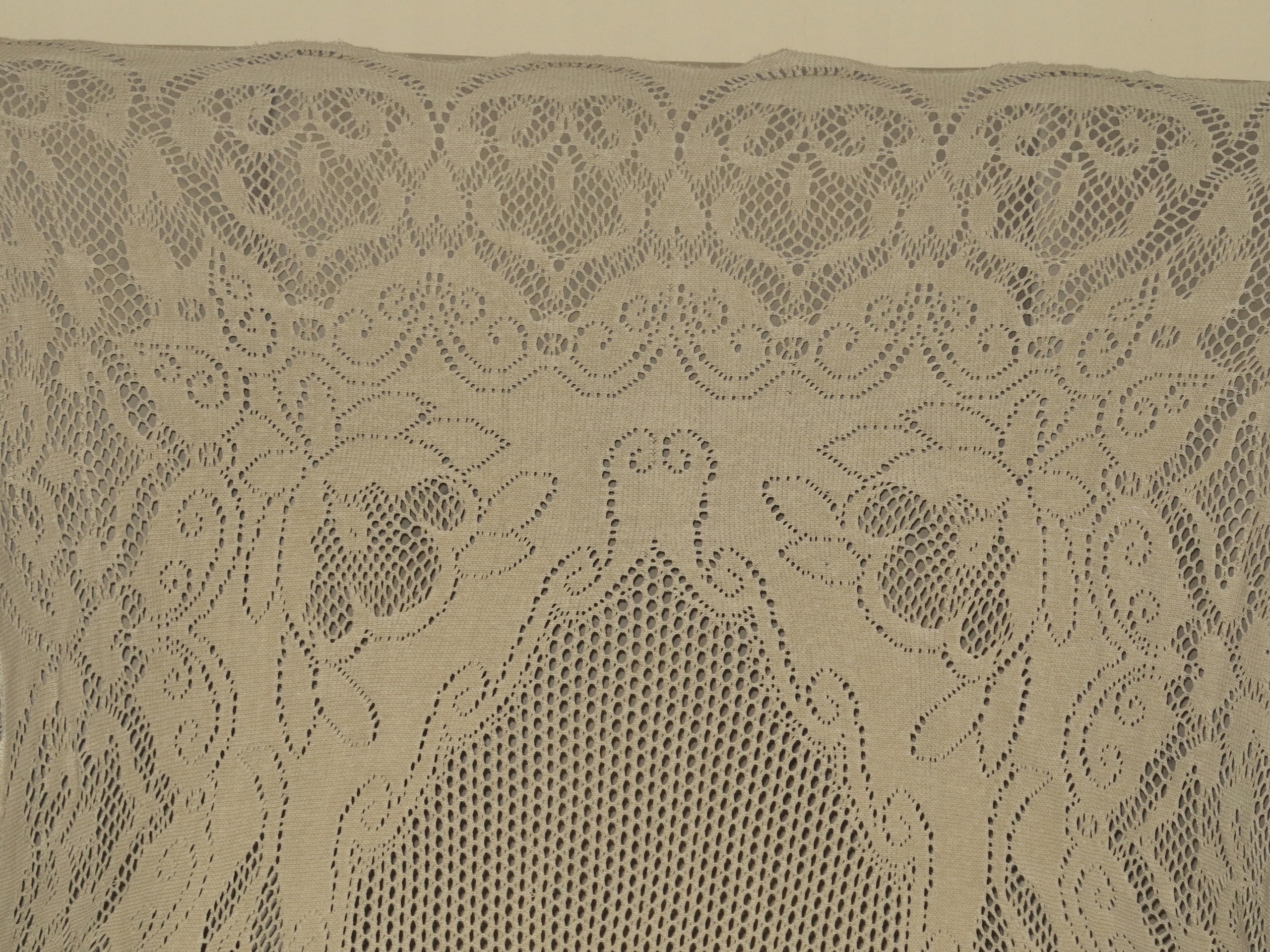 Красива довга скатертина, виготовлена з товстого і дуже міцного бавовняного мережива в зоряному візерунку. Бежевий колір (такий колір, як на малюнках, показаних на дивані)