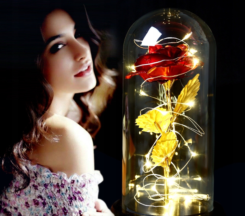 Красива і штучна звір вічна троянда в скляному світлодіодному діодному романтичному подарунок
