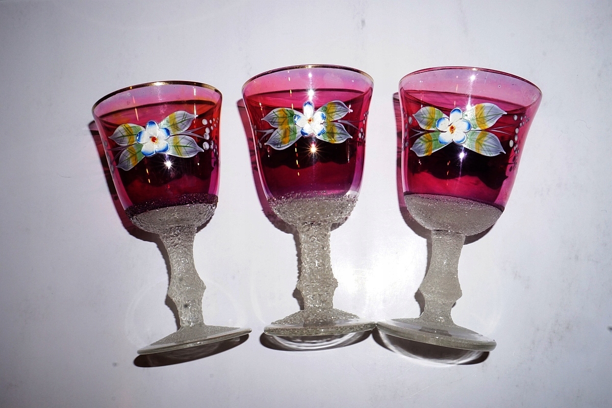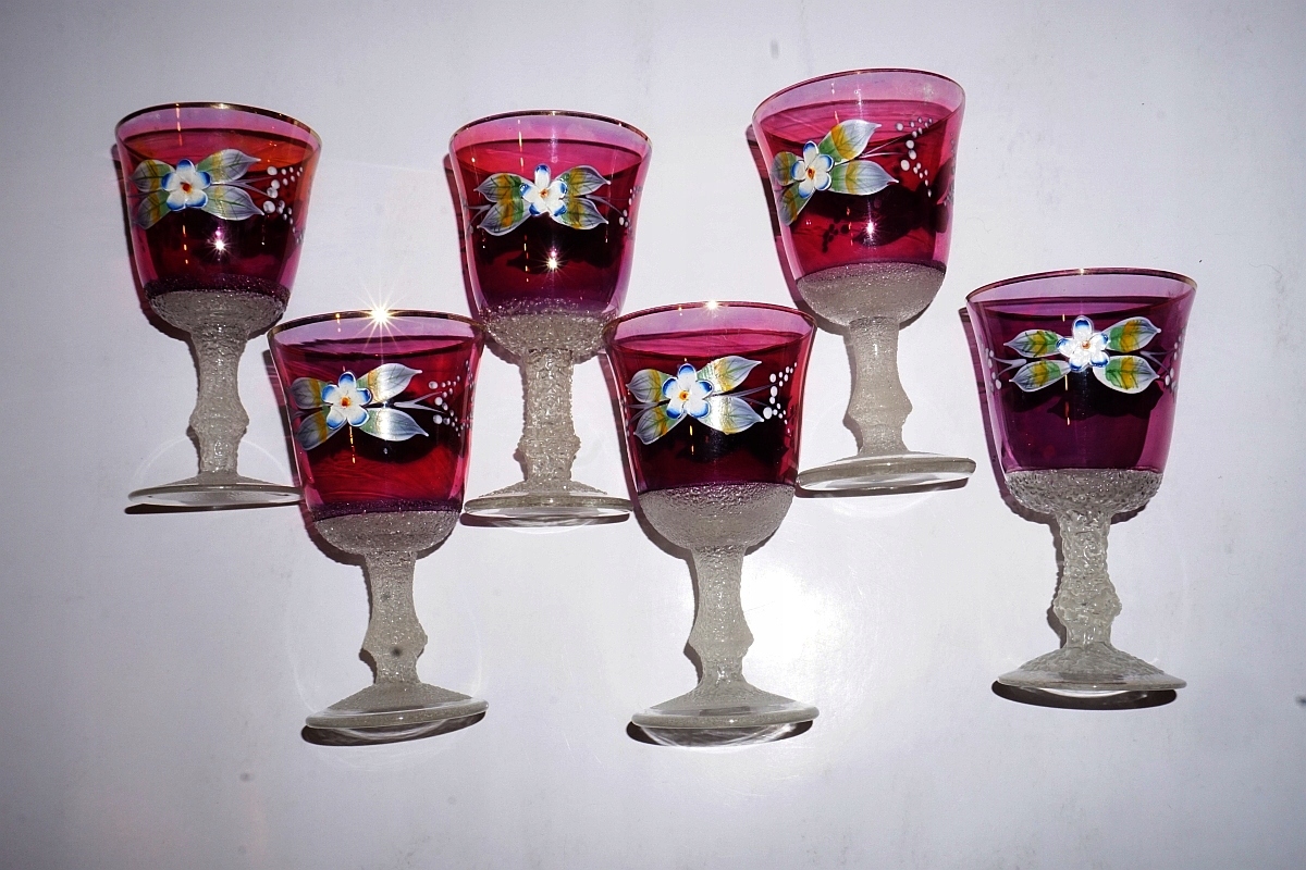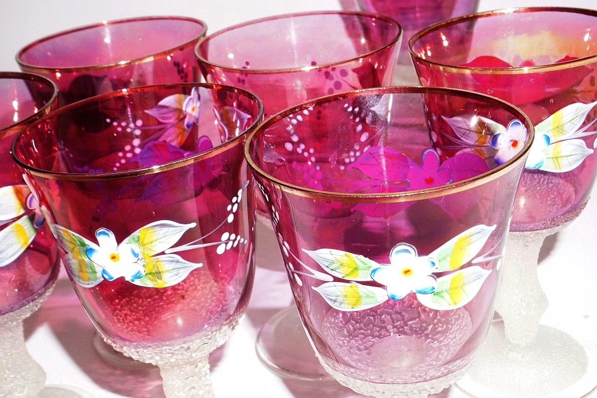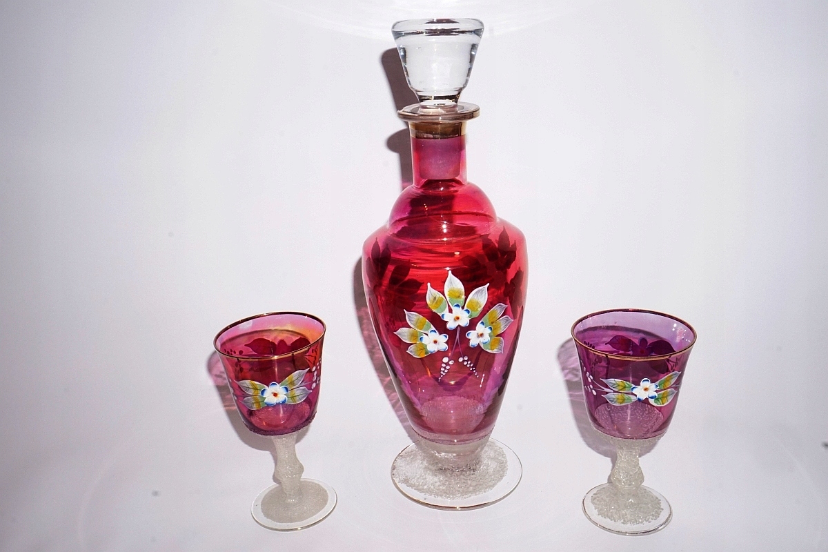Красива КАРАФА + 6 СТАКАНІВ, РОЗПИСАНІ ВРУЧНУ КВІТИ, БОГЕМА, ЧЕХІЯ