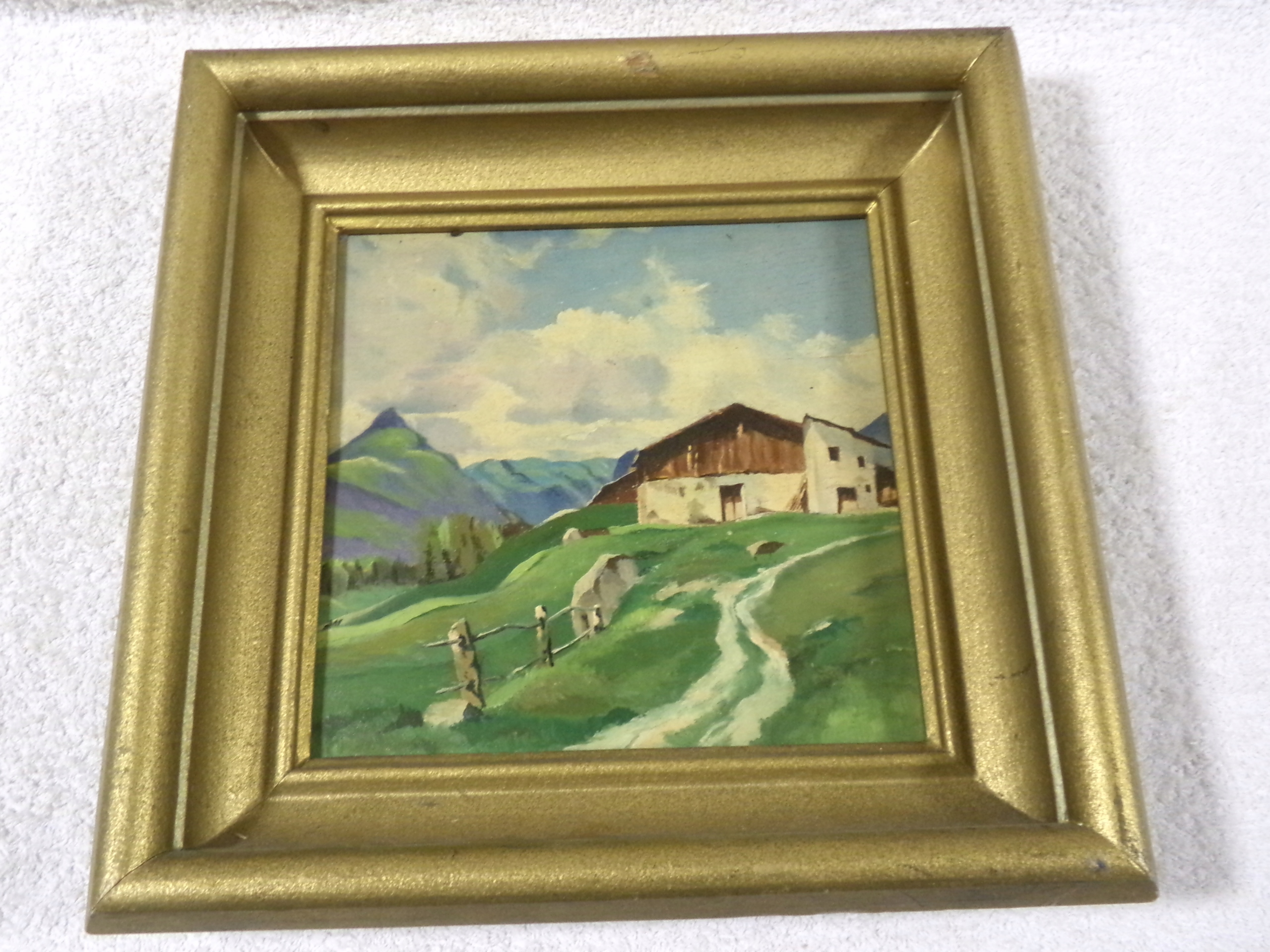КРАСИВА КАРТИНА РУЧНОЇ РОБОТИ НАМАЛЬОВАНА-ГІРСЬКИЙ ПЕЙЗАЖ 40-Х РОКІВ