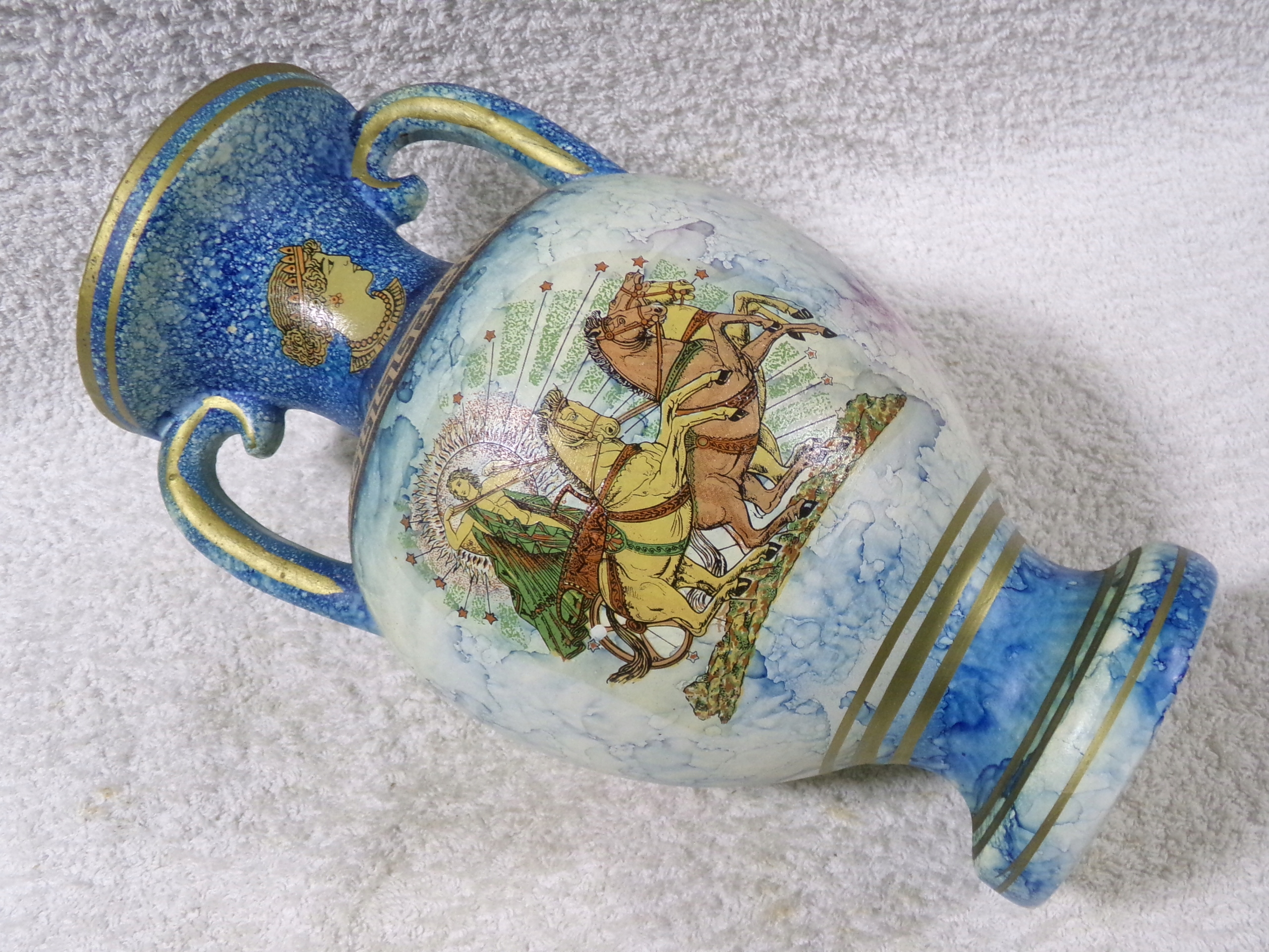 Красива керамічна амфора висотою 27,5 см, діаметром 14х10,5 см, вагою 0,79 кг. Дуже хороший стан, без пошкоджень.