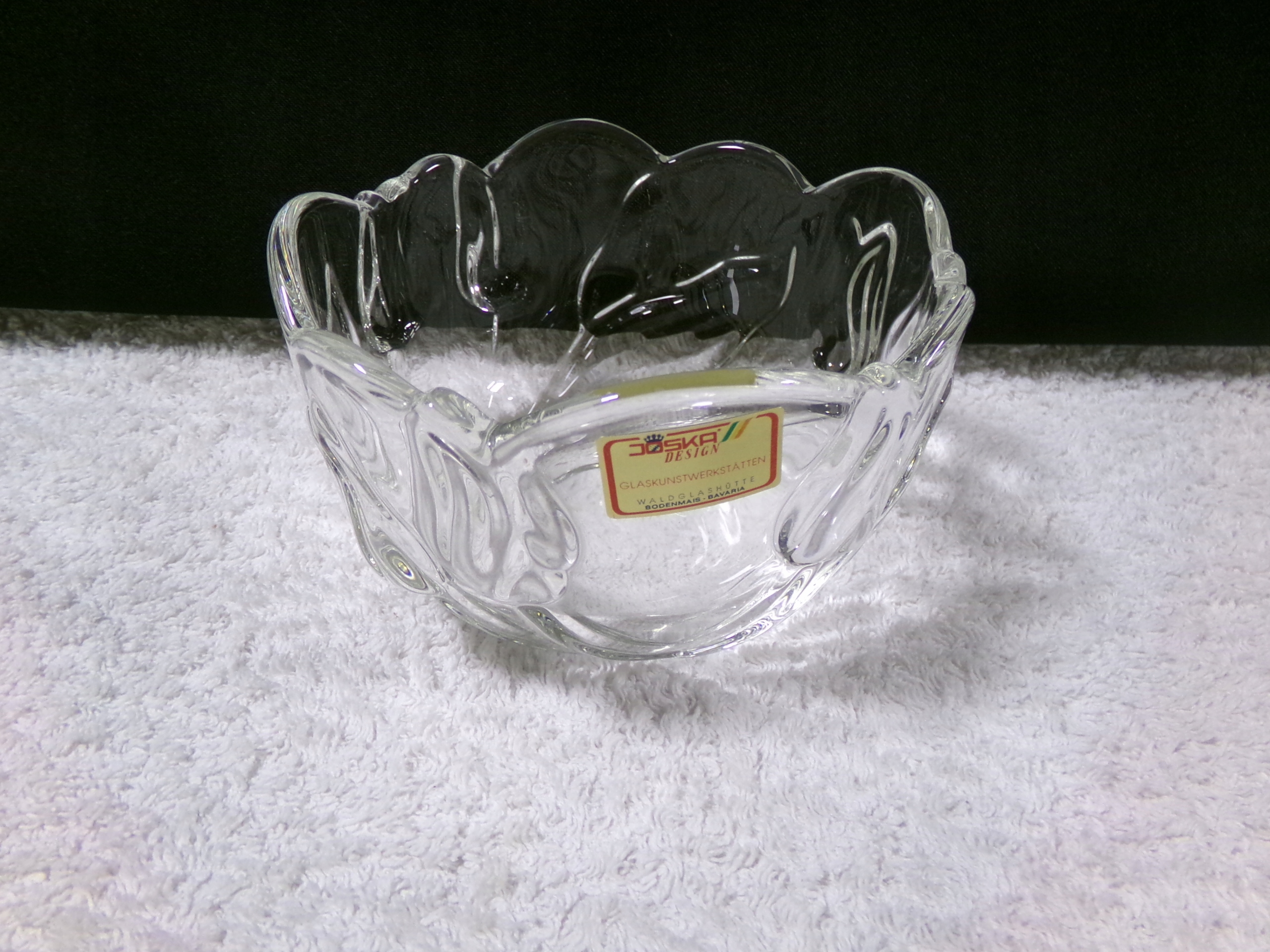 Красива кришталева миска висотою 8 см, середній діаметр 12 см, вагою 0,43 кг. Дуже хороший стан збережений, без пошкоджень.