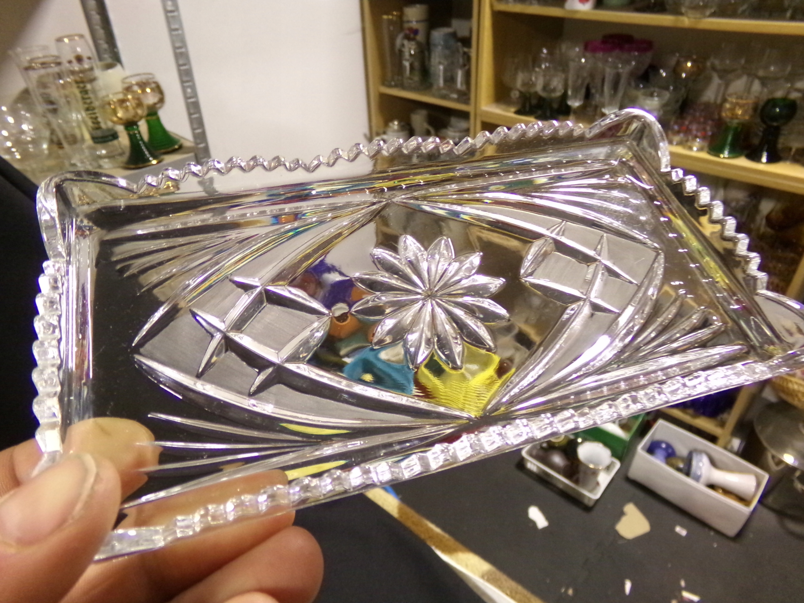 Красива кристалічна патера з висотою 2 см, діаметром середнього 18,5х9,5 см, вагою 0,40 кг. Дуже хороший стан збережений, без пошкоджень.