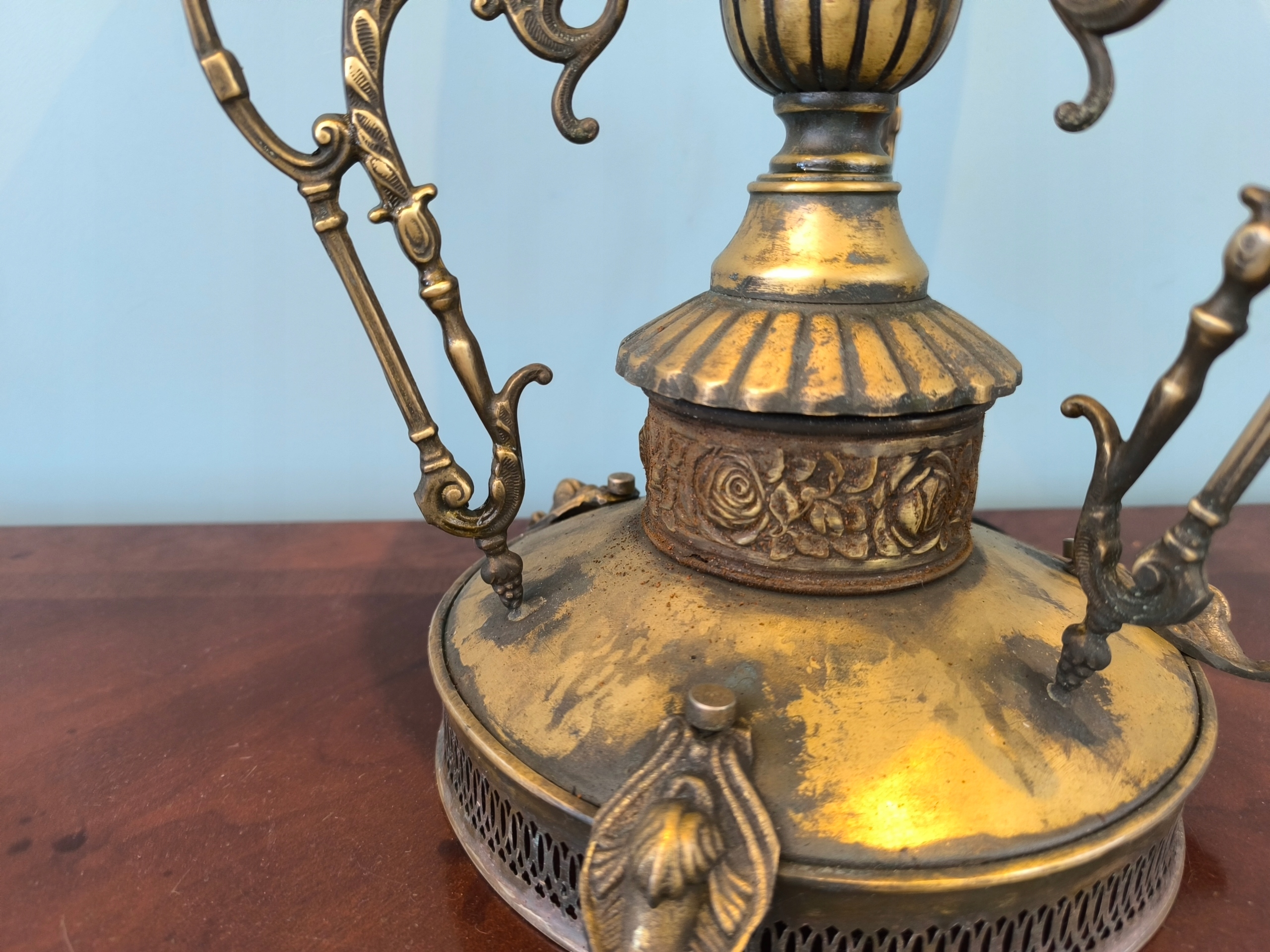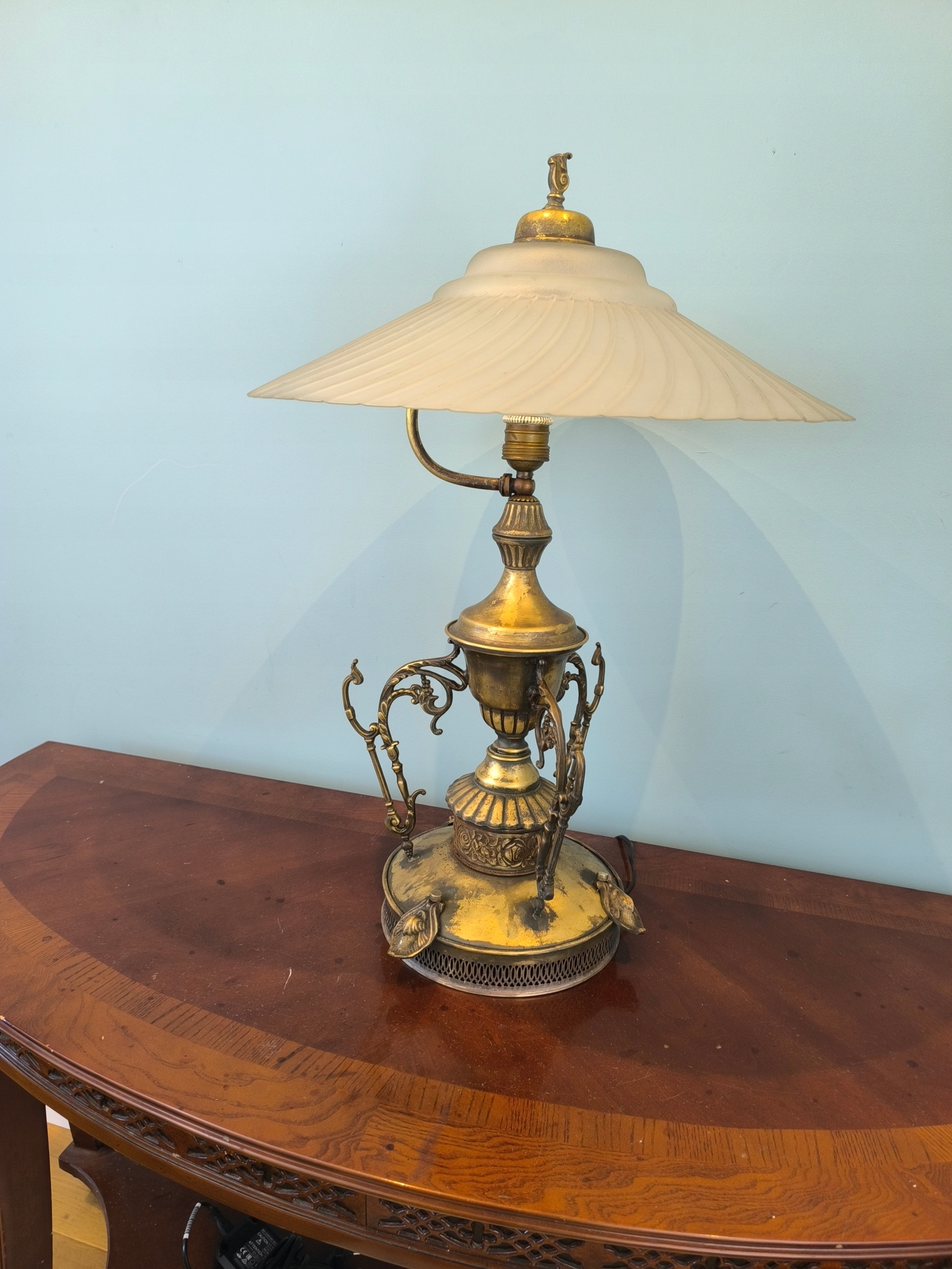 Красива латунна лампа з молочним світильниками