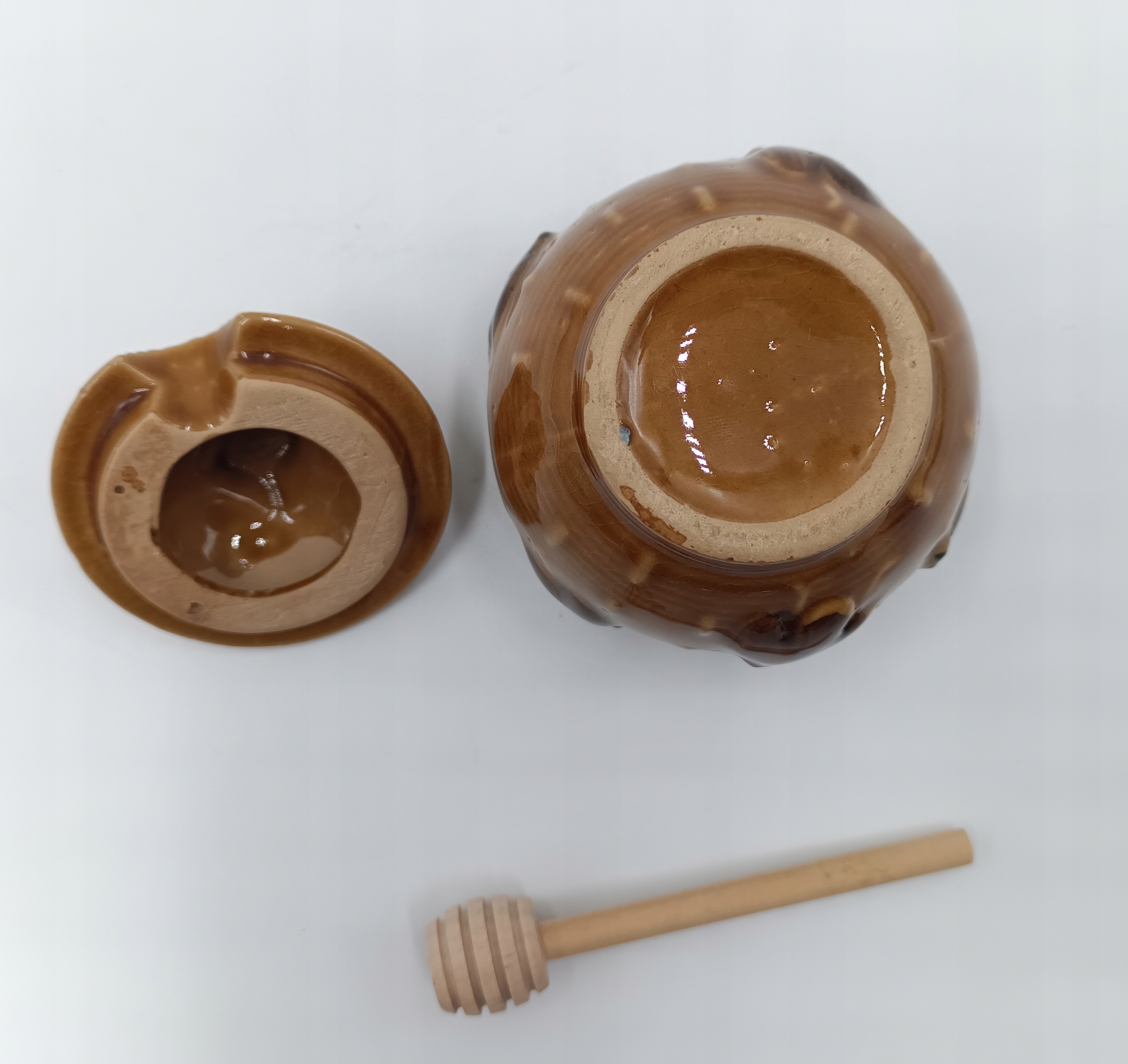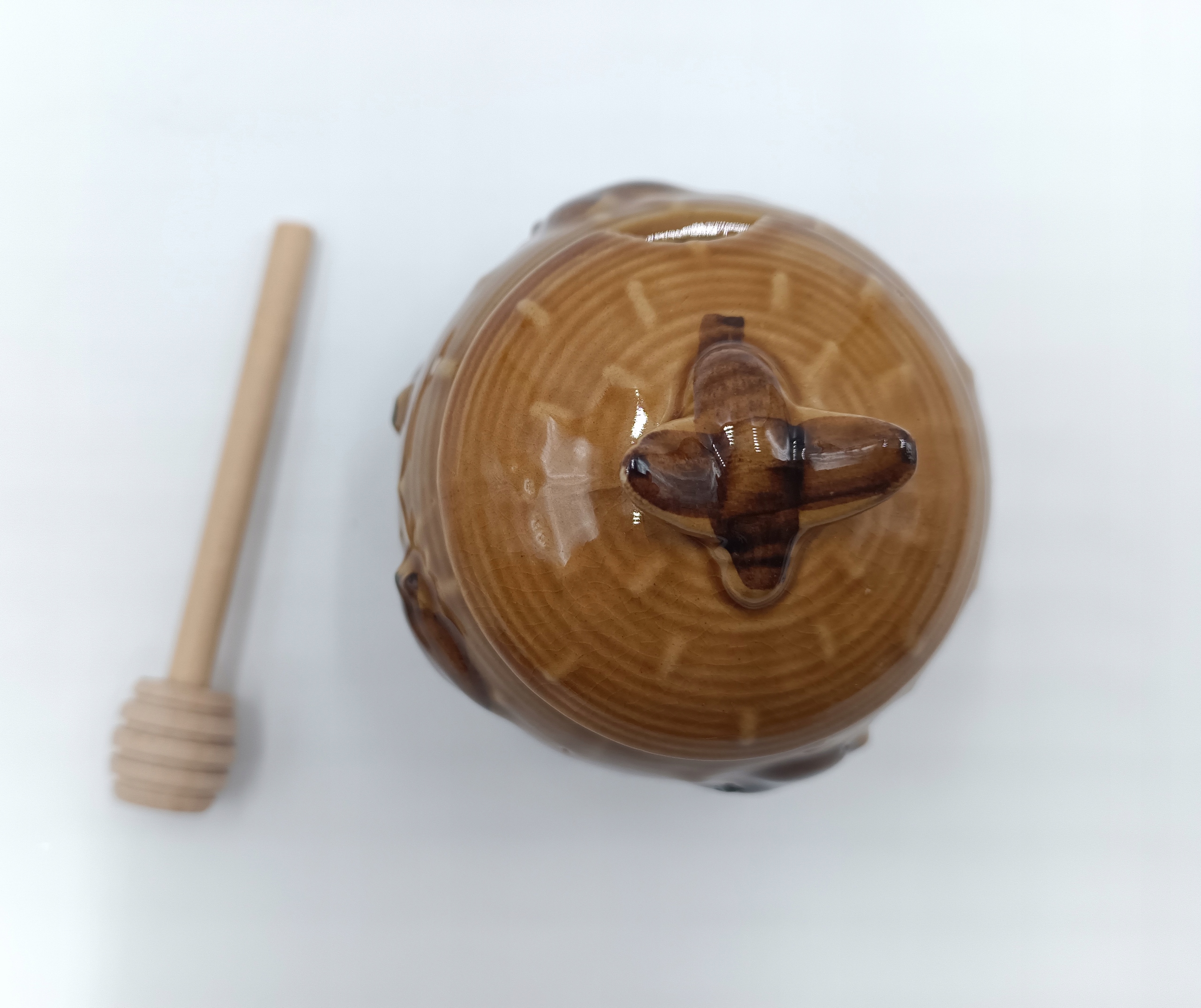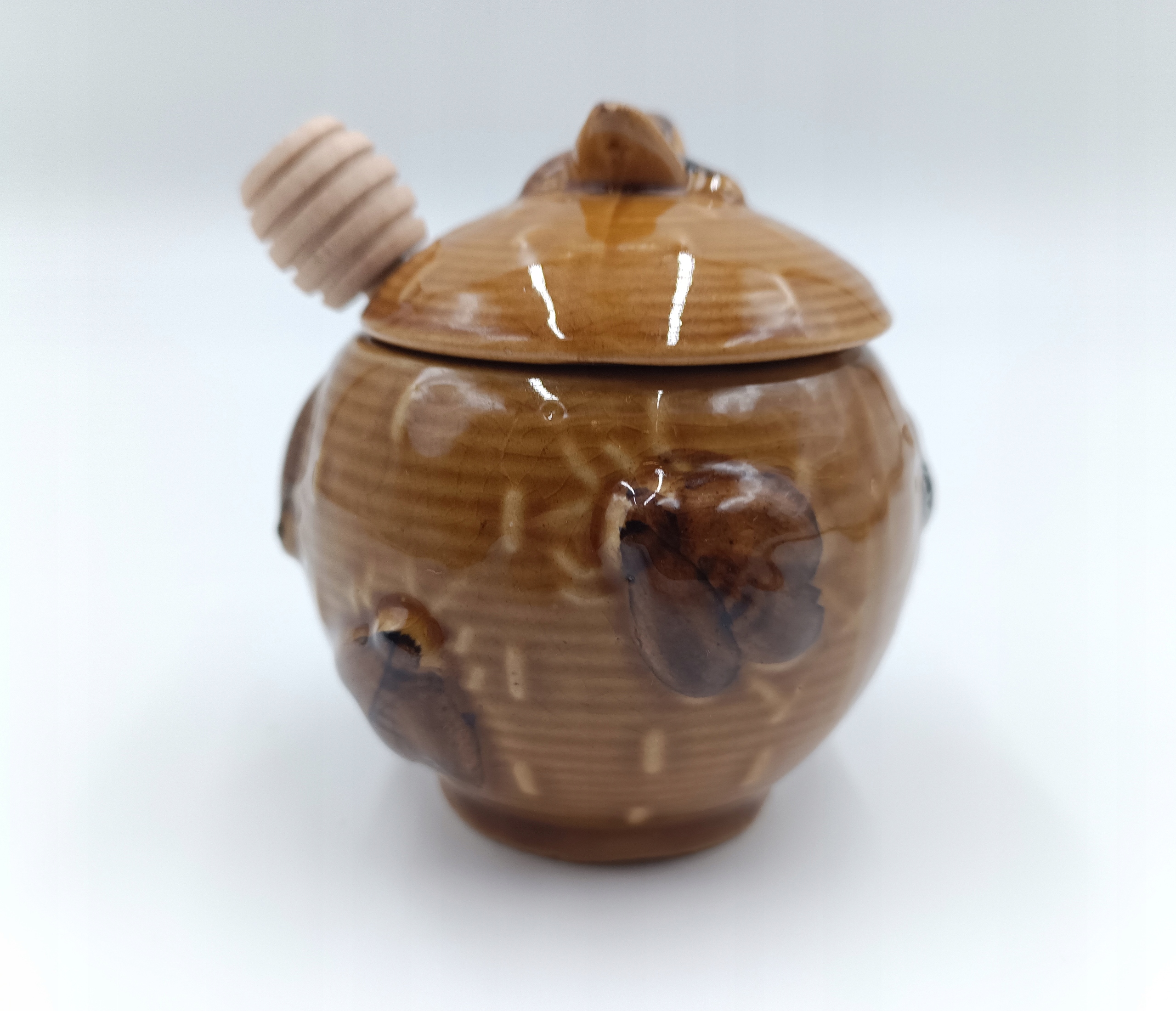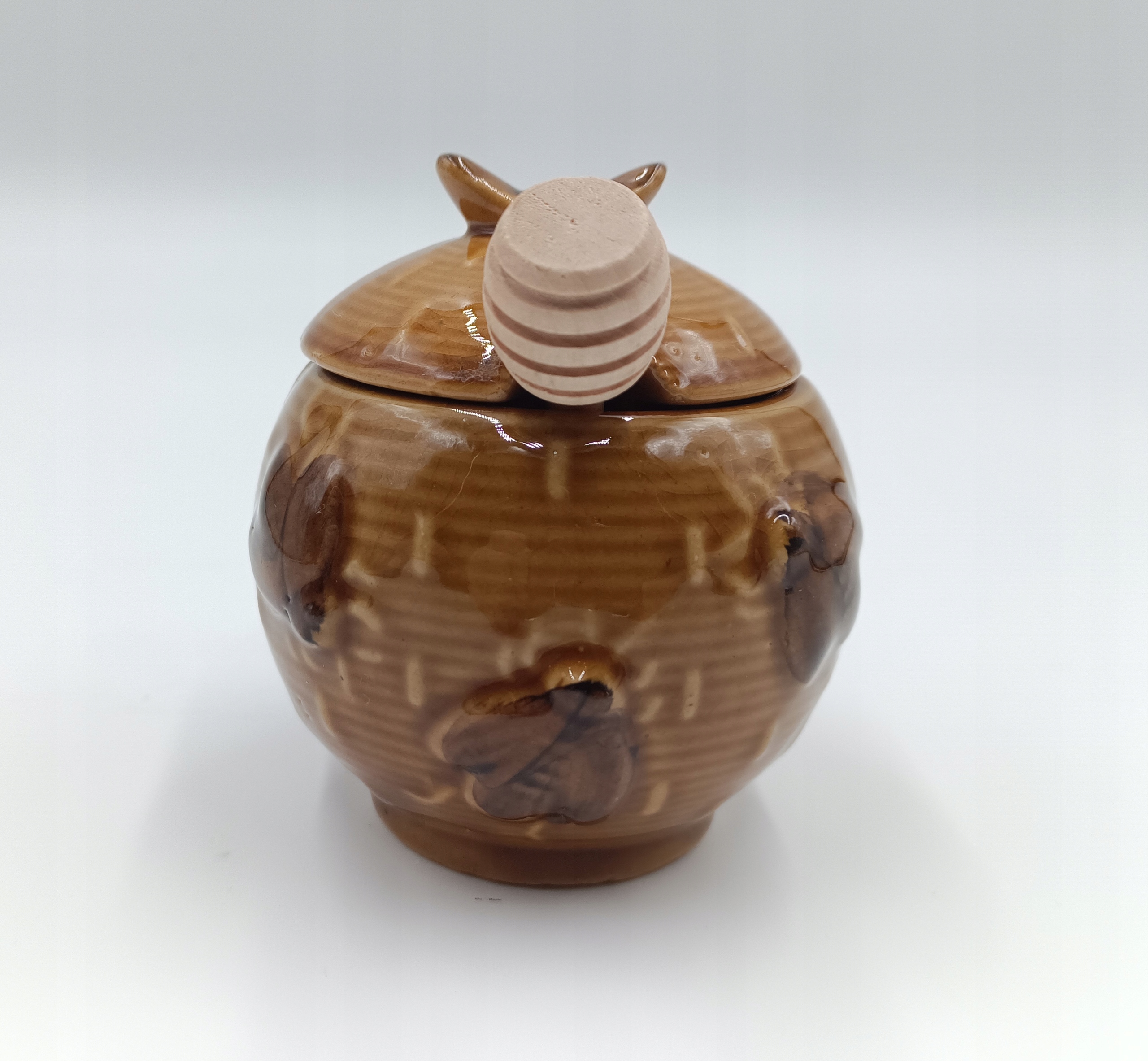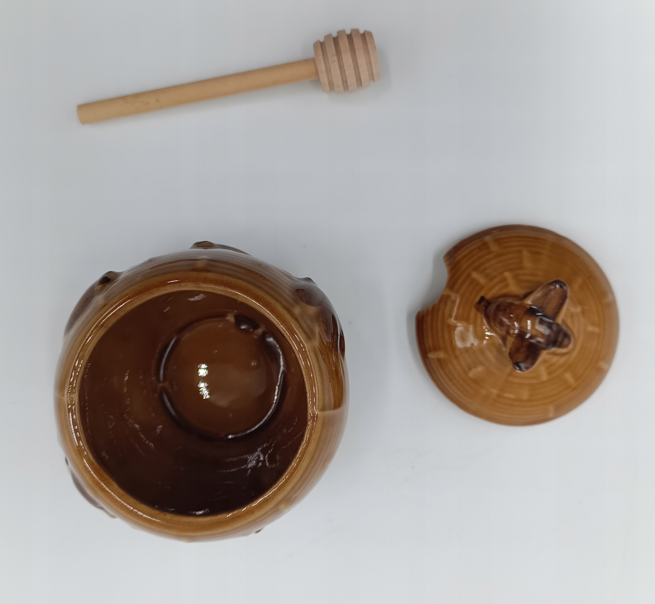 Красива ємність для меду у формі вулика - кераміка - дерев'яна паличка,