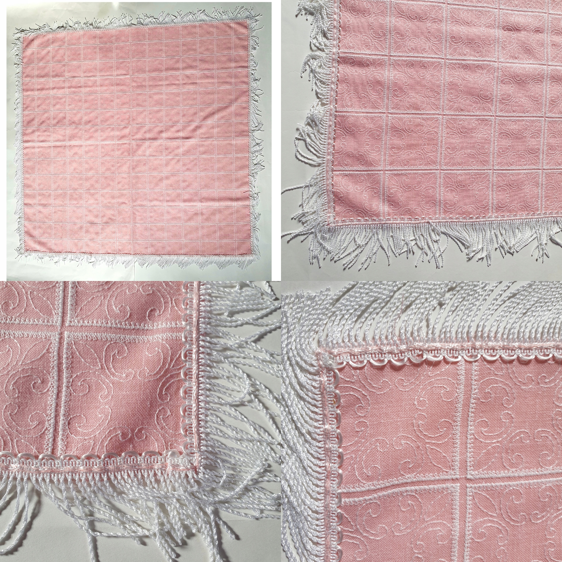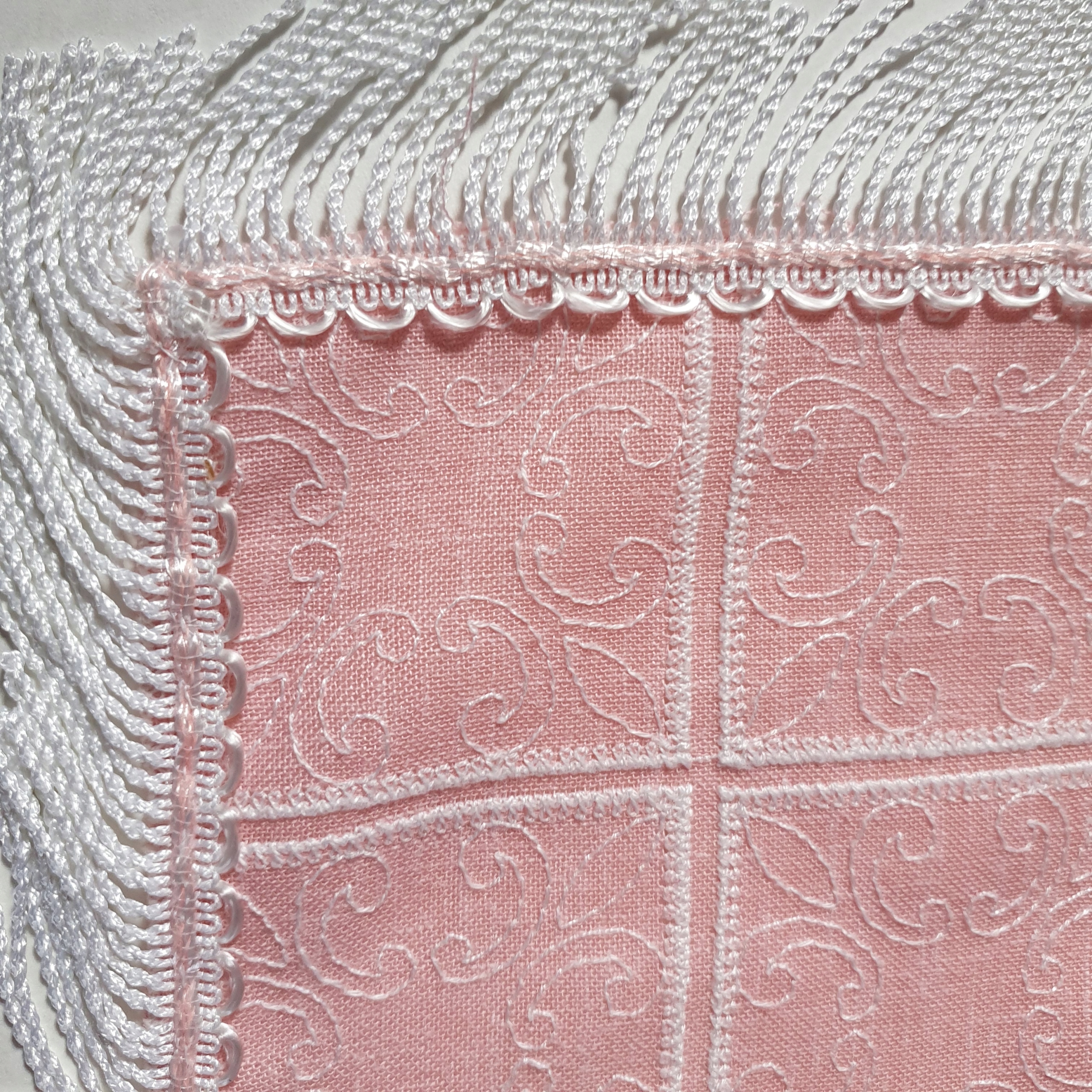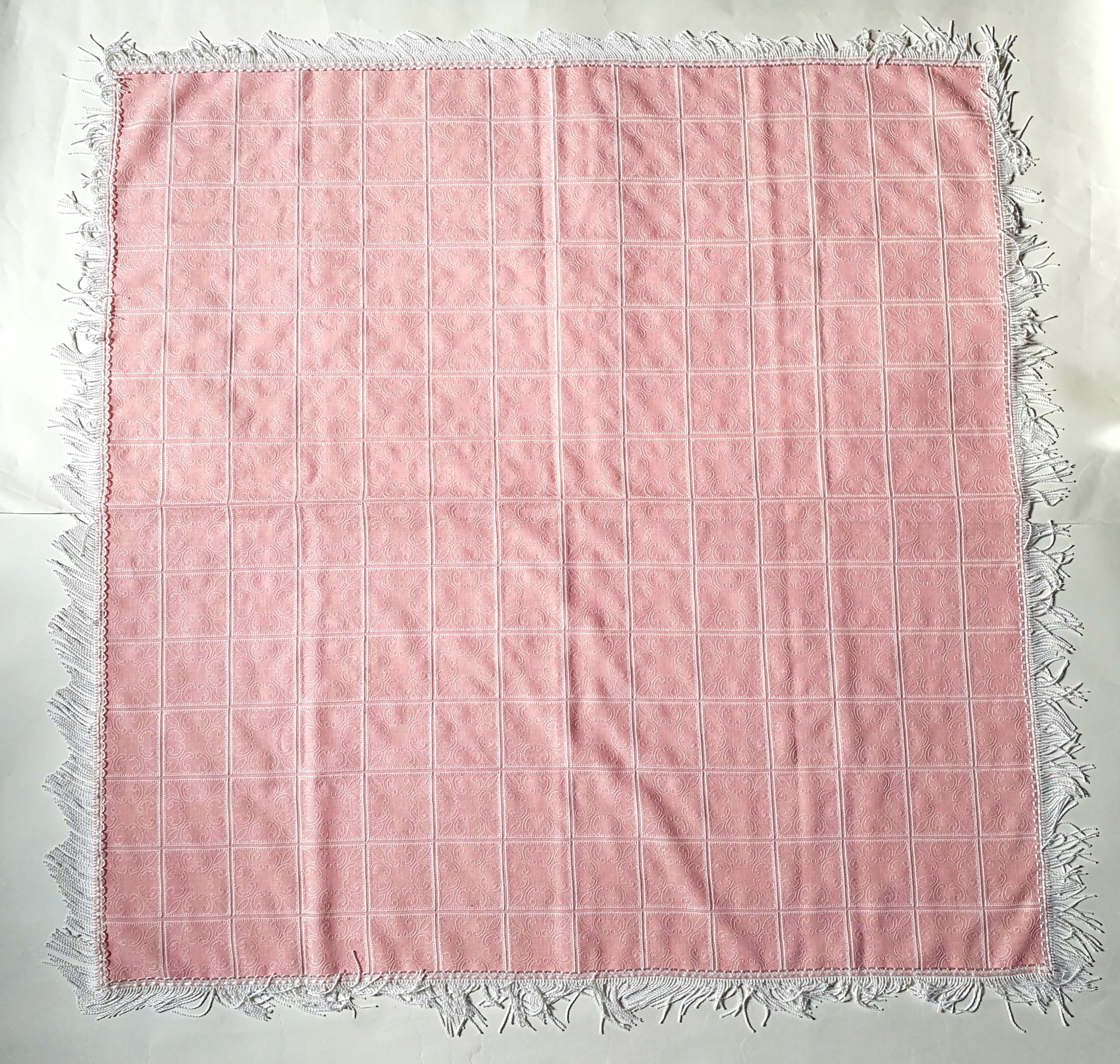 ДУЖЕ ГАРНА НОВА СКАТЕРТИНА ЧУДОВОГО РОЖЕВОГО КОЛЬОРУ З БІЛОЮ БАРОМОЮ ТА БІЛОЮ МАШИННОЮ ВИШИВКОЮ.