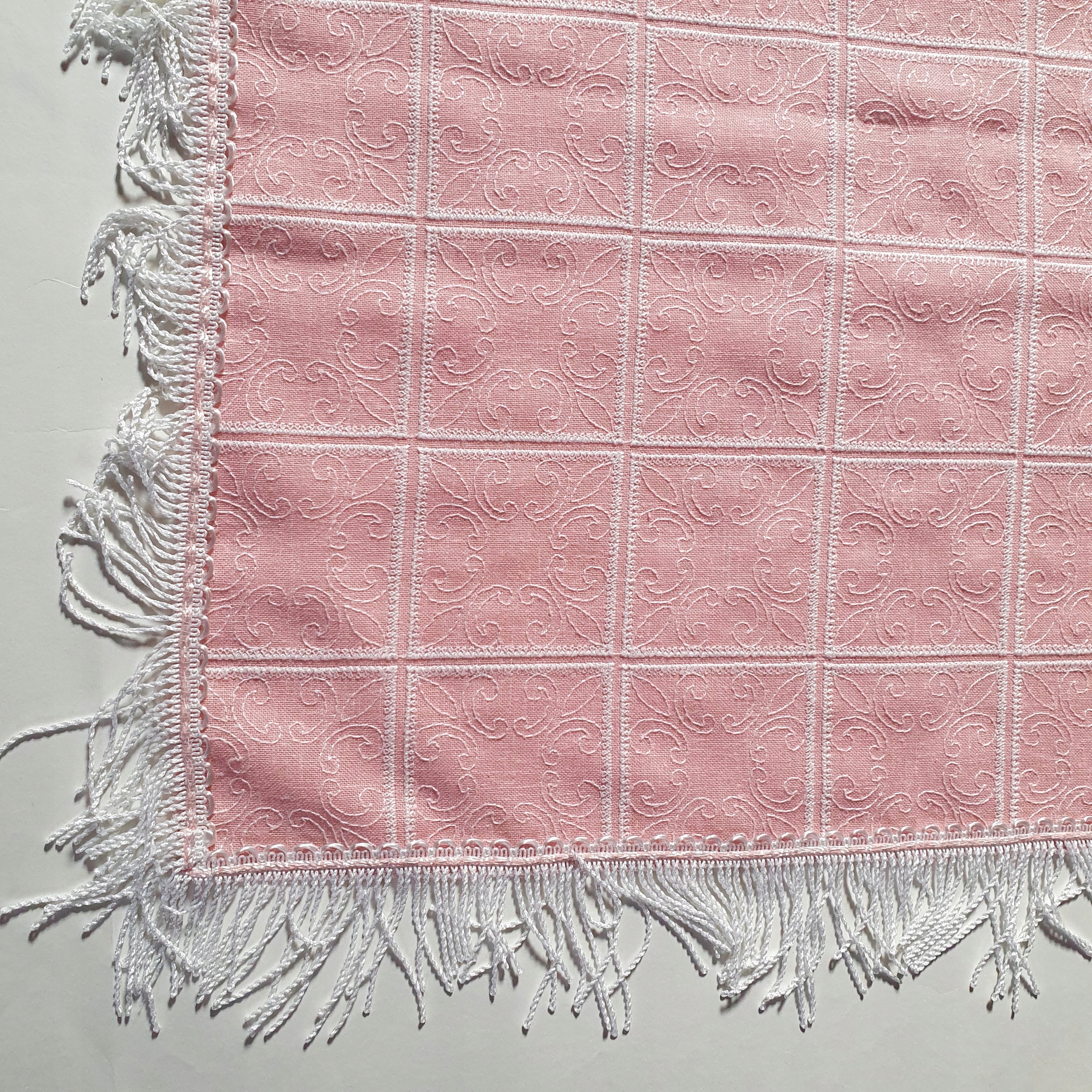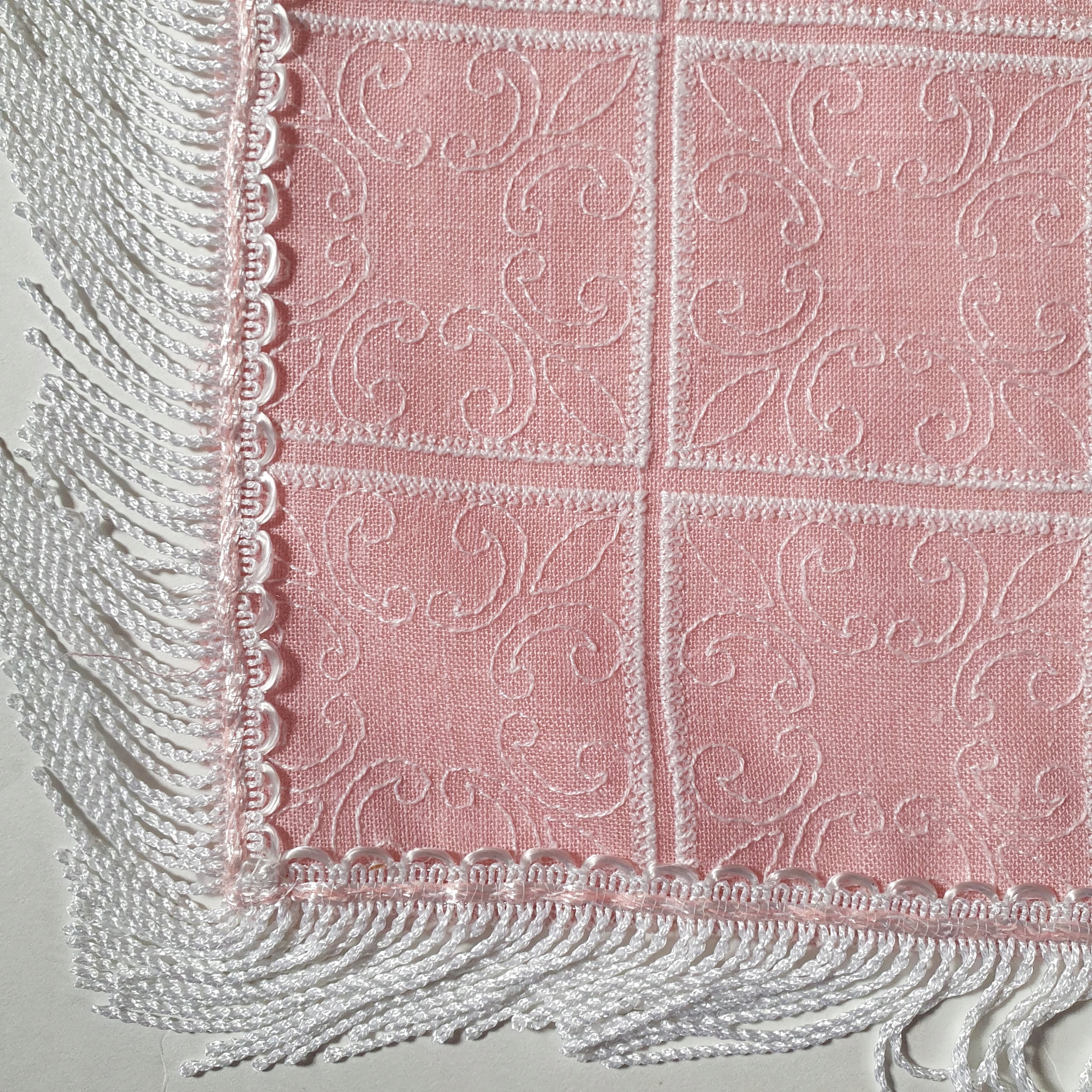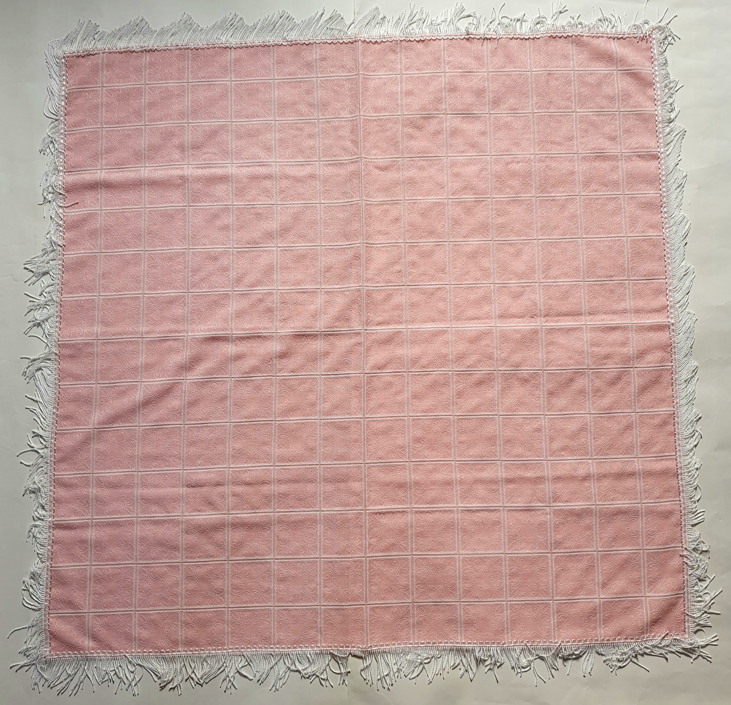 ДУЖЕ ГАРНА НОВА СКАТЕРТИНА ЧУДОВОГО РОЖЕВОГО КОЛЬОРУ З БІЛОЮ БАРОМОЮ ТА БІЛОЮ МАШИННОЮ ВИШИВКОЮ.