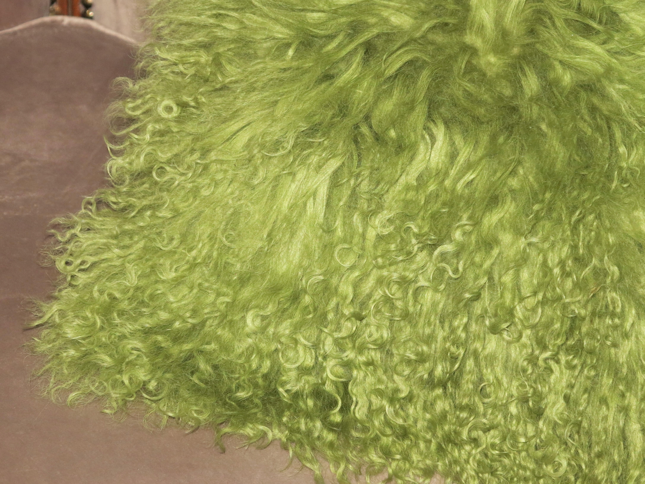 Красива подушка натуральна шкіра лама, тканина зеленого волосся