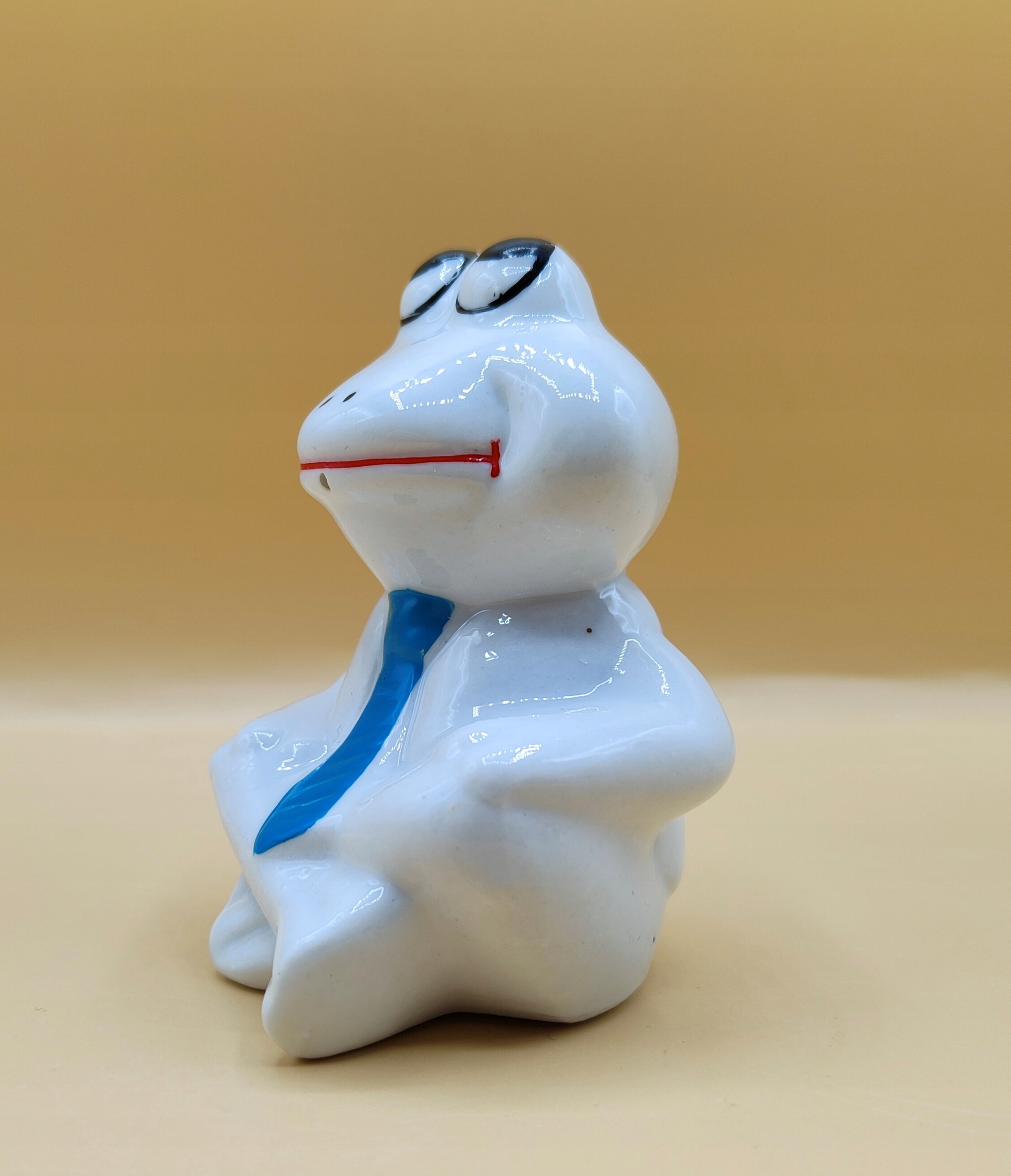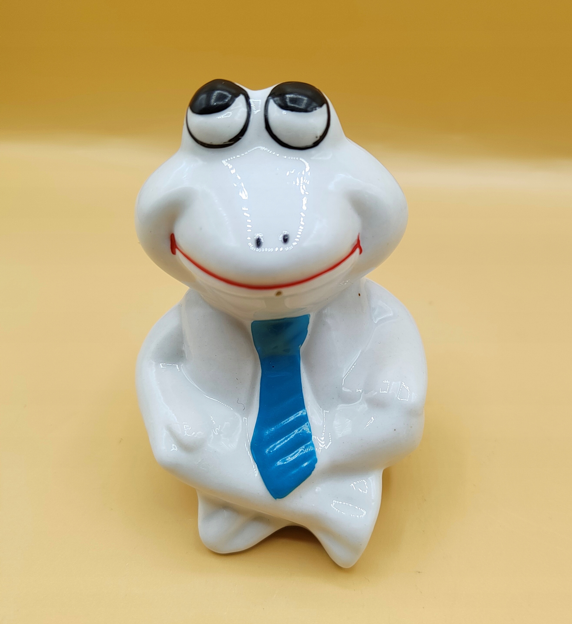 Вінтаж, красива порцелянова жаба, яка сидить, схрестивши ноги,