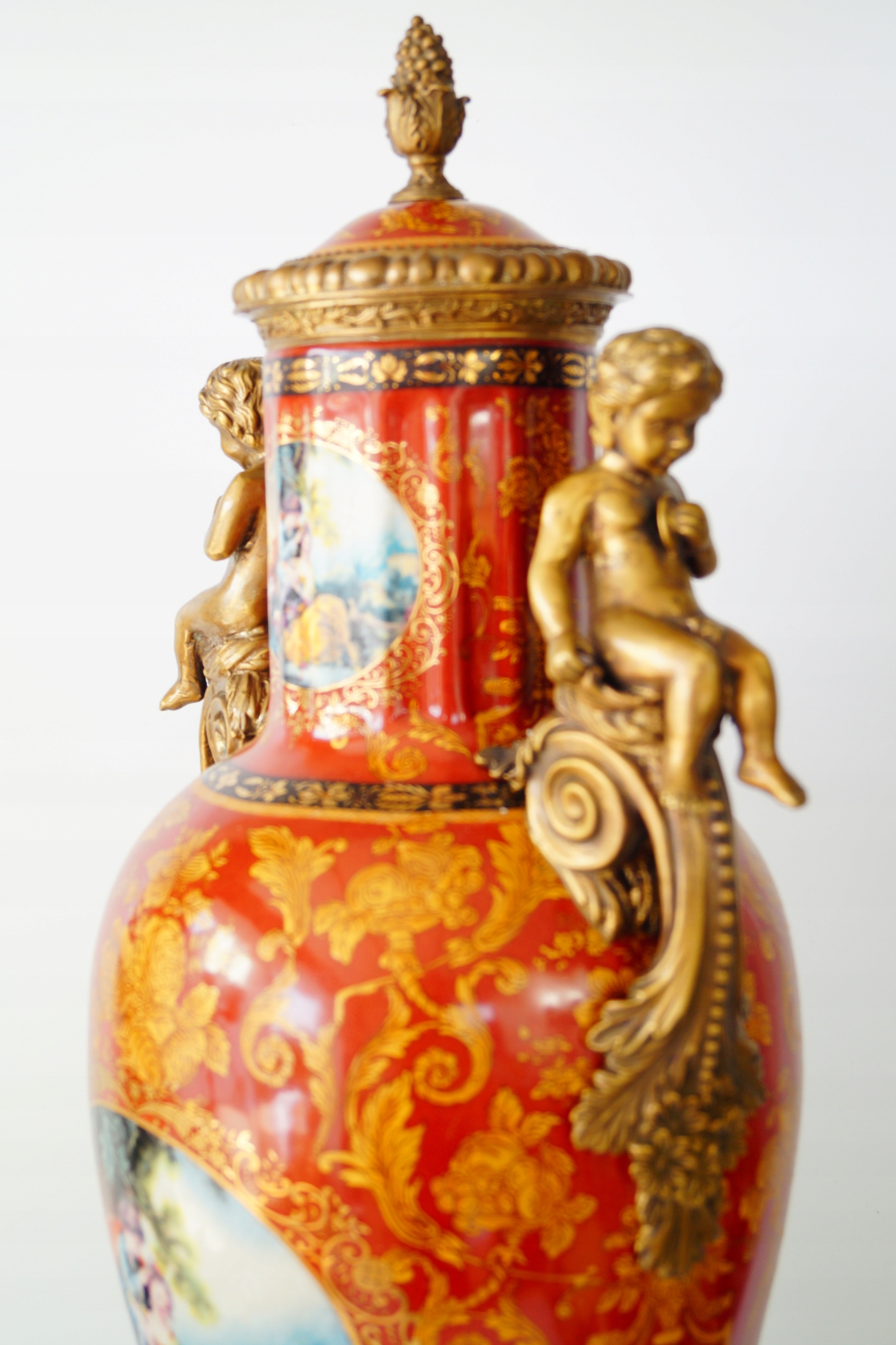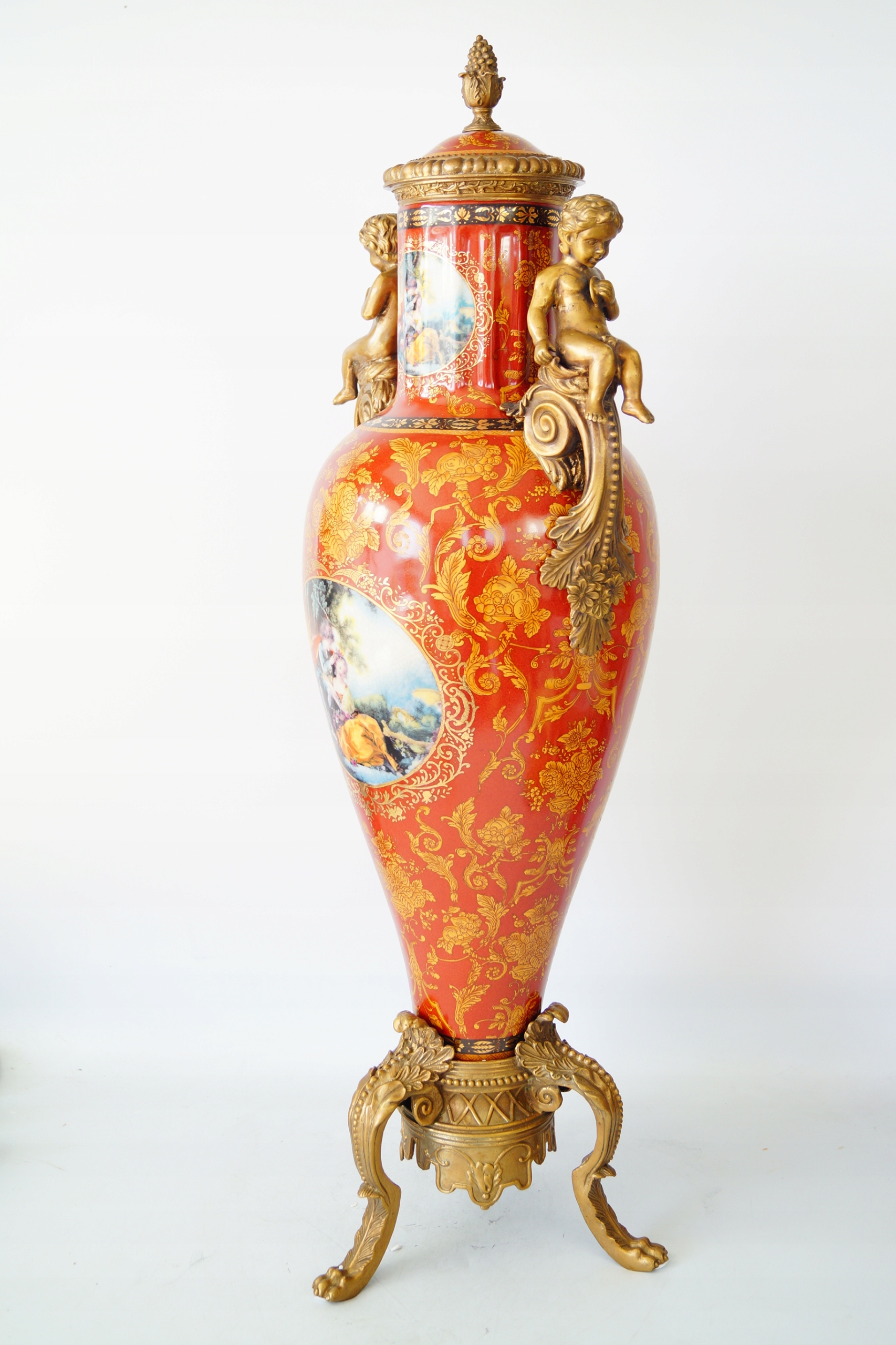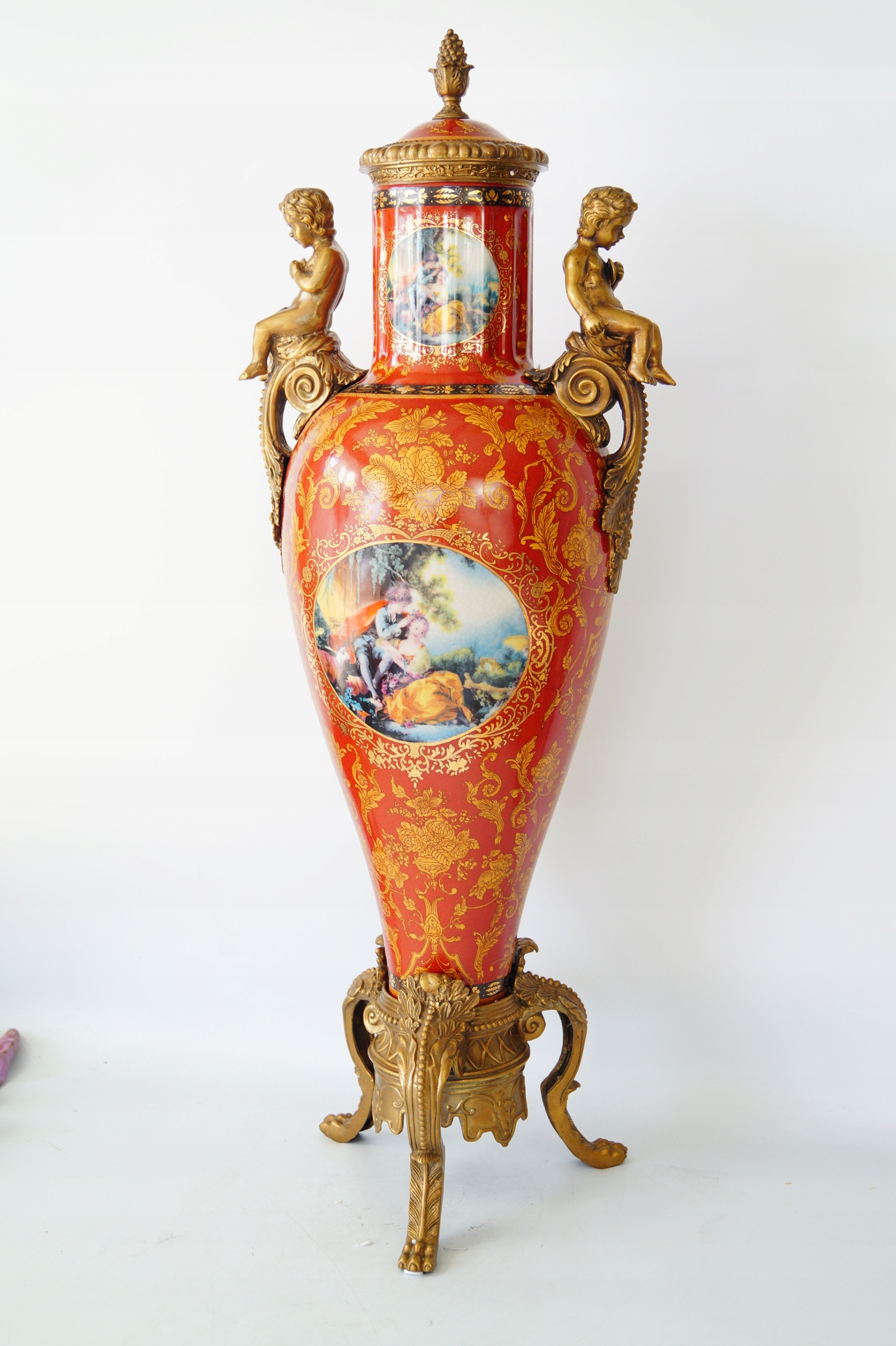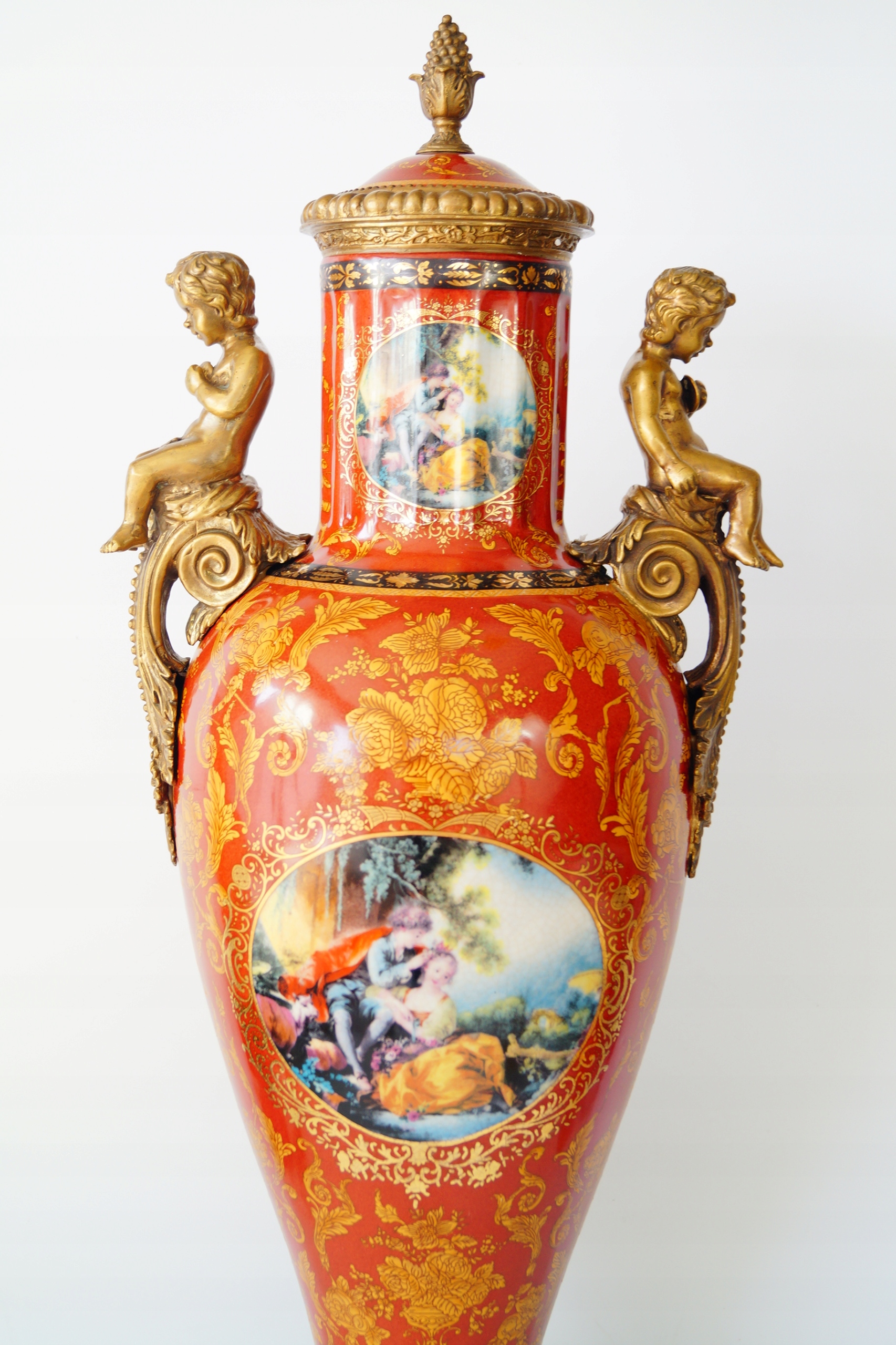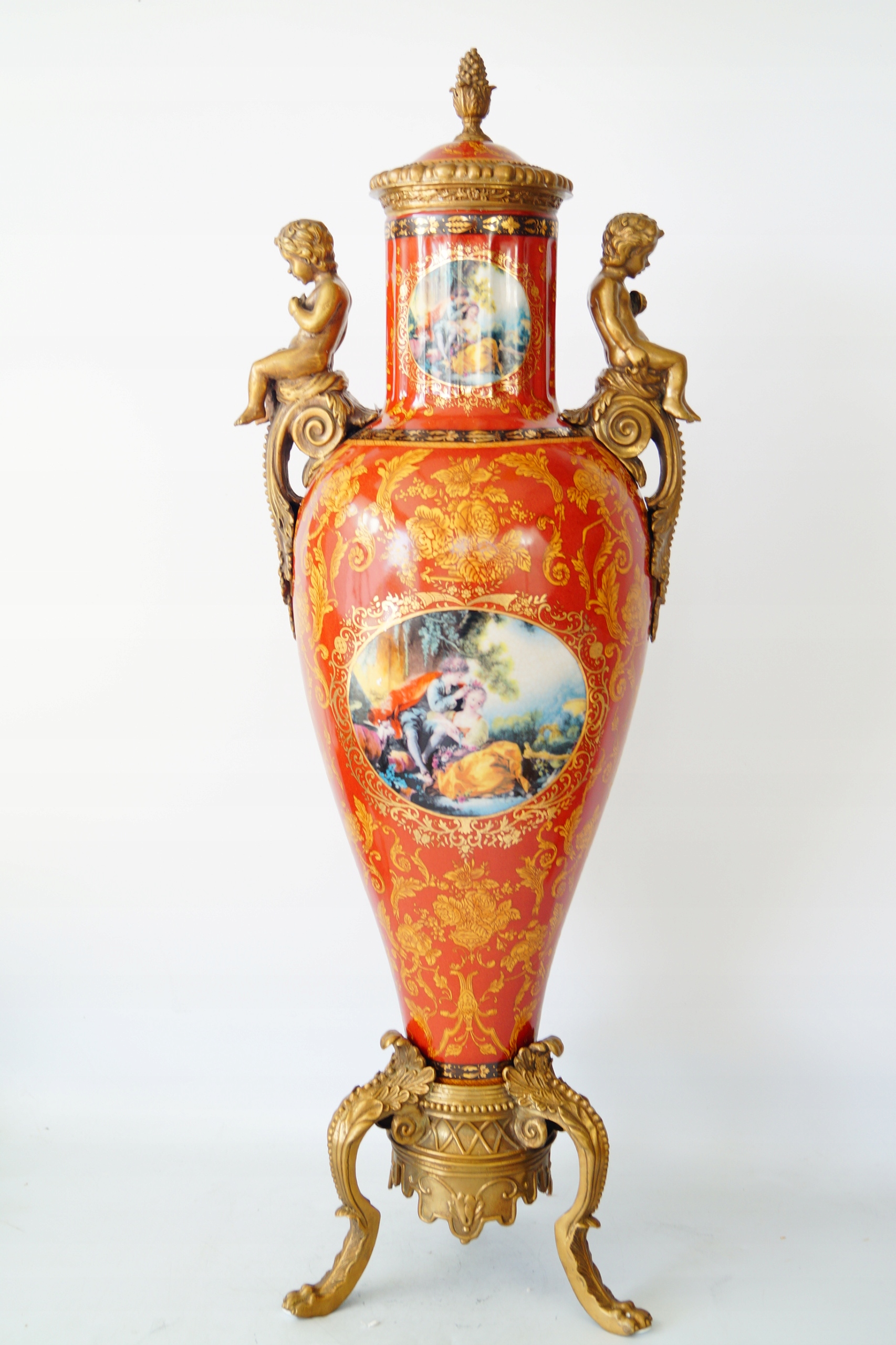 Красива порцелянова ваза амфора ваза Фарфор + коричневі квіти червоні