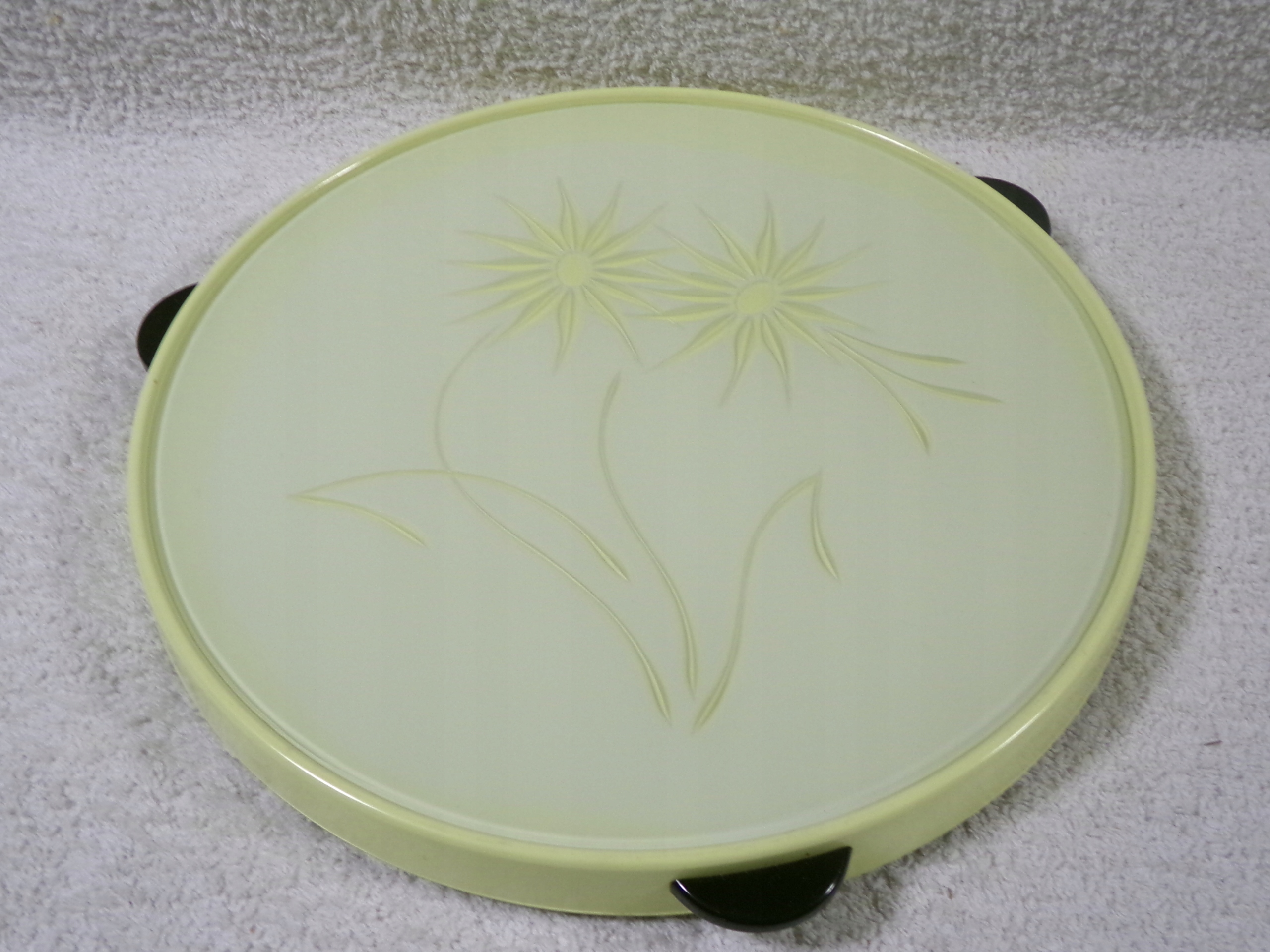 Прекрасна алюмінієва патера, що покриває скляною пластиною з висотою 3 см, середнім діаметром 28,5 см, вагою 0,92 кг. Стан дуже хороший, без пошкоджень.