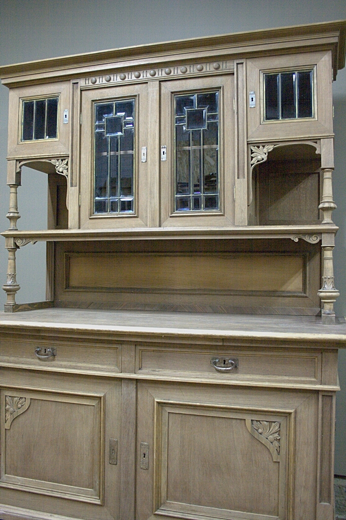 Предмет меблів проста форма, прикрашена гарним скошеним склом та різьбленням, що робить все це дуже ефектним. .