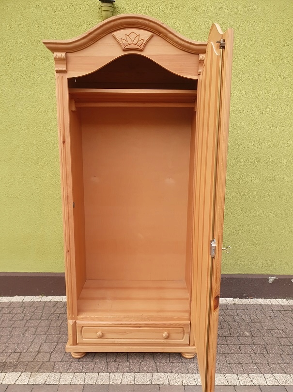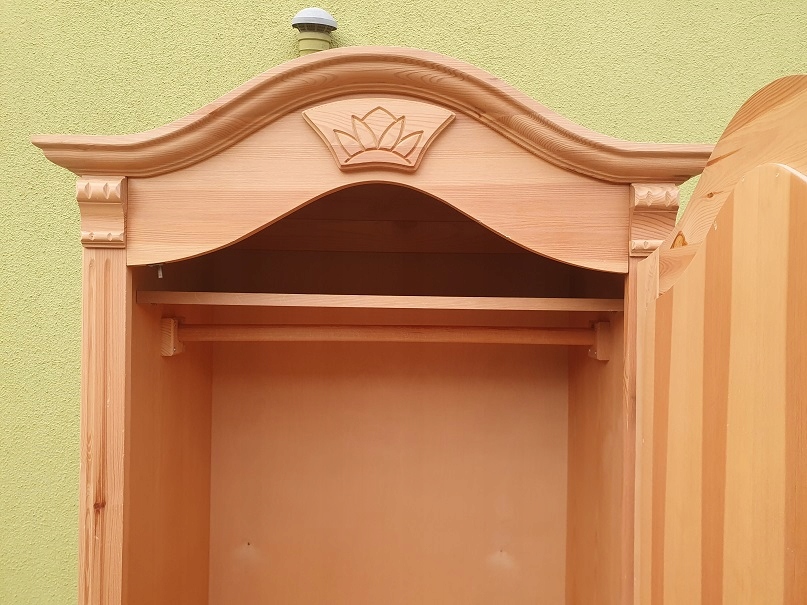 Шафа виготовлена з деревини сосни світлого натурального кольору.