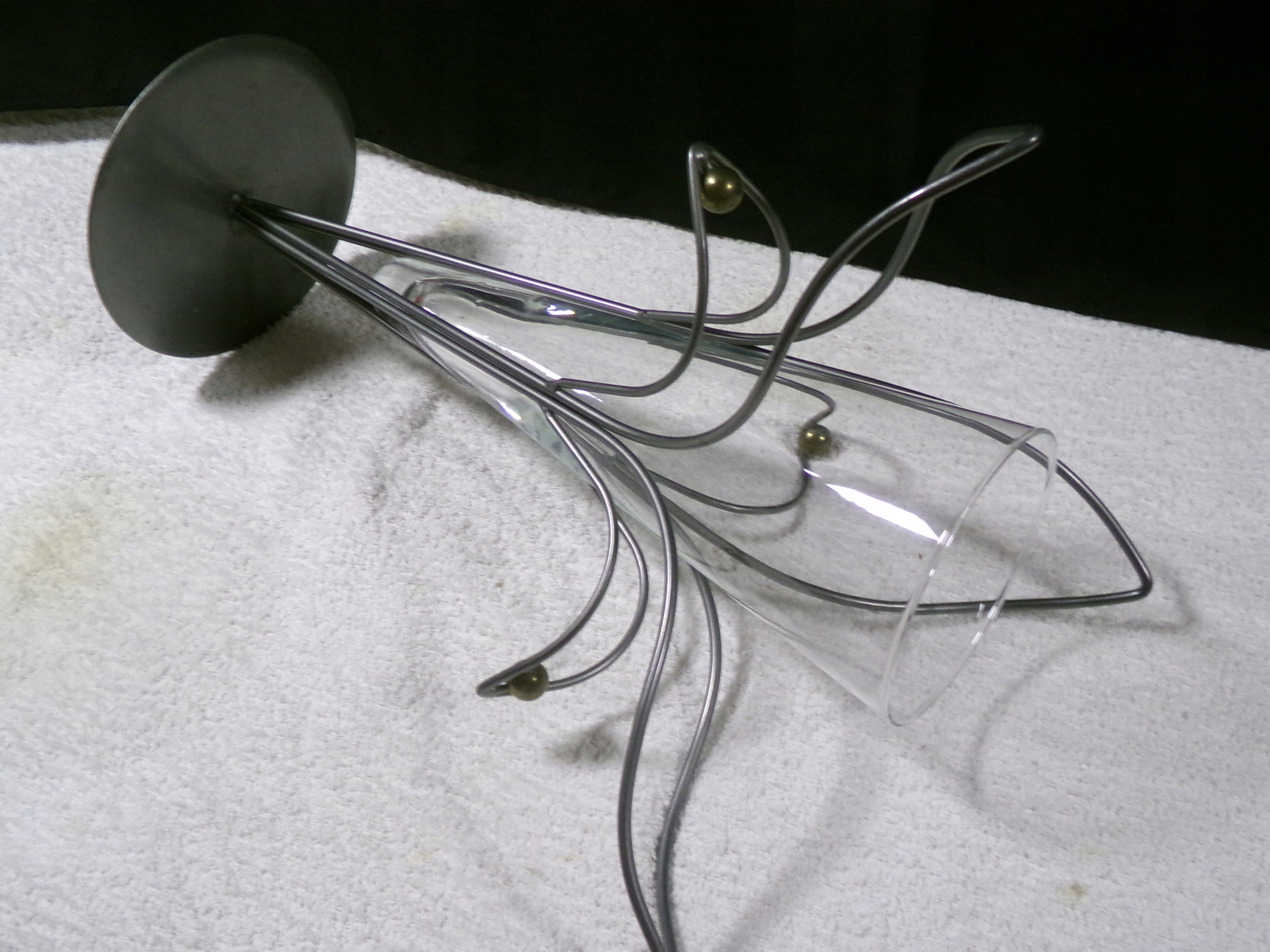 Красива скляна ваза з висотою 32 см, діаметром 12 см та розмірами металевої підставки 46х26 см, вагою 1,51 кг. Дуже хороший стан, без пошкоджень, чистий. , Orlen, DHL, DPD, UPS -5 аукціони.