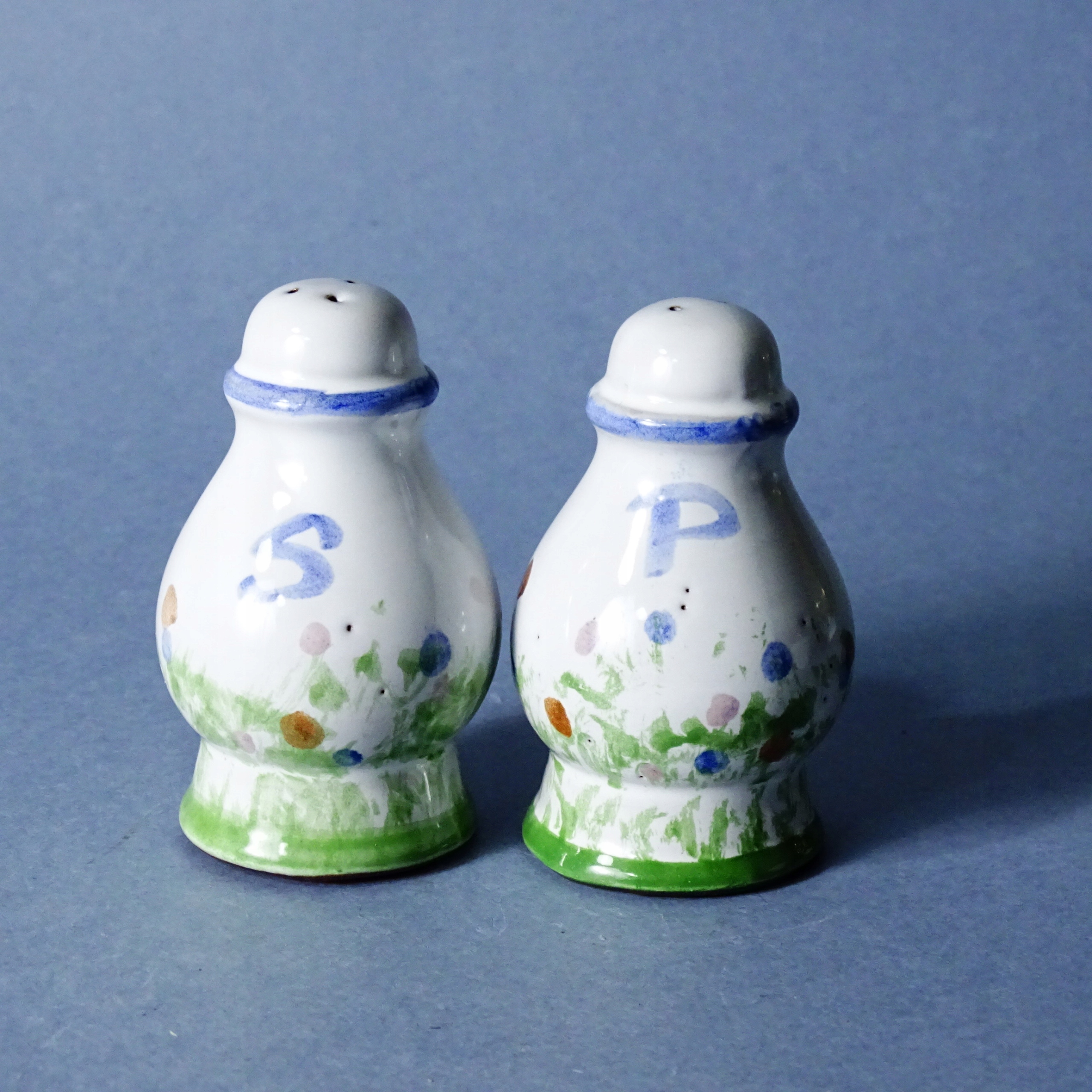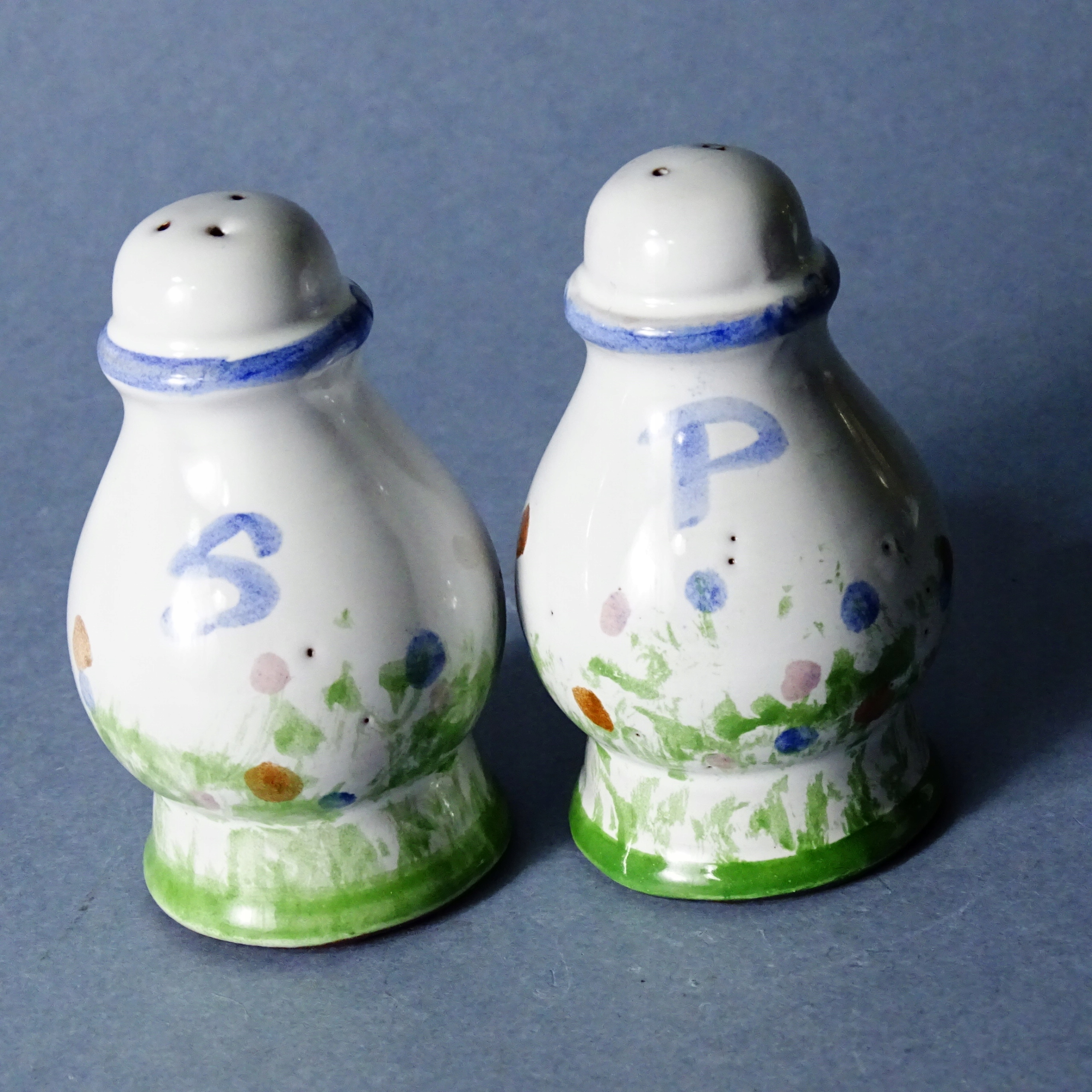 PIĘKNA RĘCZNIE MALOWANA SOLNICZKA I PIEPRZNICZKA GLINAINA