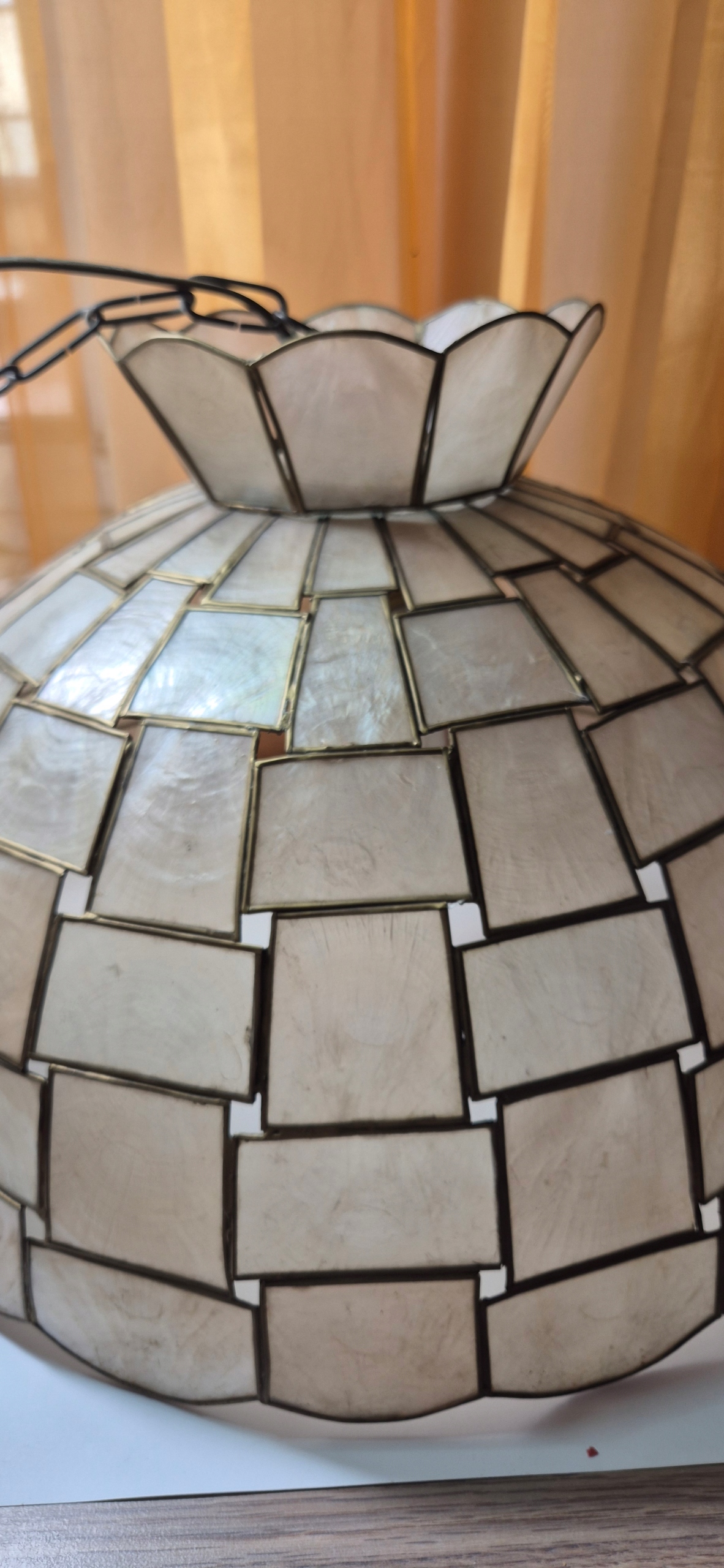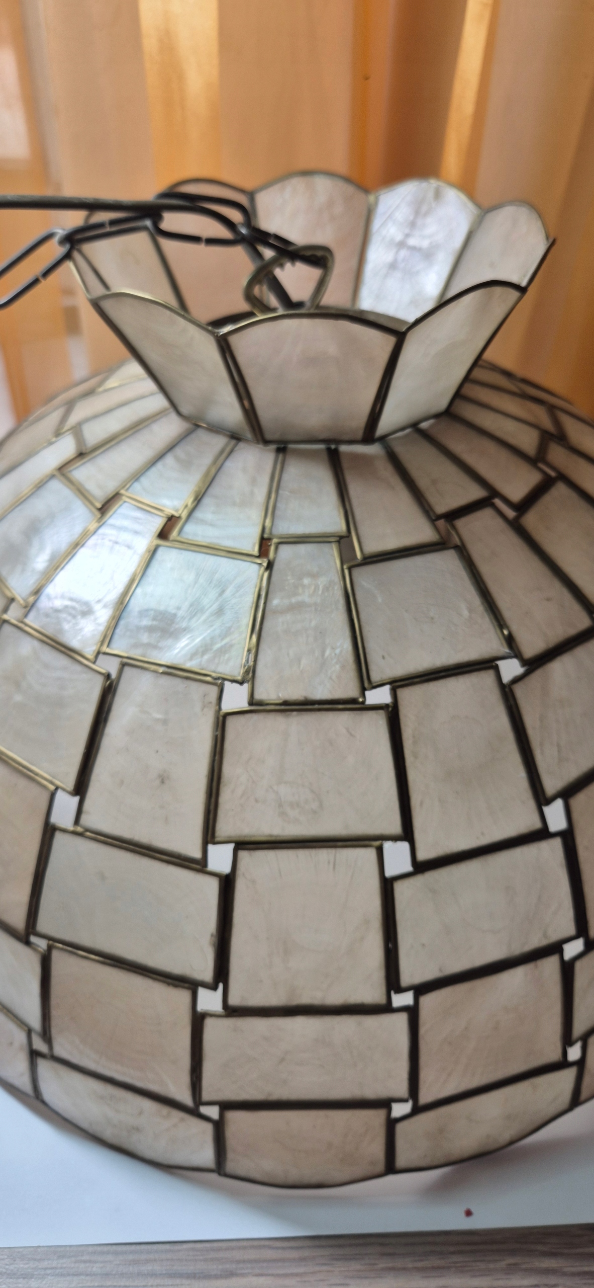 красива люстра стара лампа, виготовлена з латунної та перлової маси
