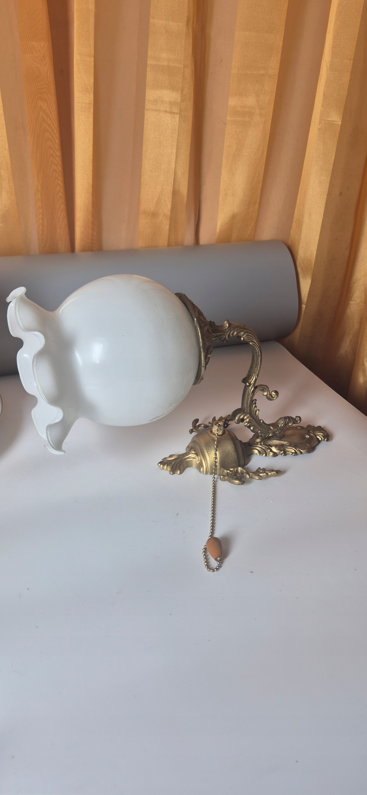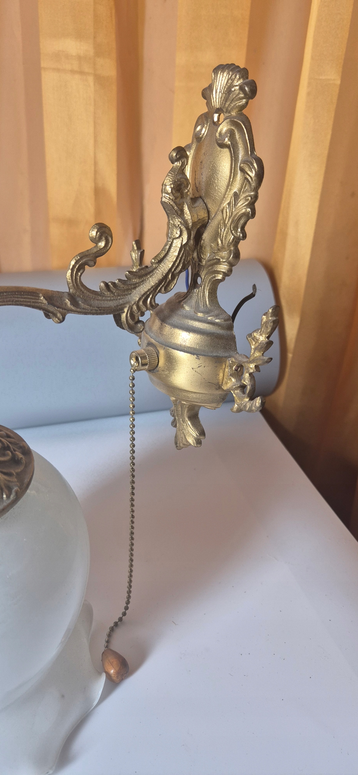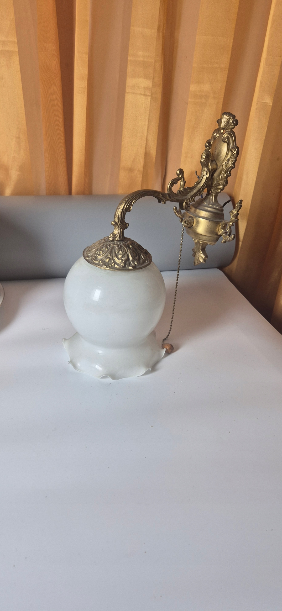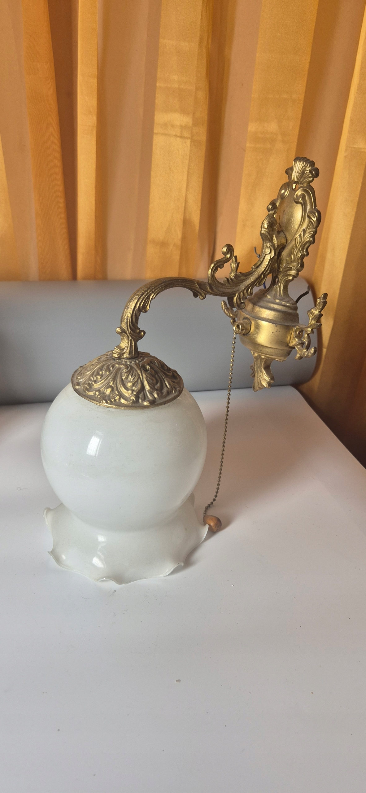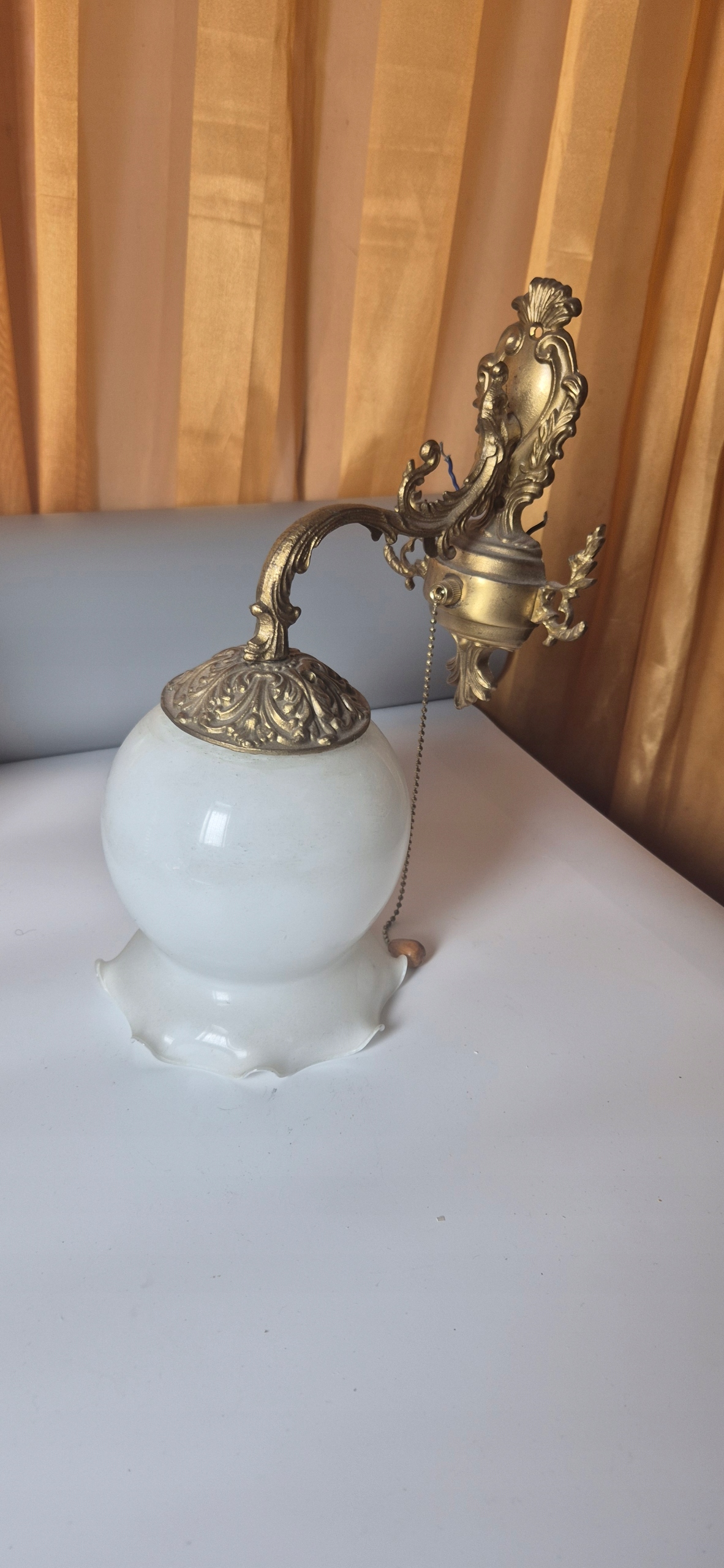 Красива стара латунна настінна лампа з світильником