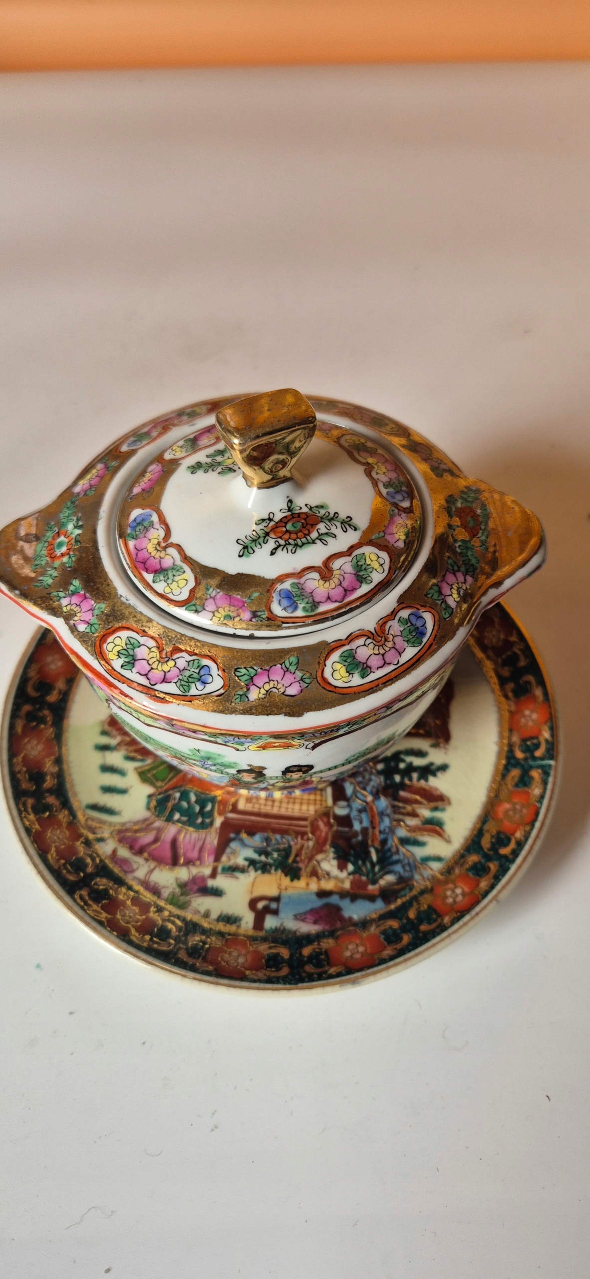 Красива стара порцелянова китайська миска з цукром з часів польської народної республіки T3
