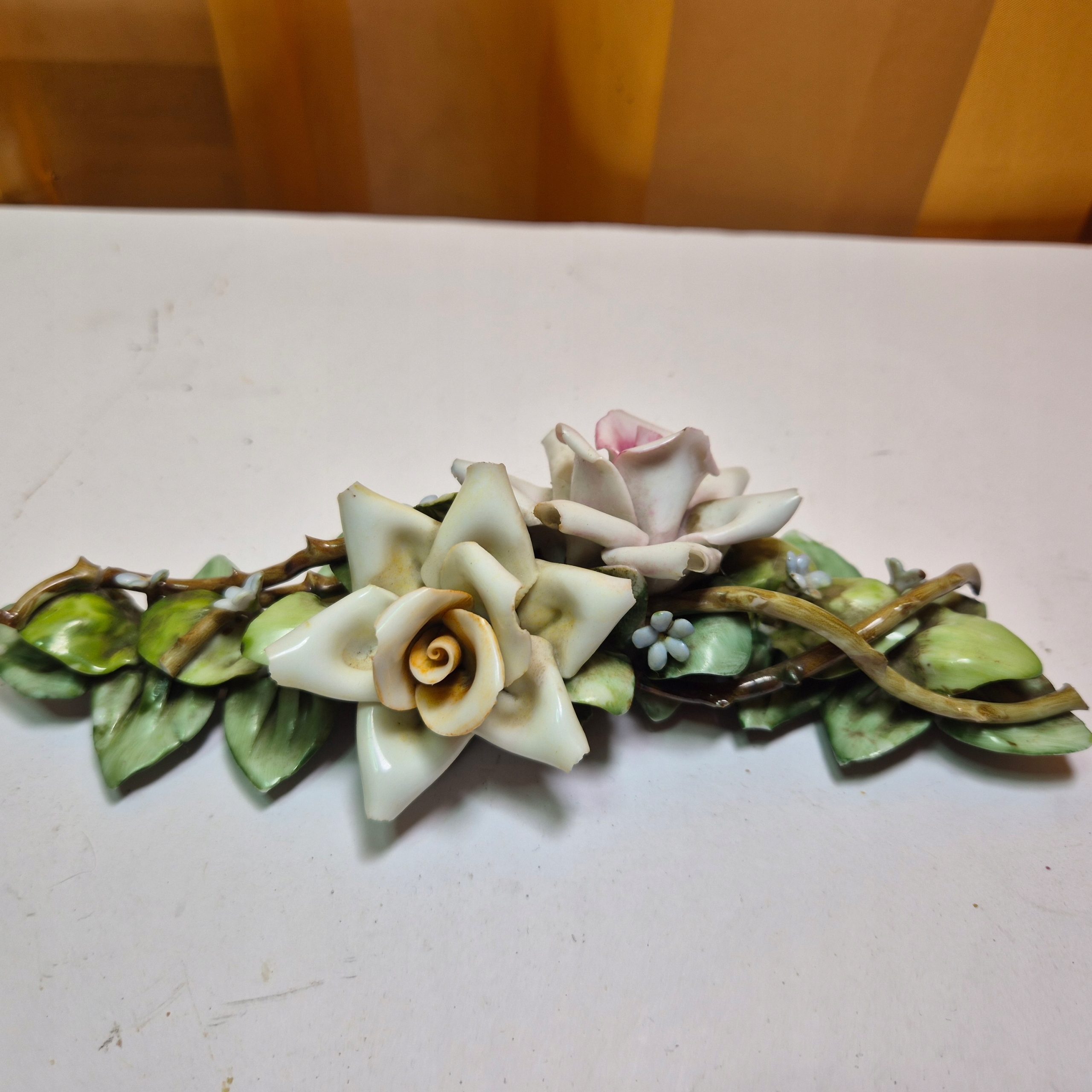 Красива стара порцелянова прикраса Каподимонте 1960 -х. Троянди (23
