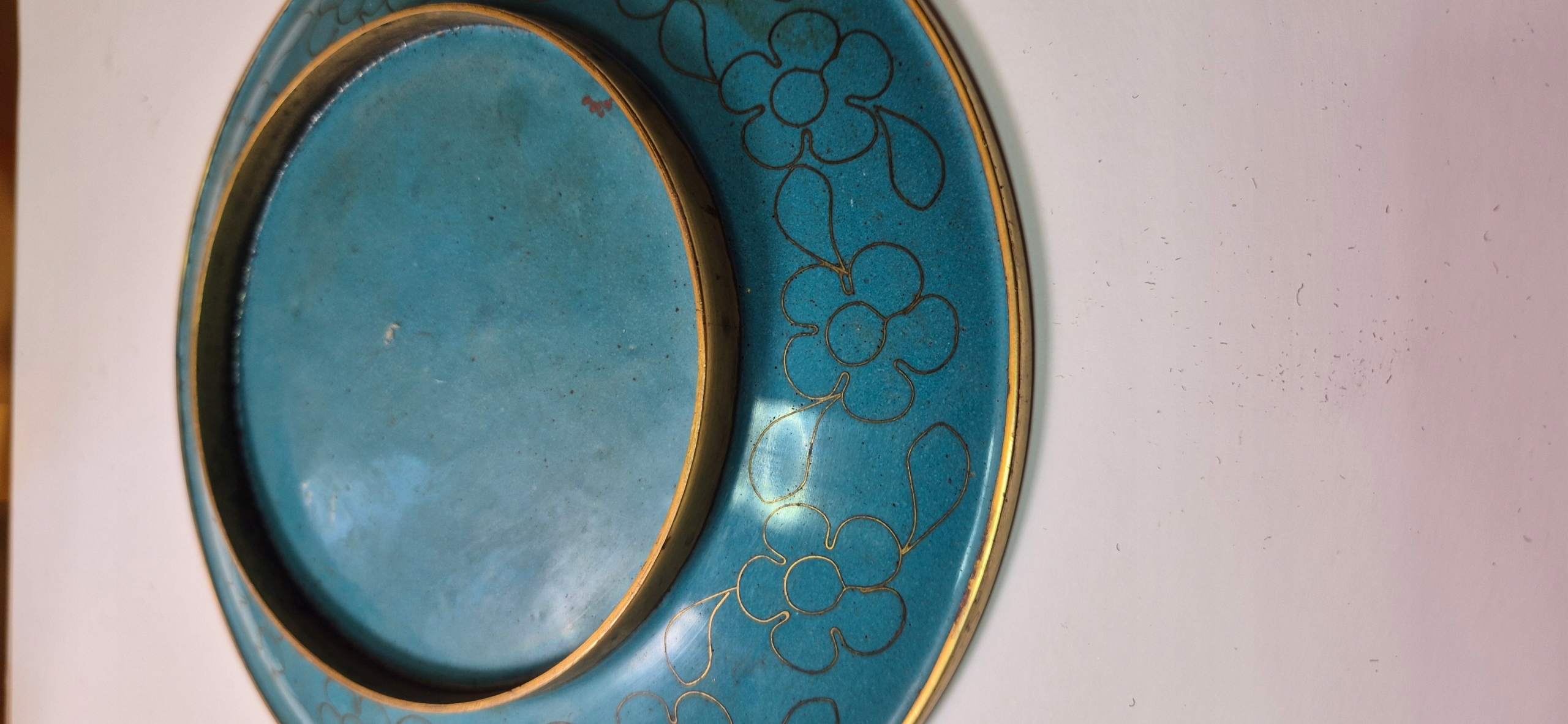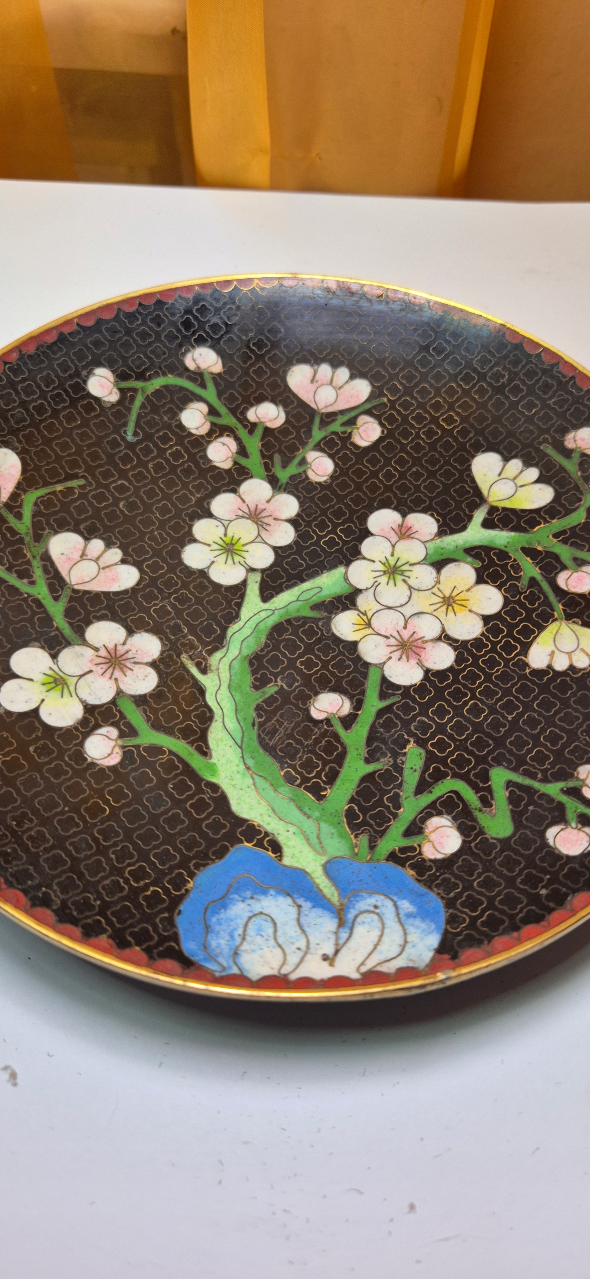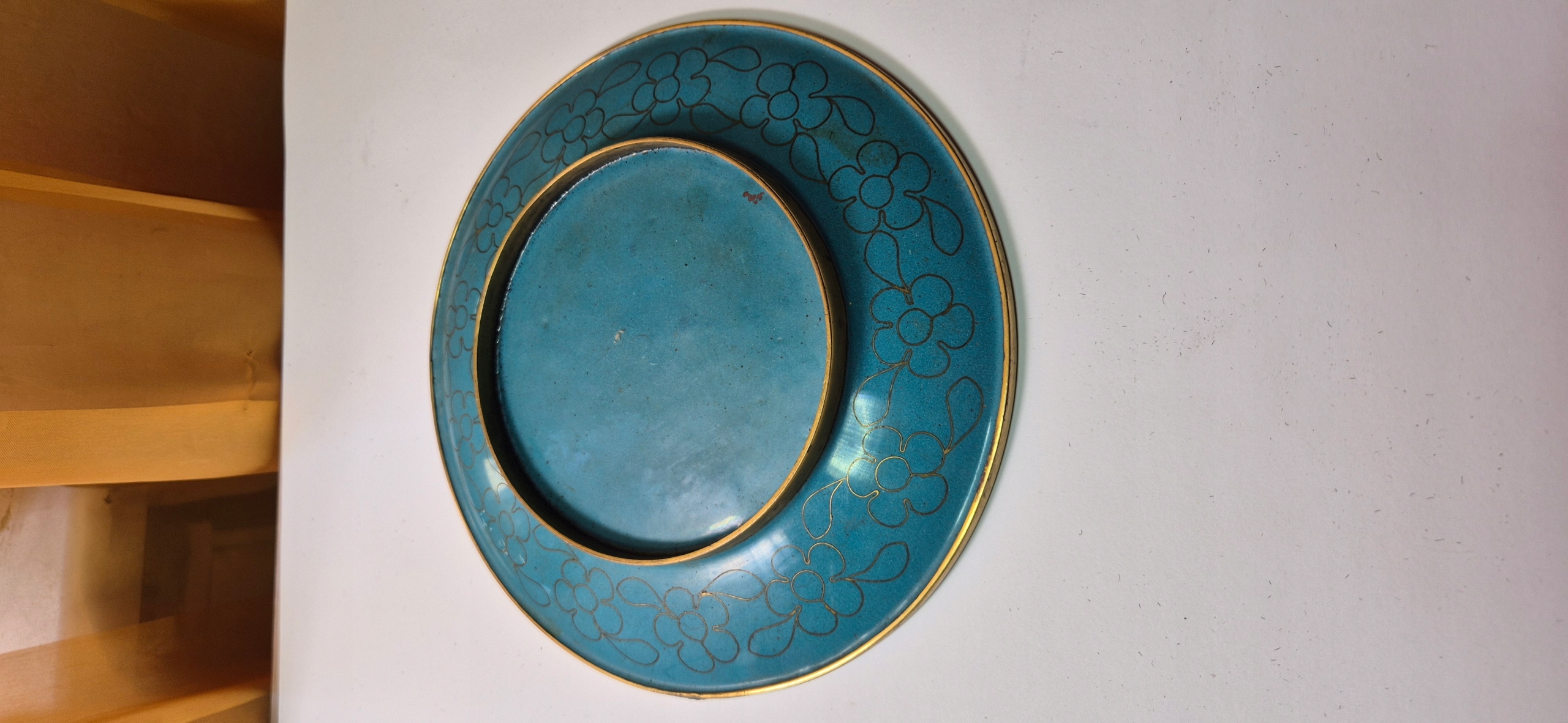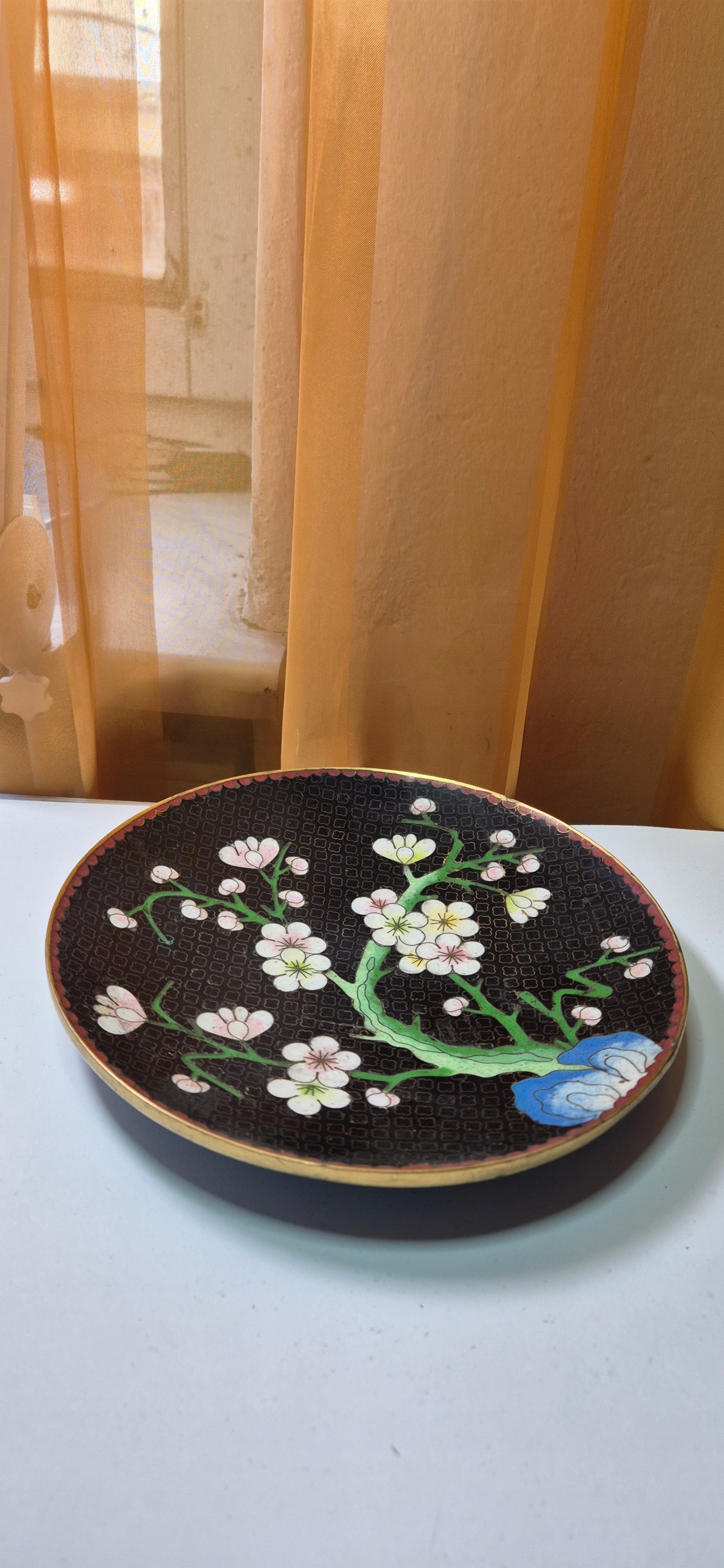 Красива стара японська мідна тарілка Cloisone Cellular Enamel T28
