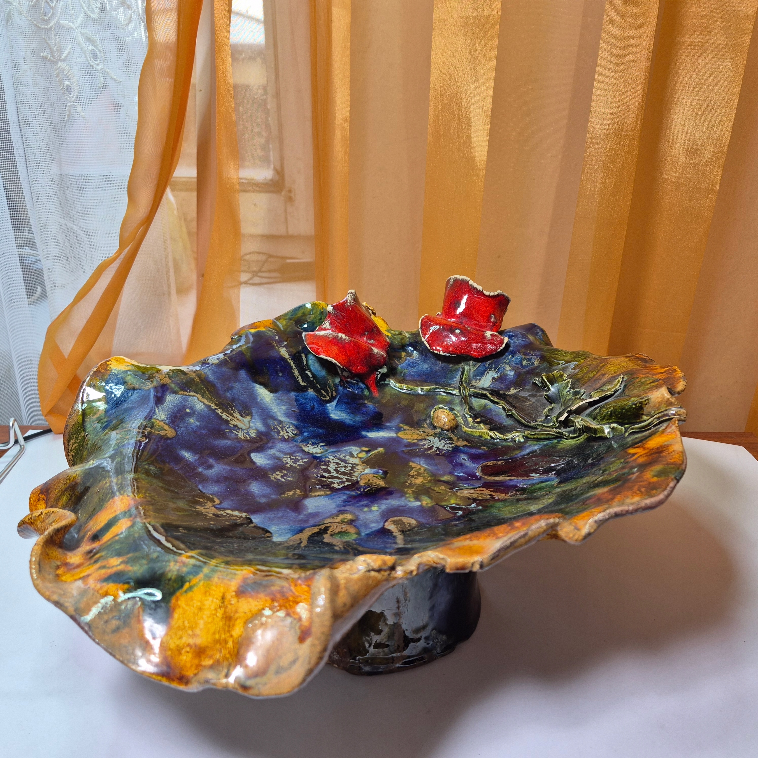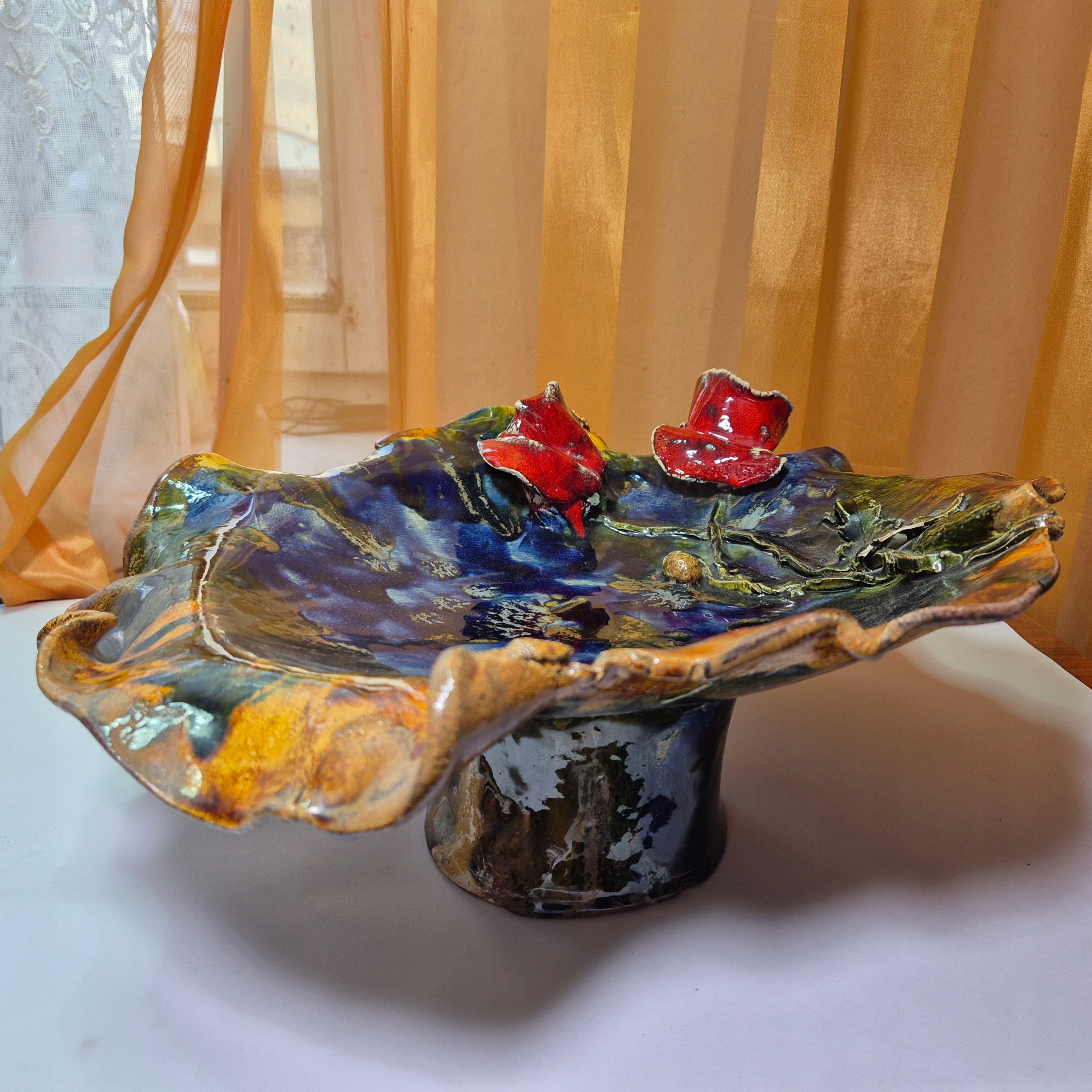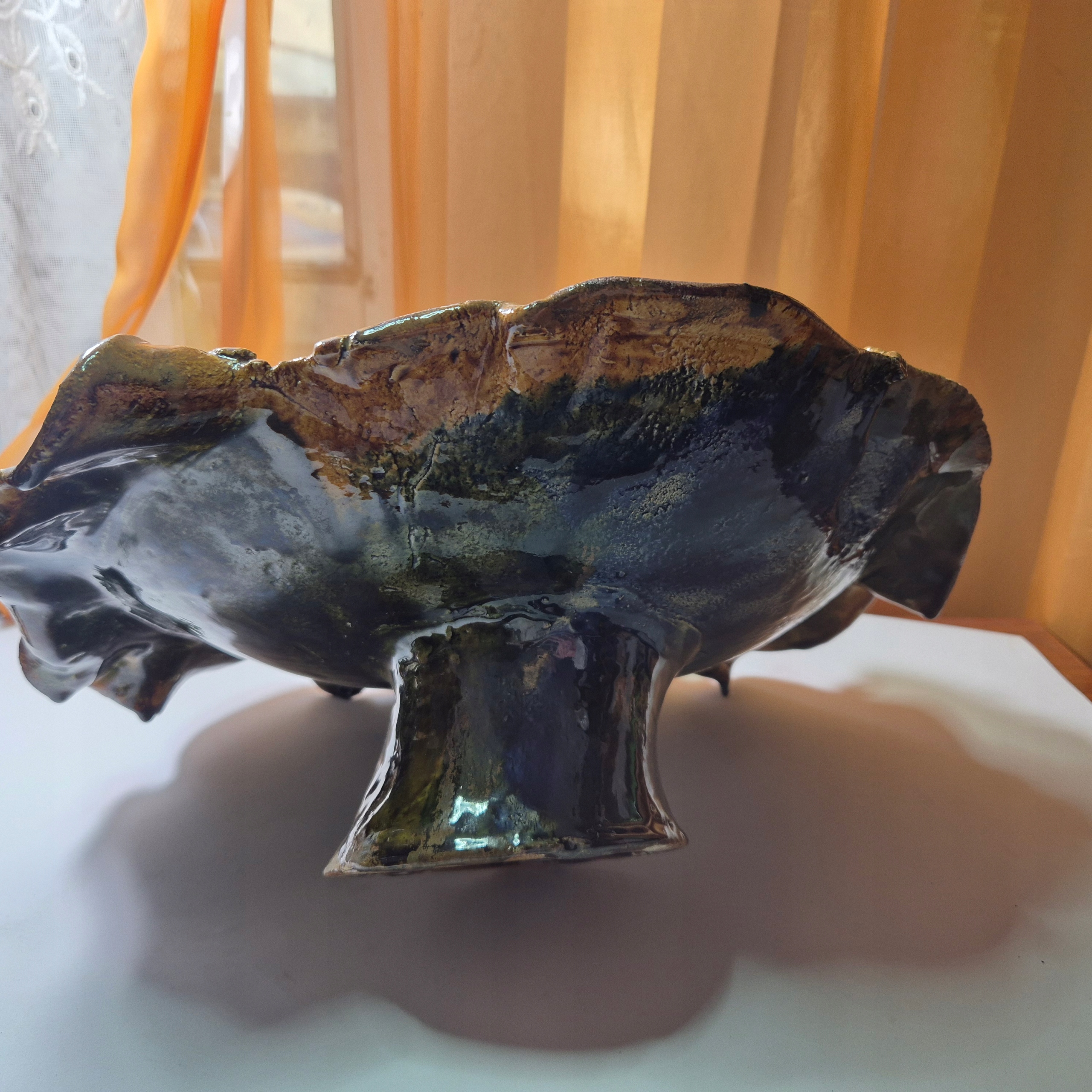 Красива стара велика керамічна патера для фруктів