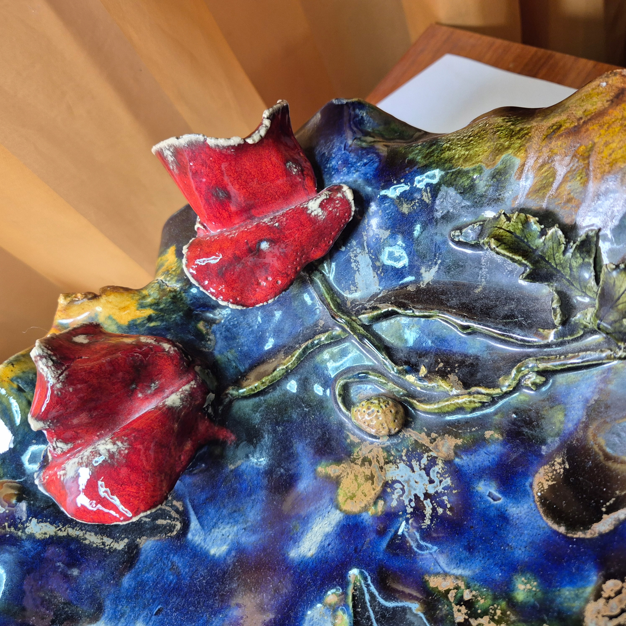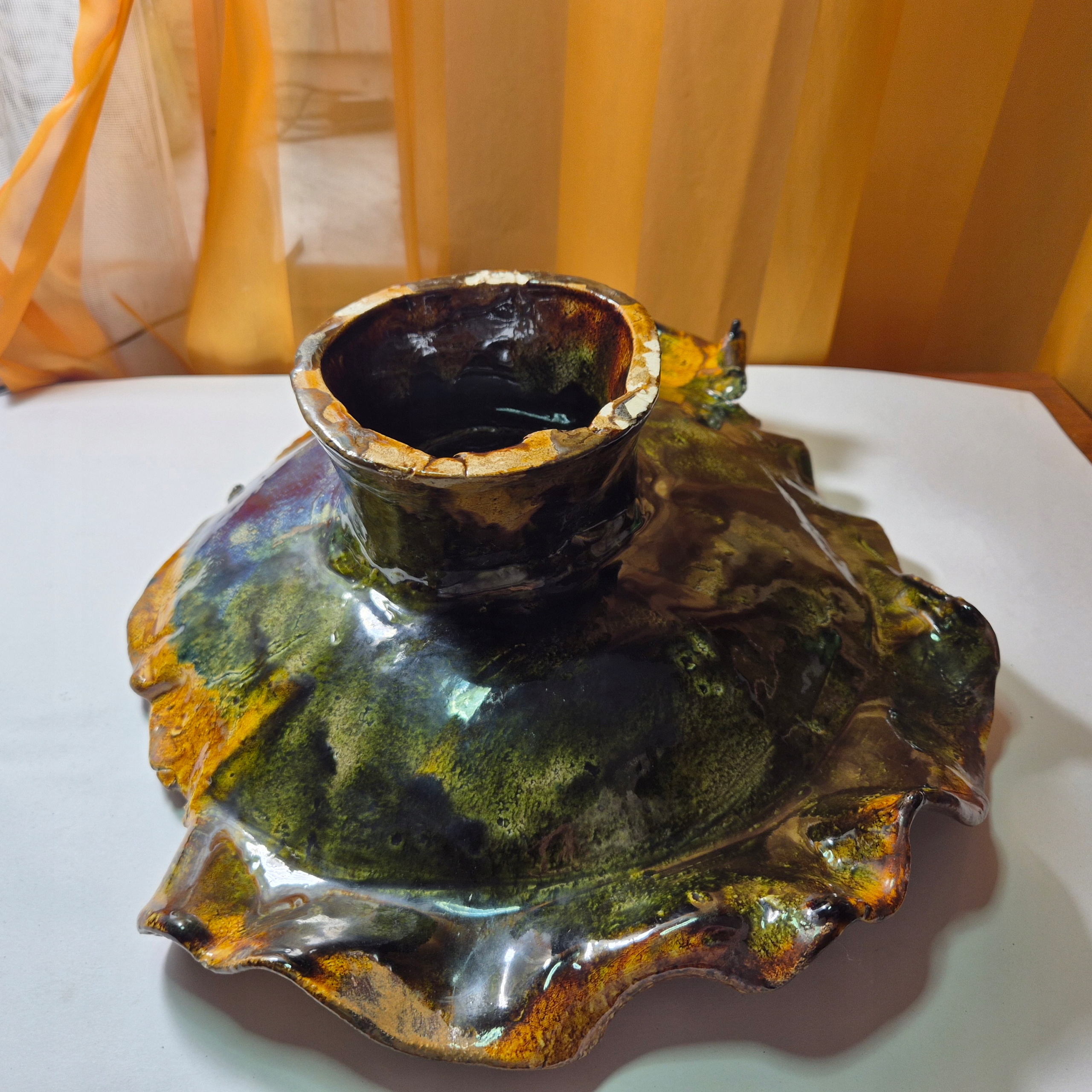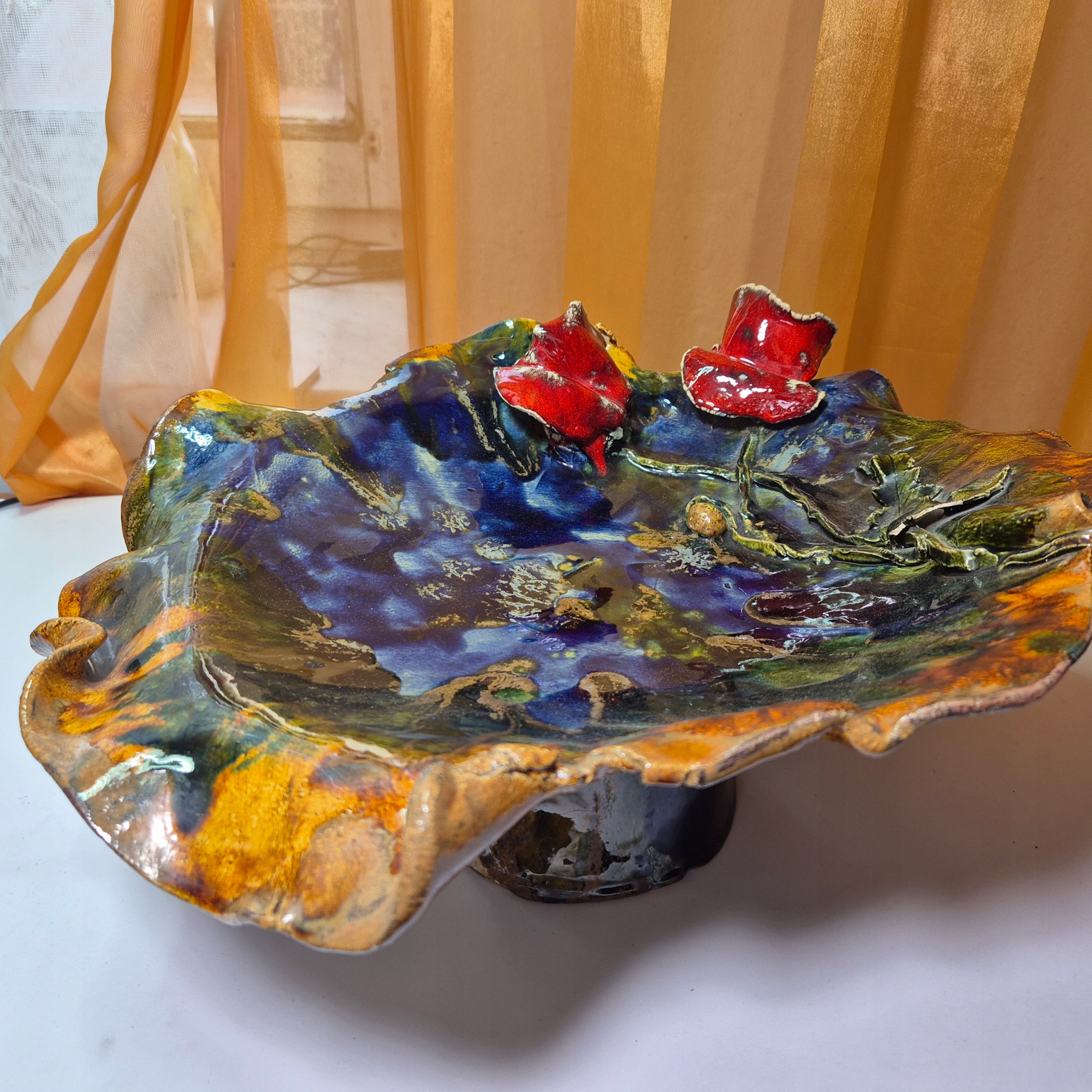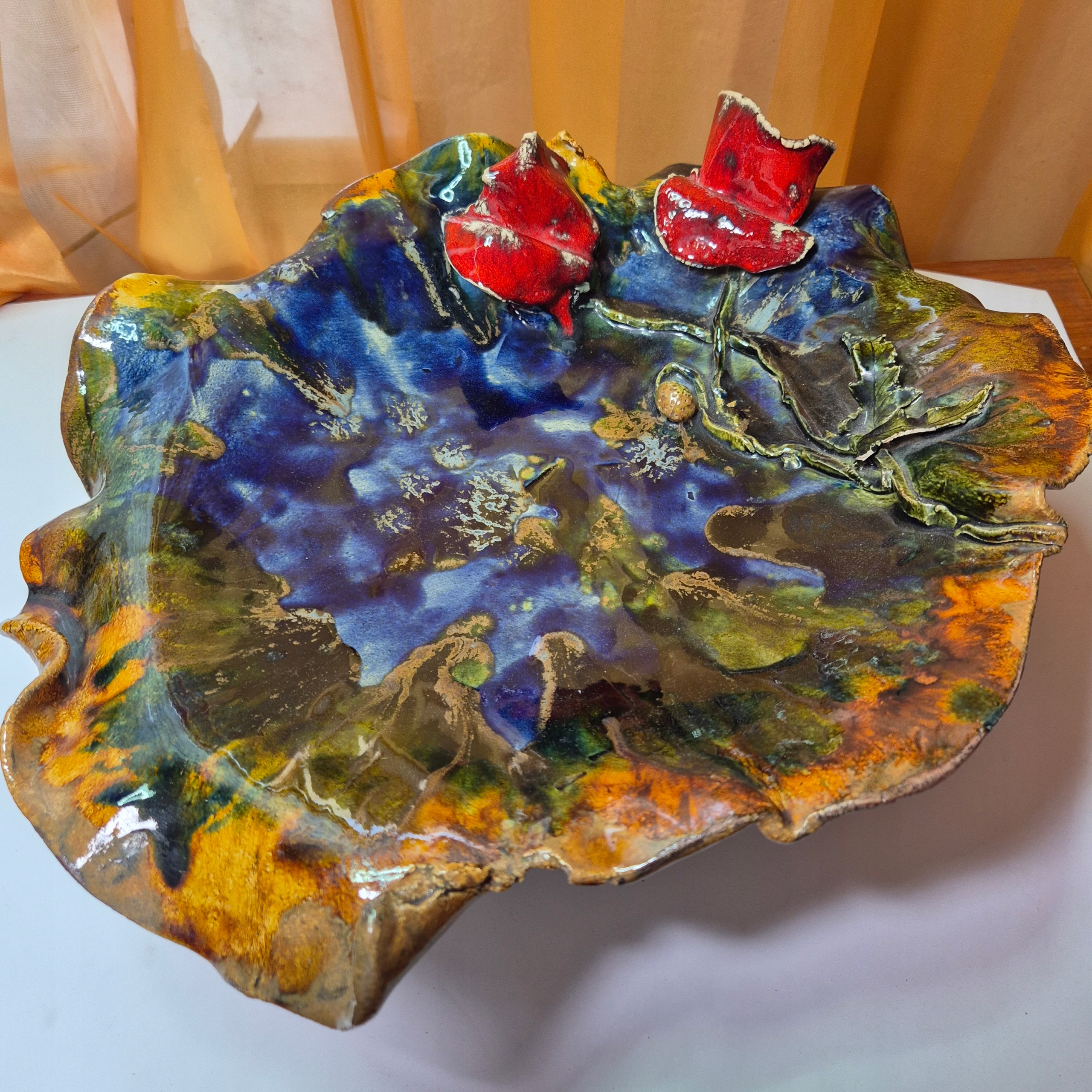 Красива стара велика керамічна патера для фруктів