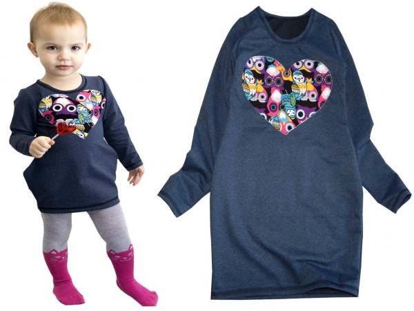Чудову туніку в джинсовому стилі з сердечком із совами