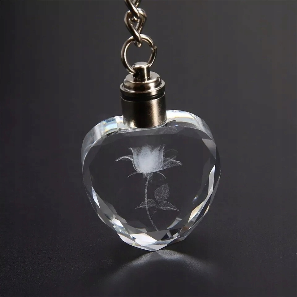 Красива троянда в кристально-червоному світлодіодному брелоку до Дня Святого Валентина