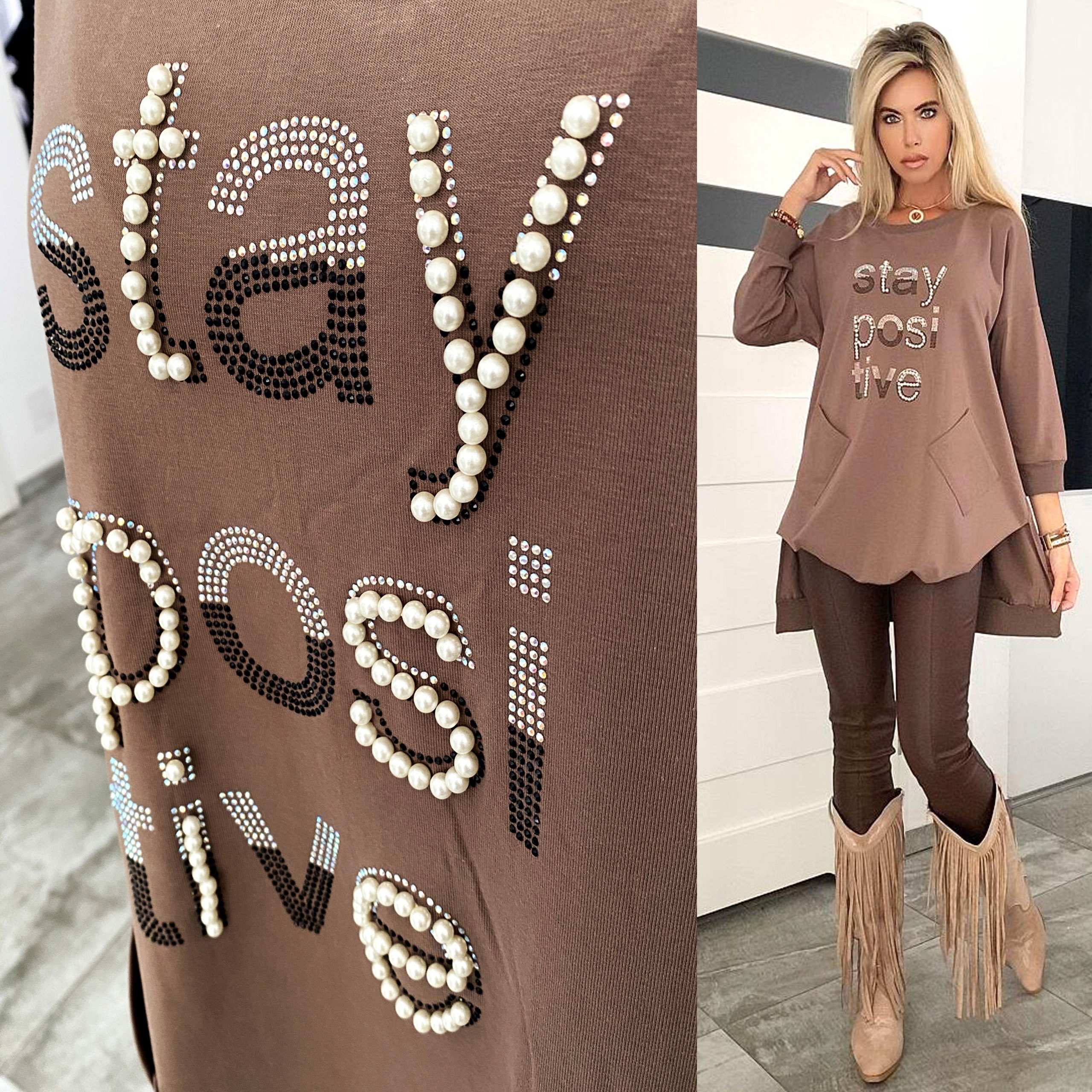 Красива туніка плюс розмір, бавовняні перли та штампи, коричневий Positiv FB100