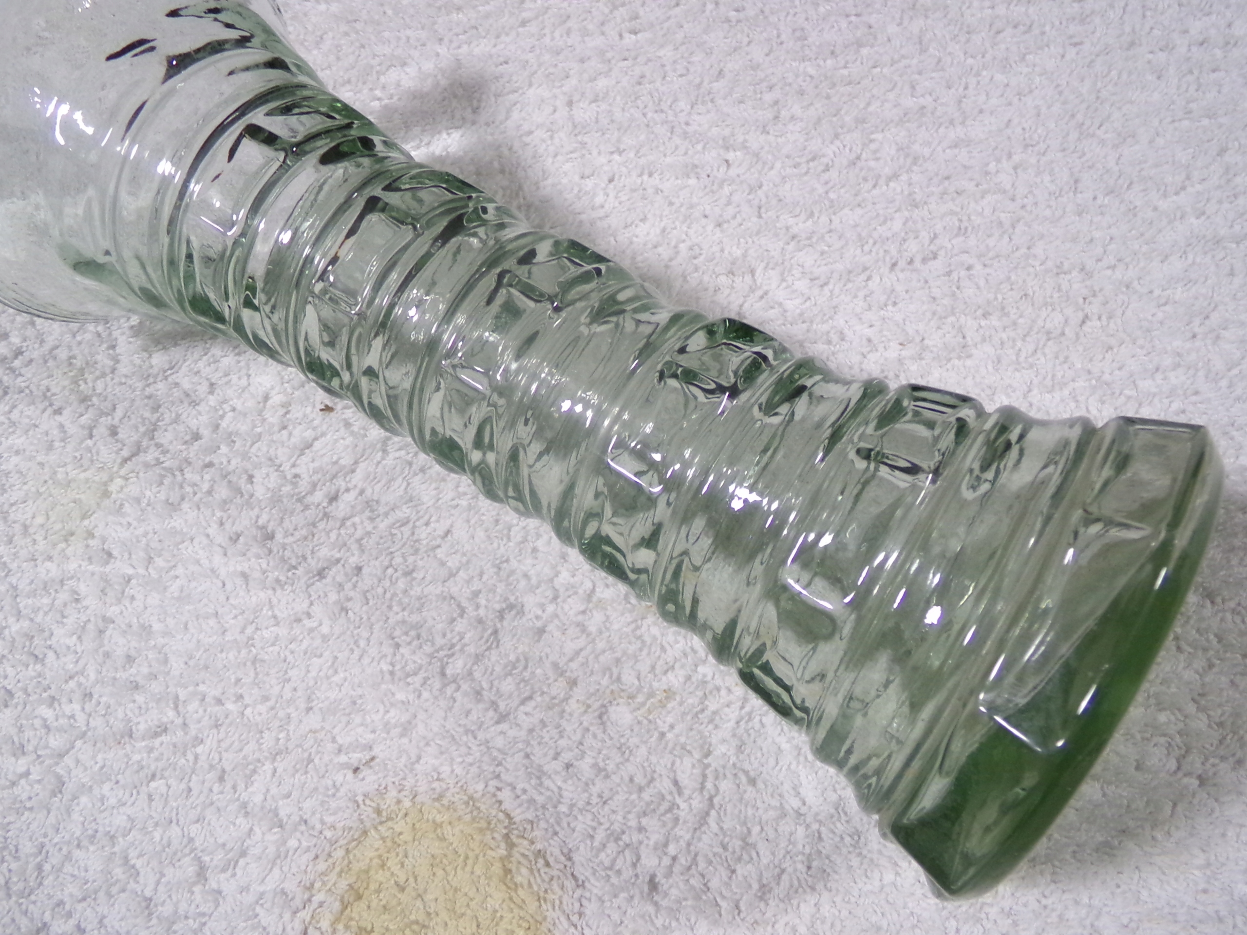 Чудова скляна ваза з висотою 23 см, середнього діаметра 9,5 см, вагою 0,70 кг. Догляд за збереженням