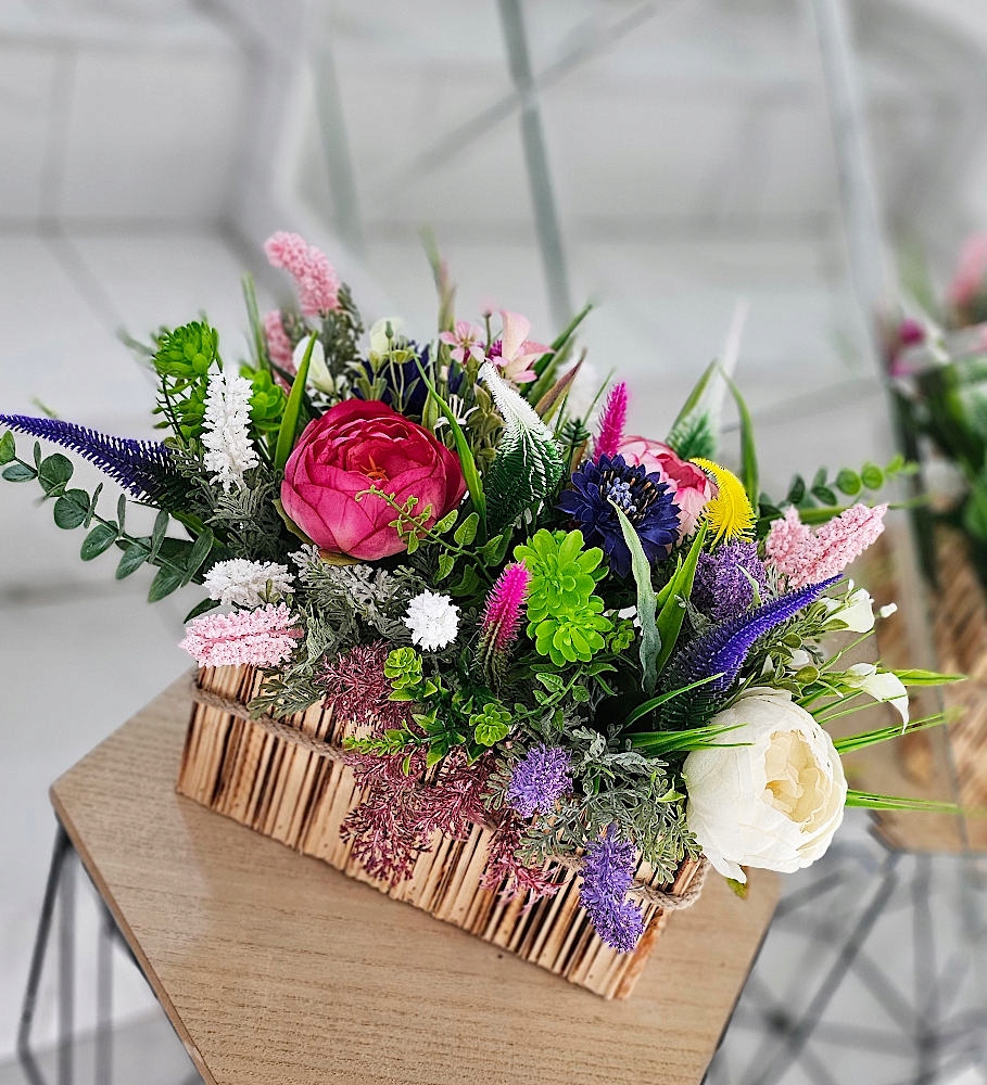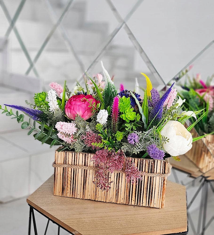 - ✅ Велика квіткова композиція Flowerbox із різнокольоровим вереском.