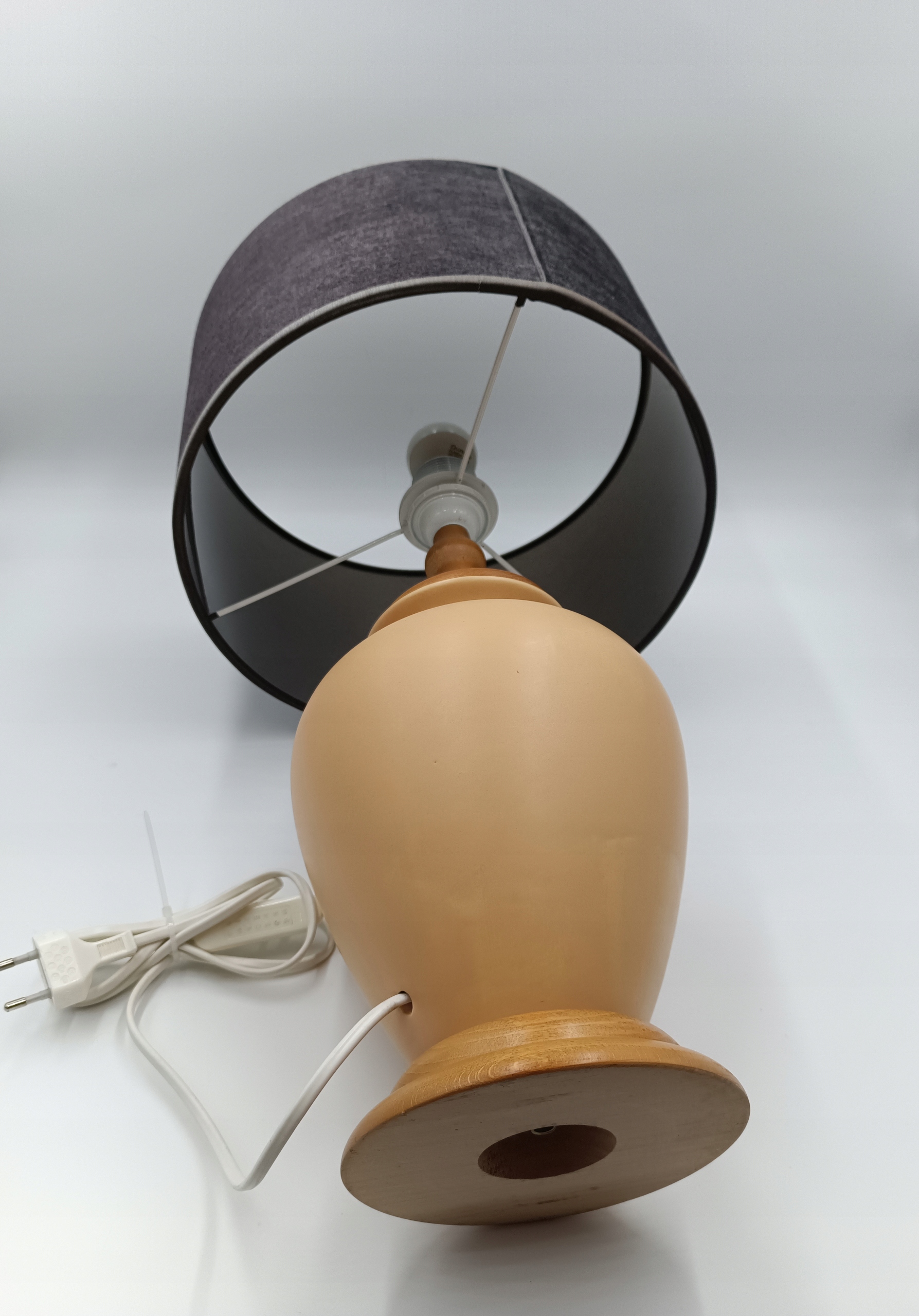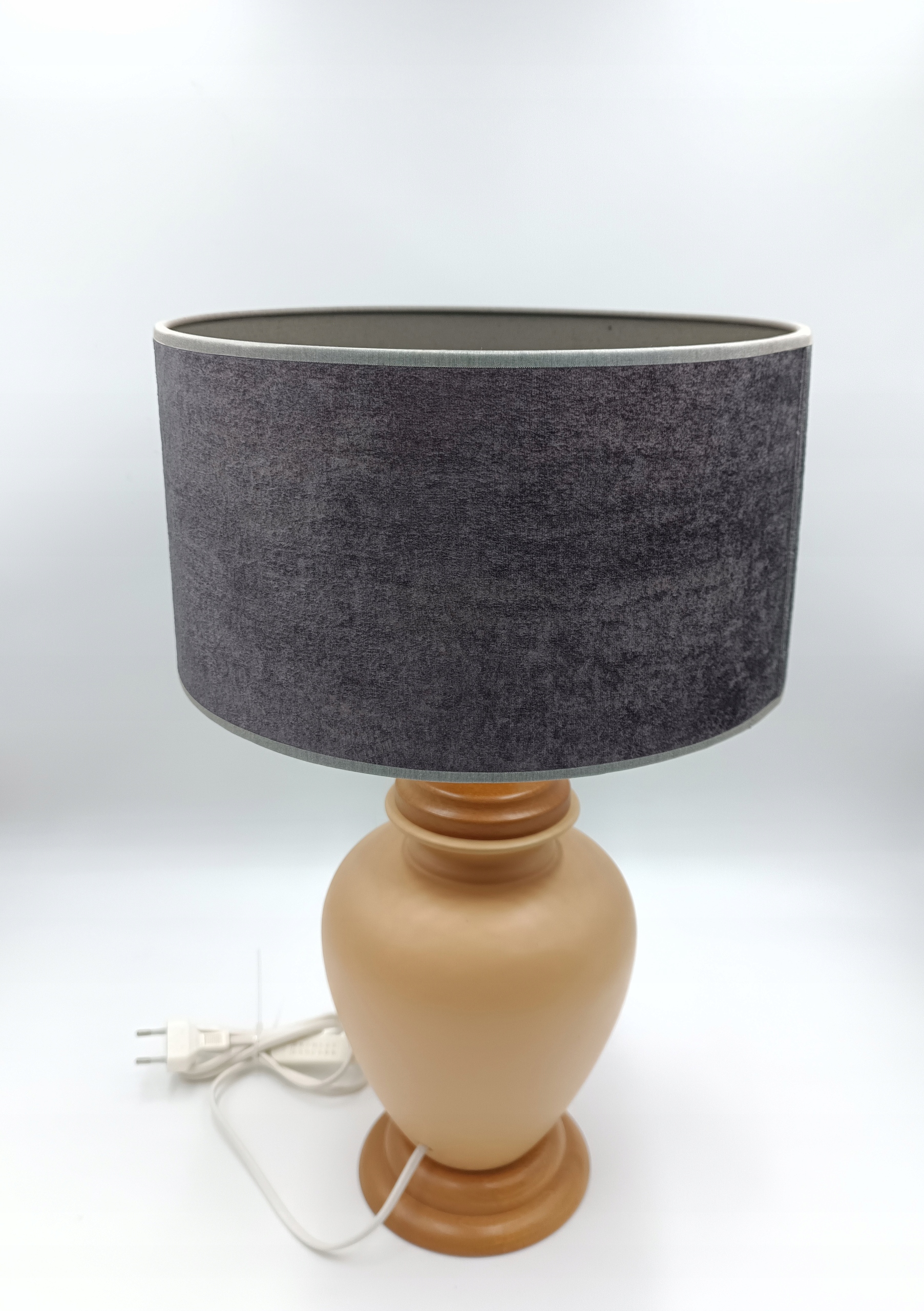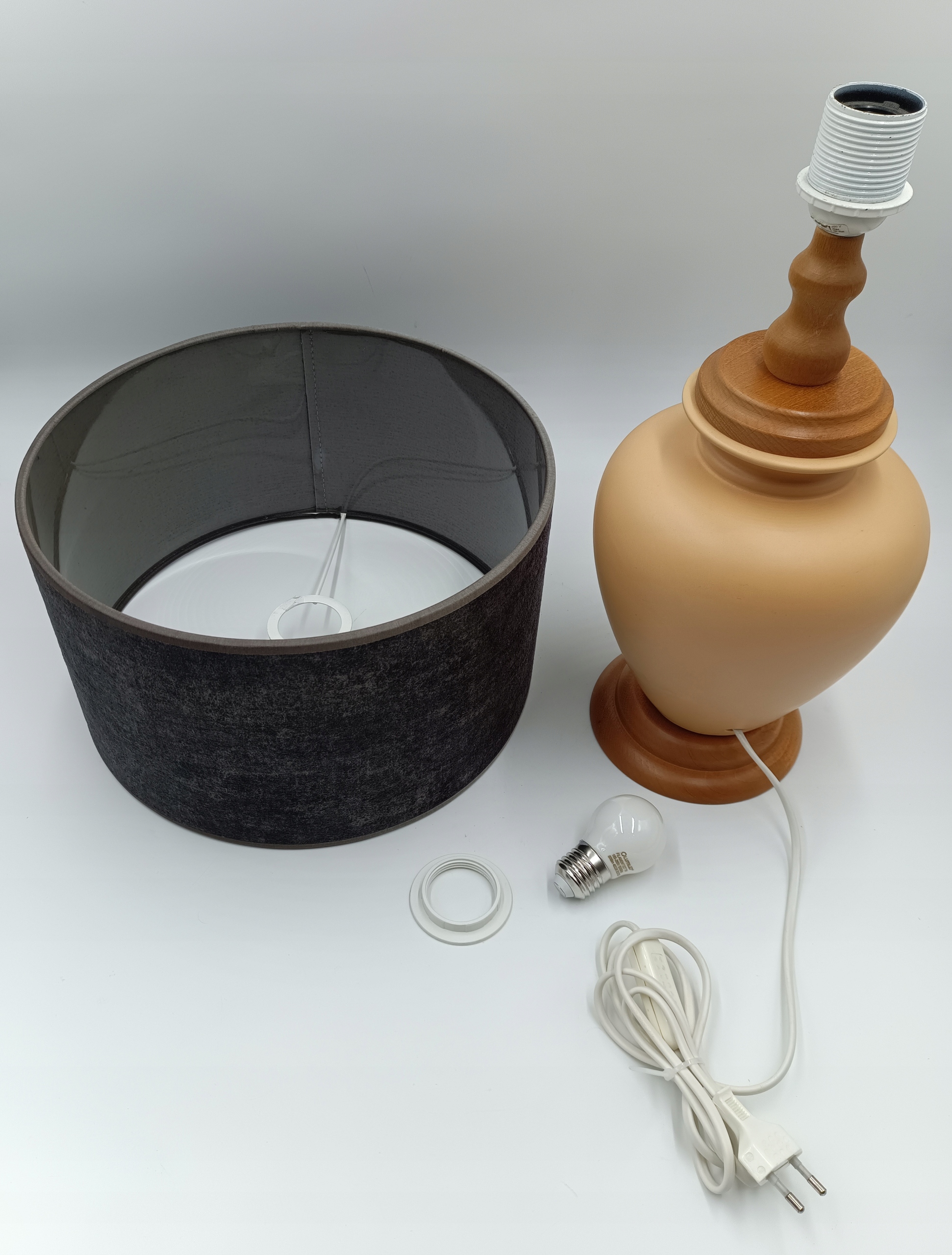 Центр виготовлено з кераміки, верх і основа зроблені з дерева. Абажур покритий оксамитовим матеріалом, красивого кольору антрацит.