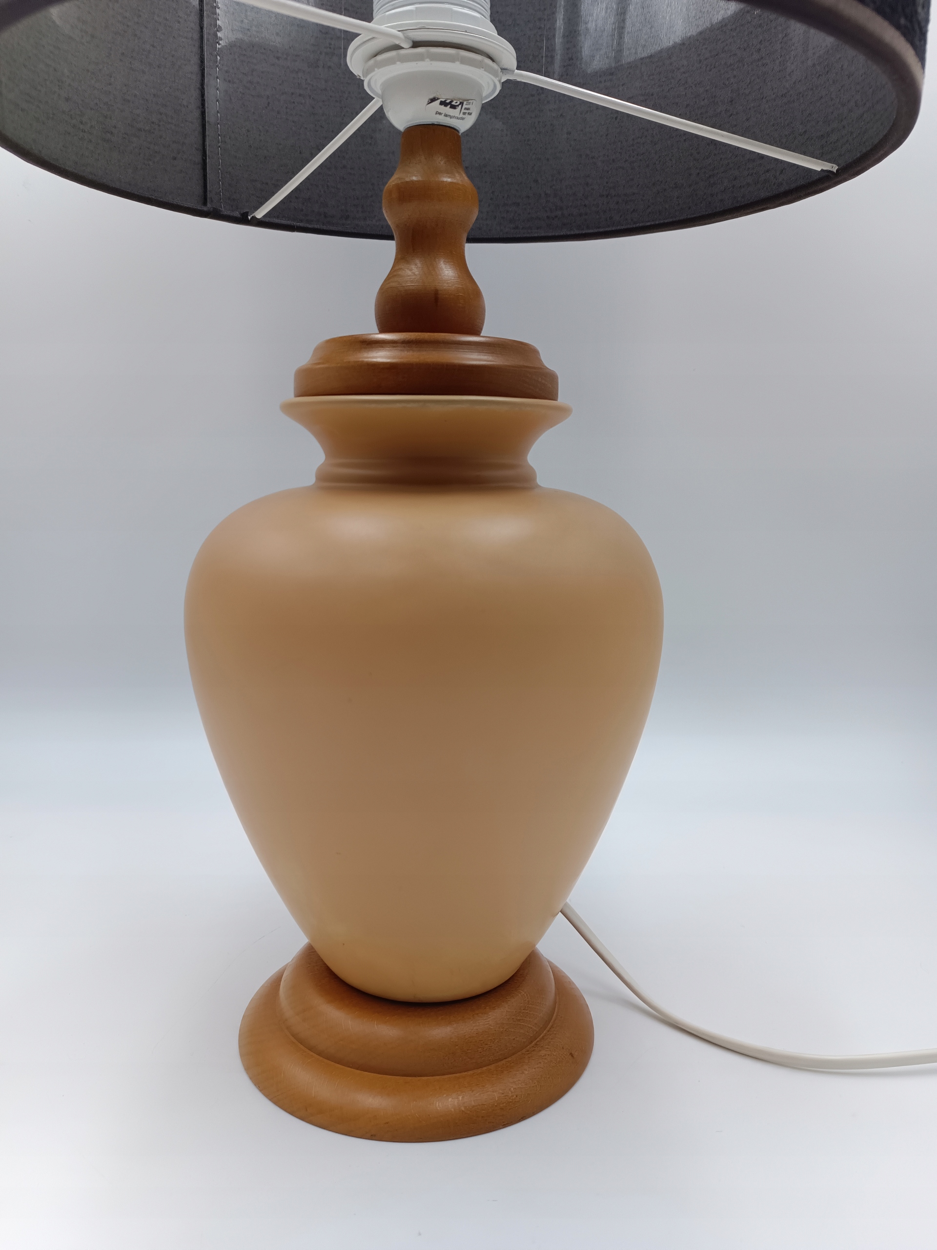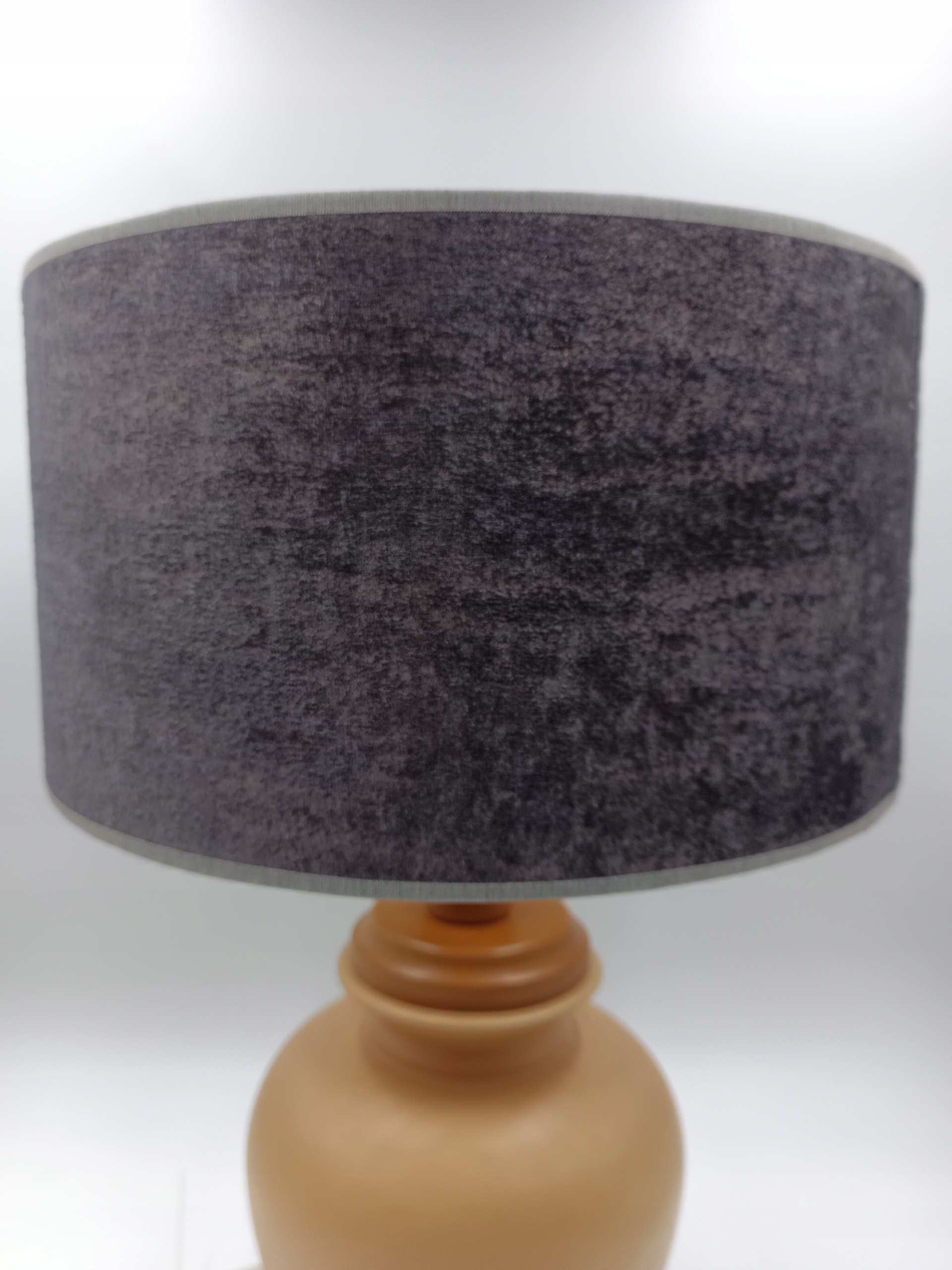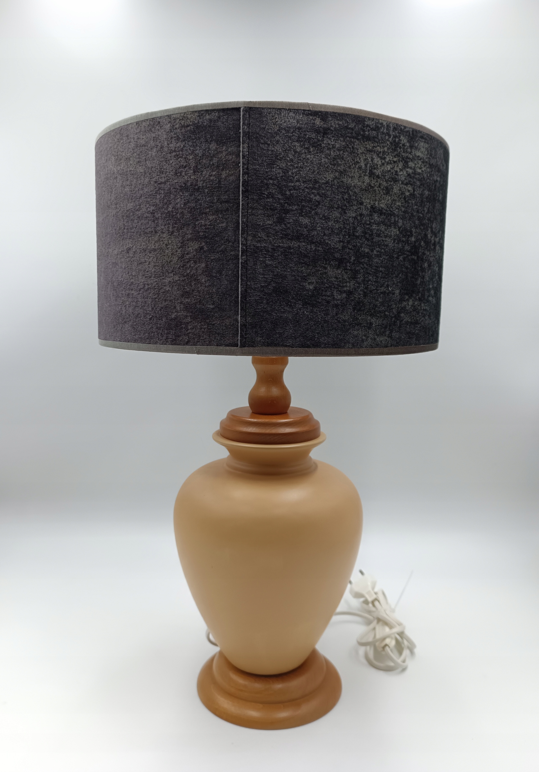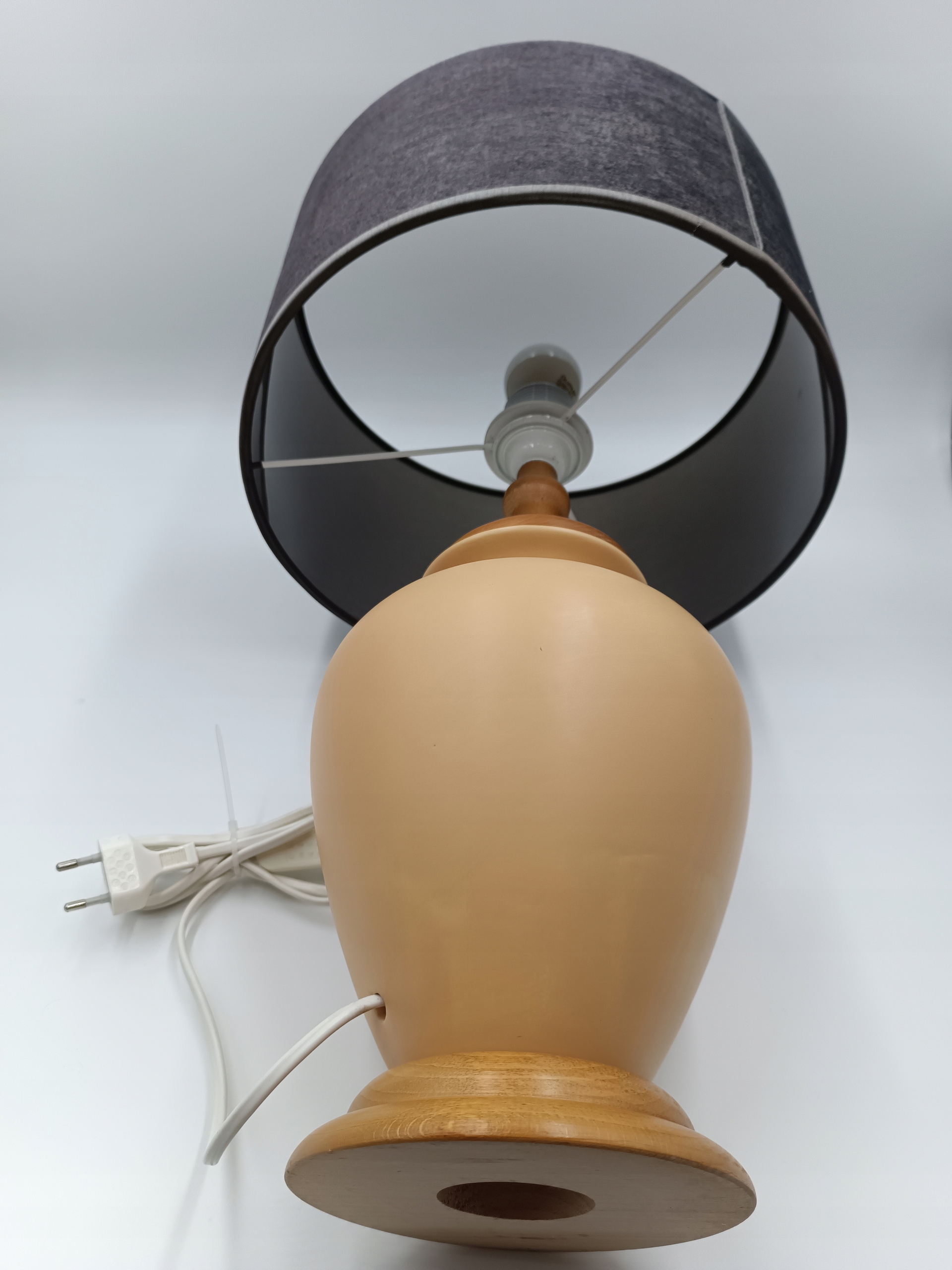 Центр виготовлено з кераміки, верх і основа зроблені з дерева. Абажур покритий оксамитовим матеріалом, красивого кольору антрацит.