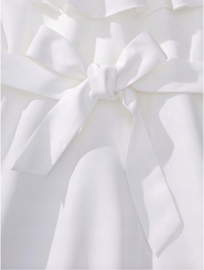 Красиві багатошарові волани на декольте, характерні для сукні «Лебідь», надають всьому неповторного шарму, змушуючи кожну дівчину почуватися справжньою принцесою. Атласний пояс, зав'язаний елегантним бантом на спині, підкреслює талію, додаючи вбранню неповторного шарму та елегантності. Застібка-блискавка ззаду полегшує надягання сукні, забезпечуючи зручність використання та функціональність, що неодмінно оцінить молоде покоління.