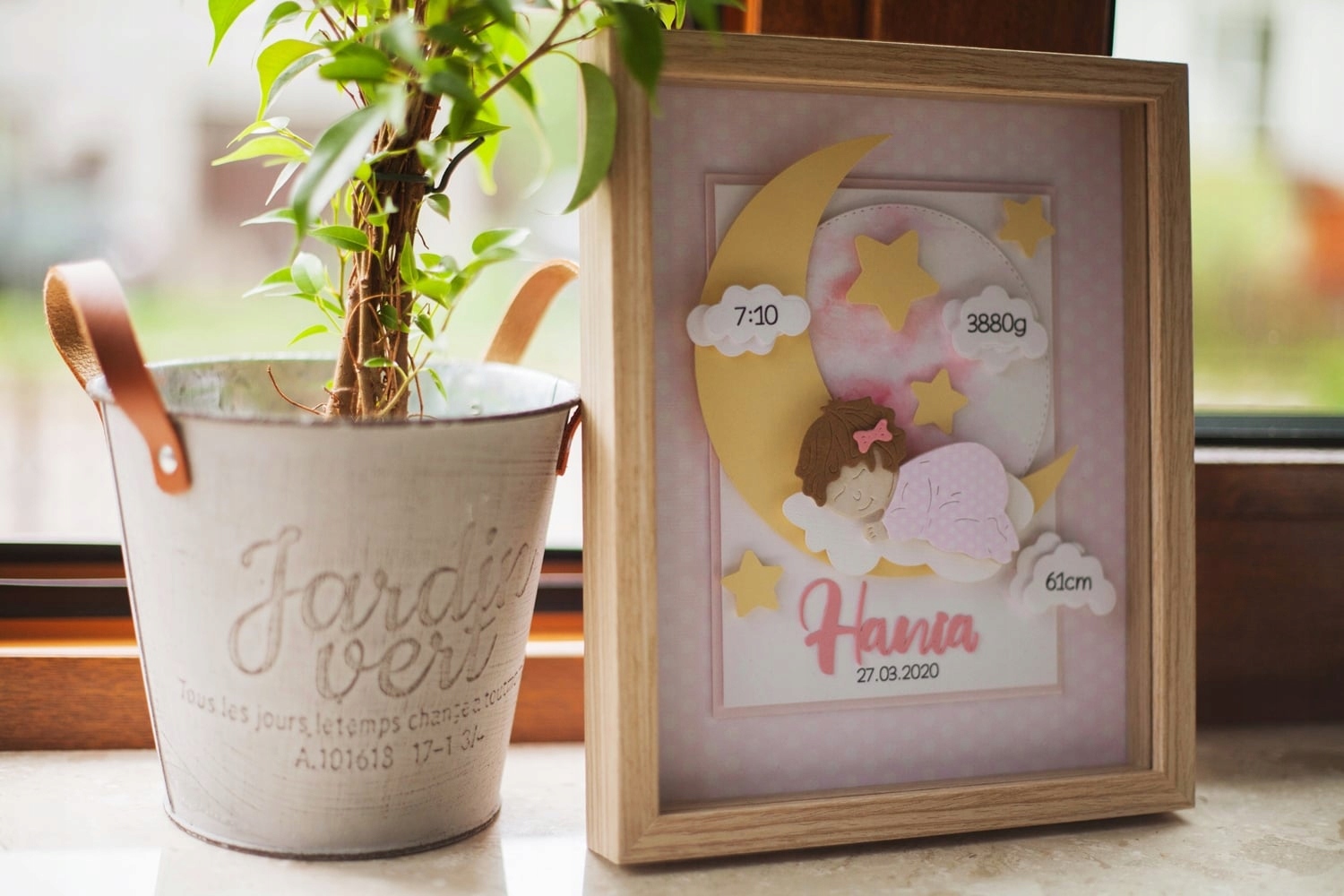 Красиве 3D свідоцтво про народження в рамці для дитини в подарунок
