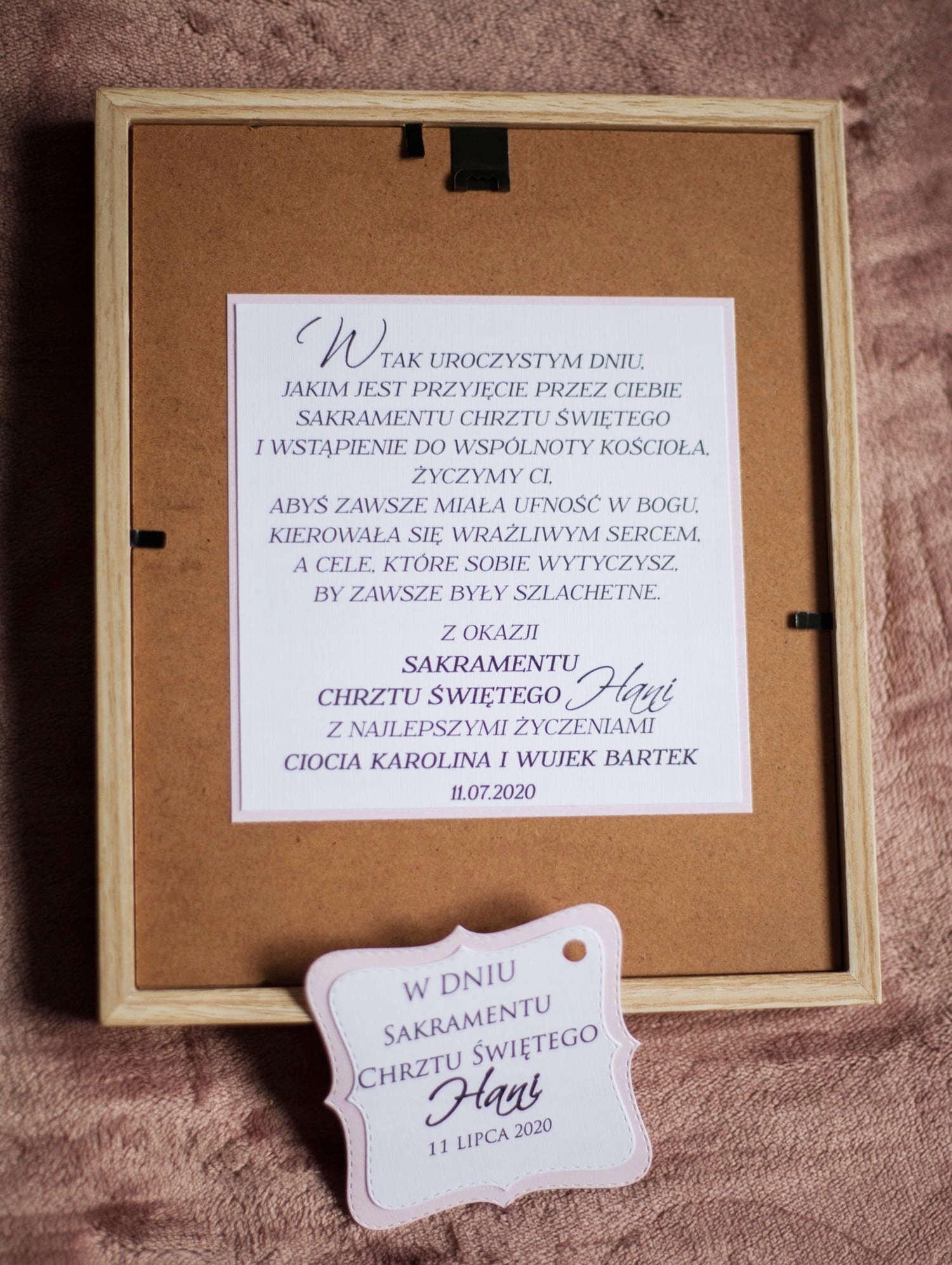 Кожна платівка виготовляється вручну з високоякісних матеріалів за індивідуальним замовленням клієнта, що робить її чудовим подарунком, напр народження дитини або святе Хрещення