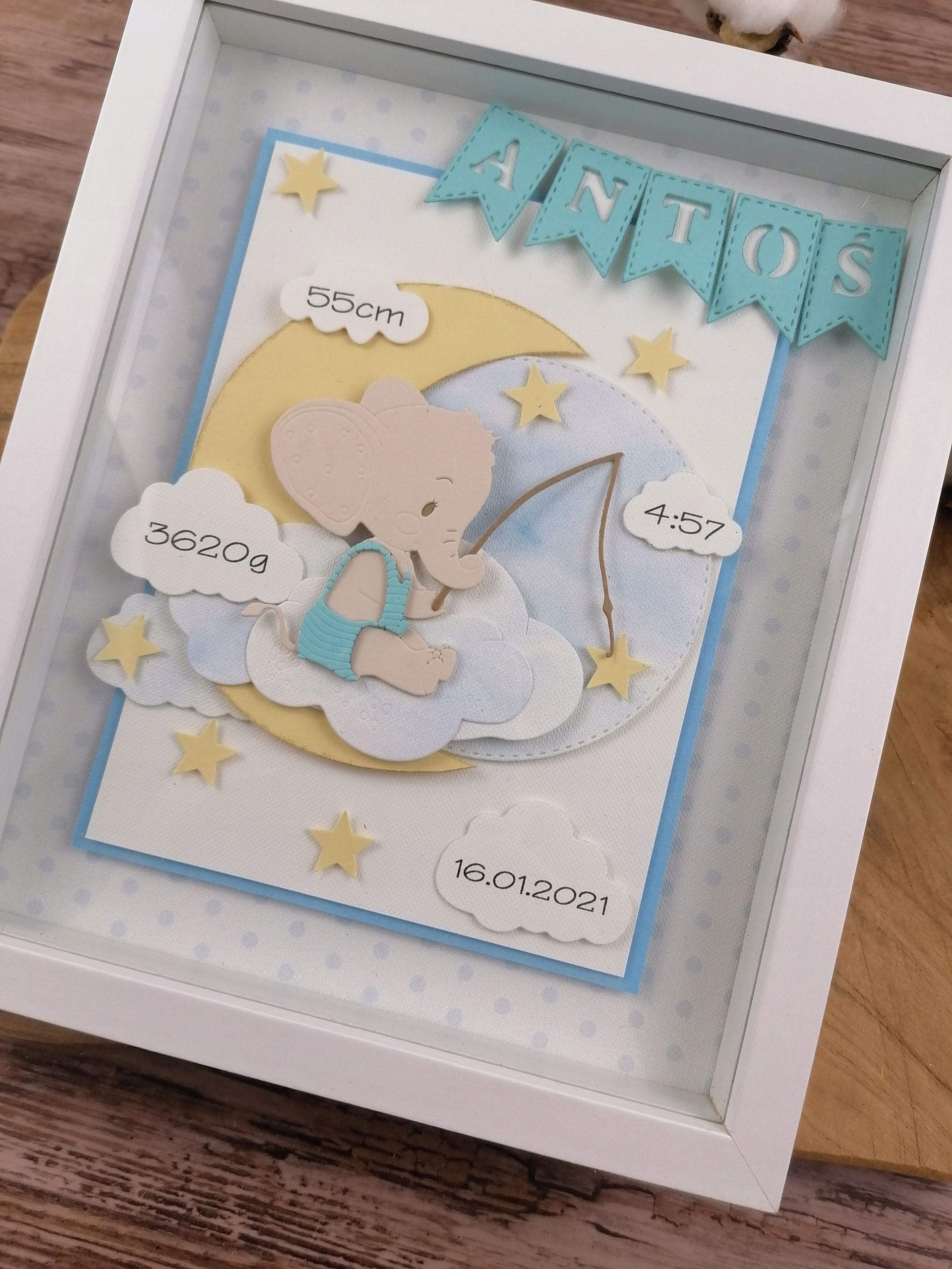 Красиві 3D свідоцтва про народження "СЛОН" в рамці зі склом.