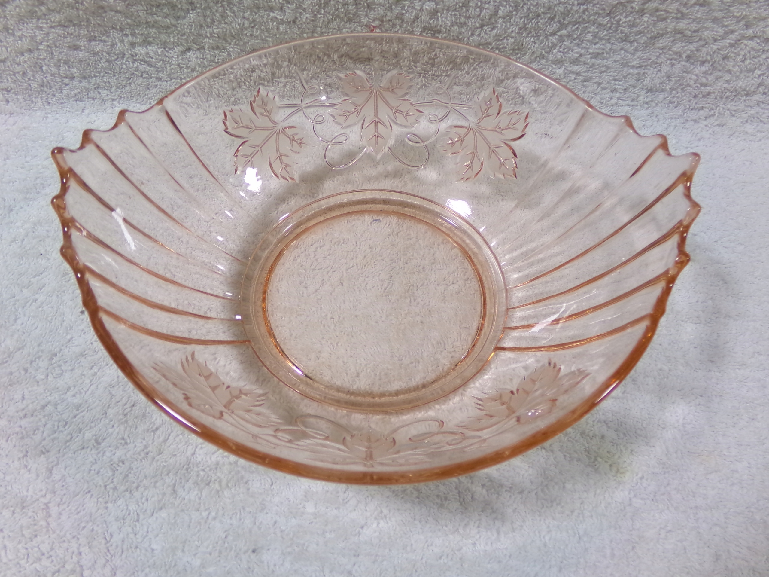 Прекрасна миска, виготовлена з рожевого скла з діаметром 21,5 см, висотою 9 см, вагою 0,60 кг. Дуже хороший стан збережений, без пошкоджень.
