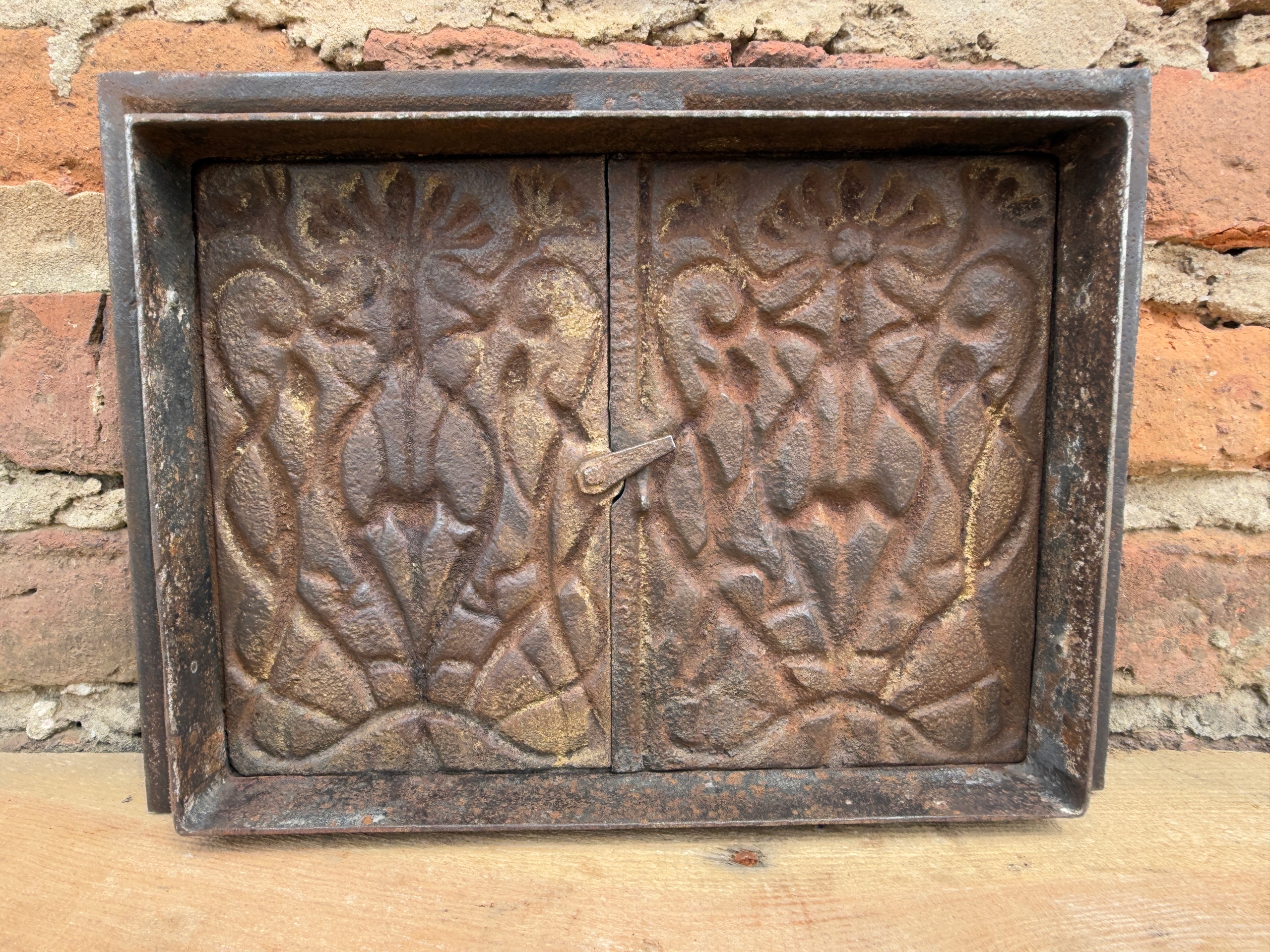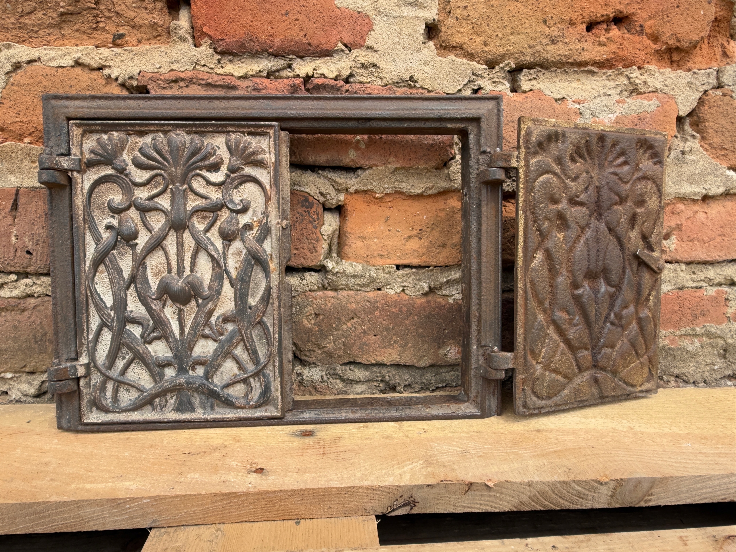 Красиві, старі чавунні двері для печі - сецесія - квіти - кучерявий 35 х 26